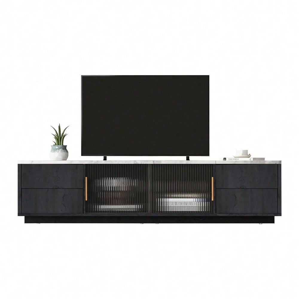 160cm Deluxe TV Stand für 70" TV - Stilvolles Grau, marmorierte Tischplatte, Kabelmanagement, Schubladen mit Push-to-Open-Funktion