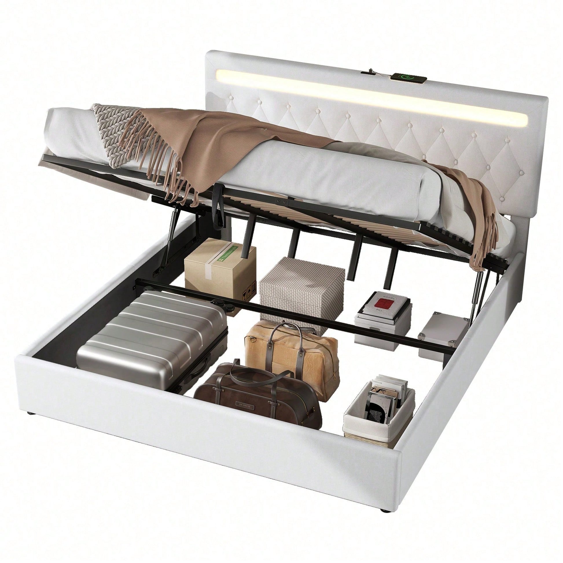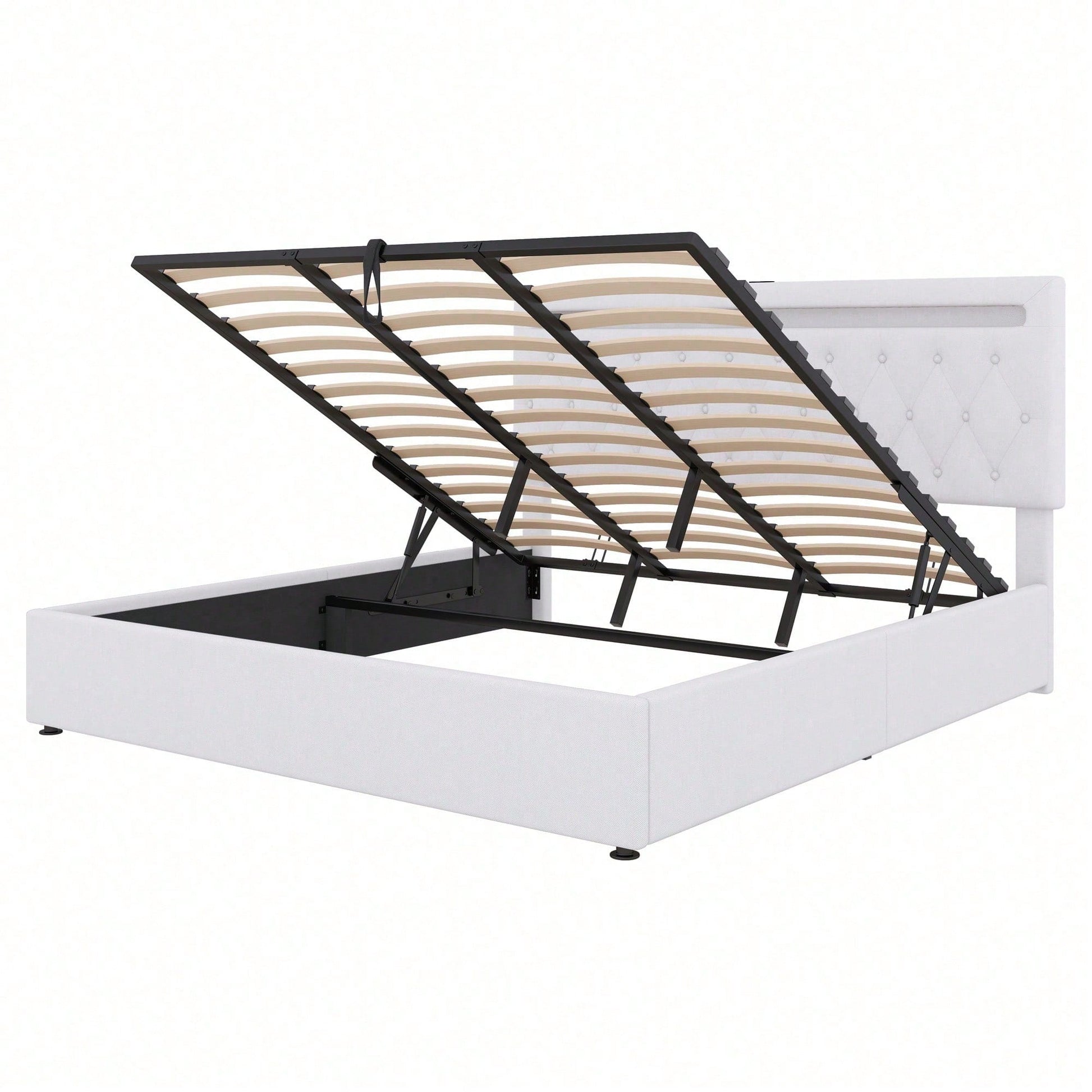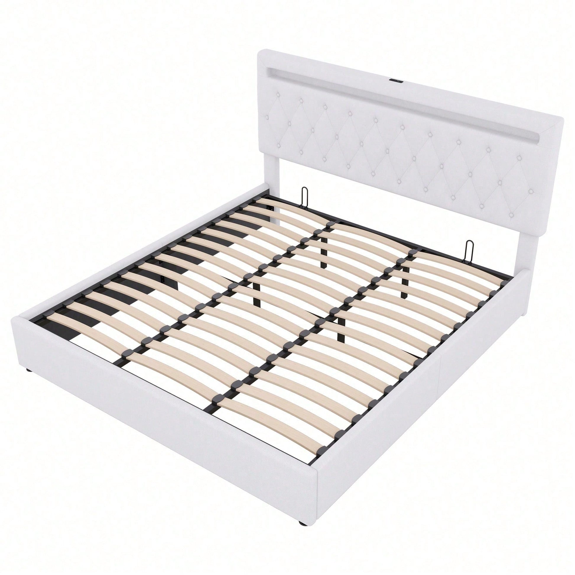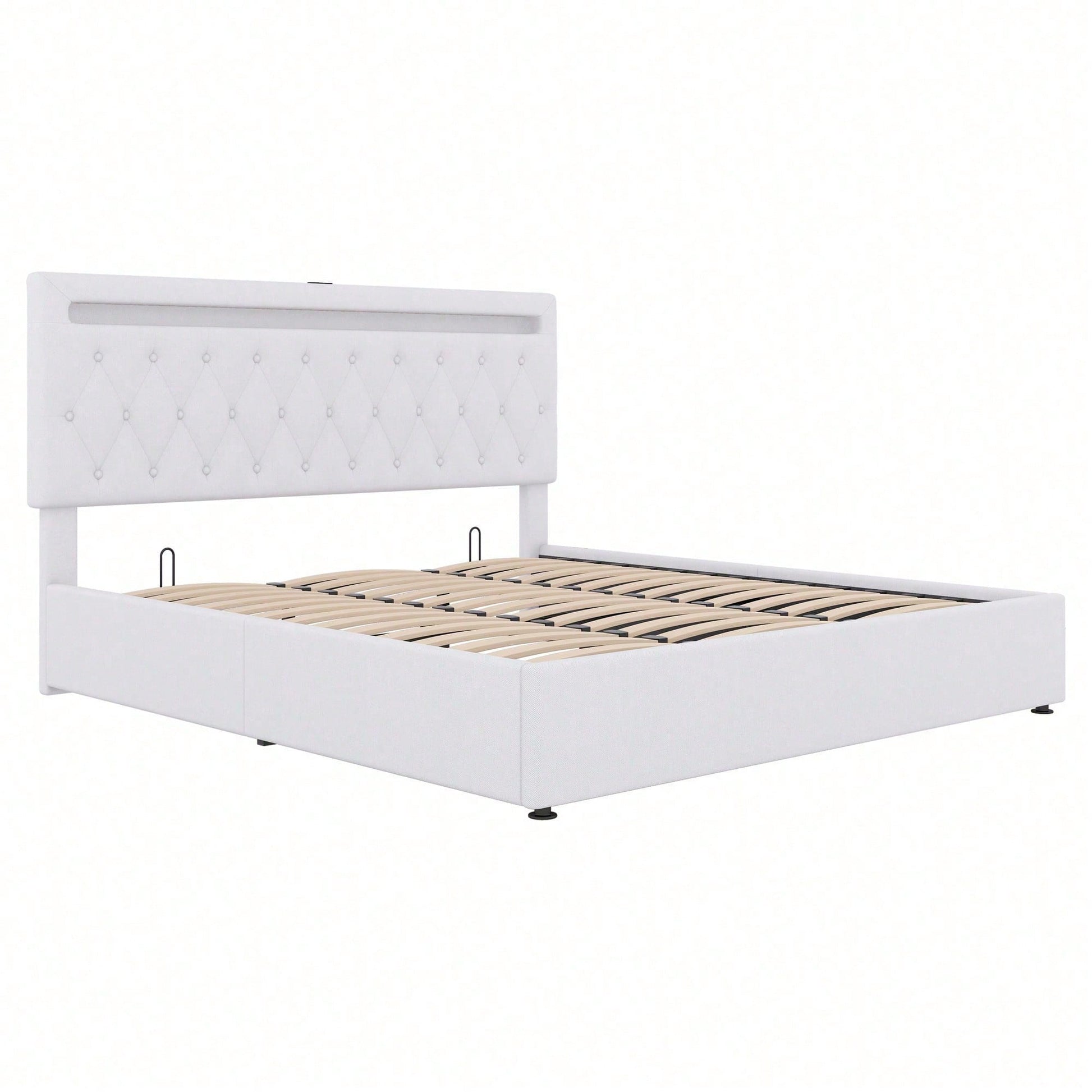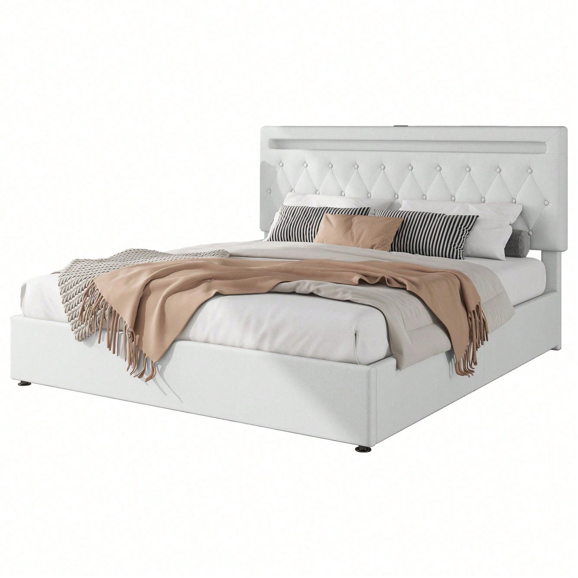 180*200cm Flachbett, gepolstert, hydraulisches Bett mit Hebemechanismus, farbwechselndes Umgebungslicht, Fernbedienung, USB-Anschluss, grau