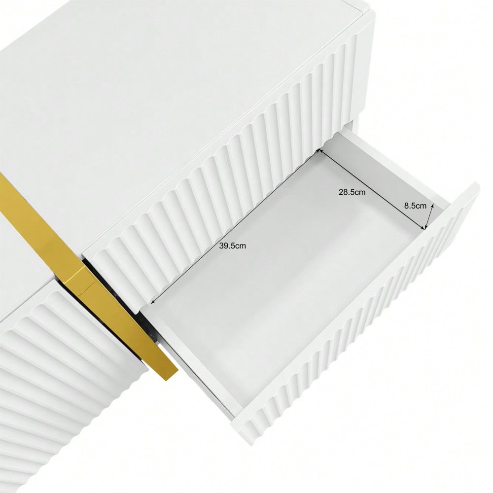 190 cm TV-Schrank, 3 Türen, 2 Schubladen, Weiß mit Gold und Holzmaserung