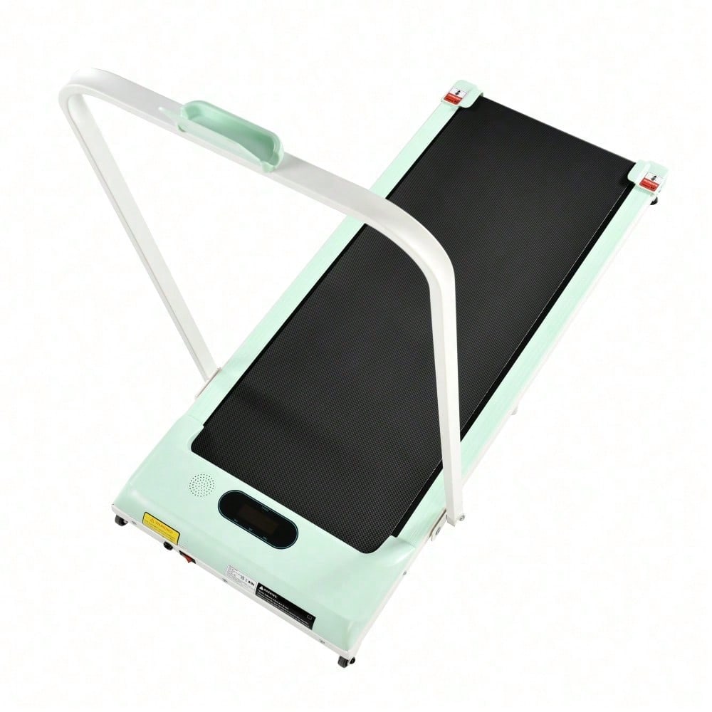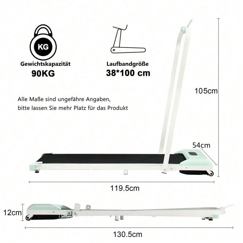 2 in 1 Funktionales Laufband: Um sicherzustellen, dass Sie täglich trainieren, können Sie sich entscheiden, dieses Laufband zu Hause zu nutzen, und sein leiser Motor garantiert perfekte Leistung für Laufen, Joggen oder Gehen. Das Laufband kann auch flach unter Ihrem Stehpult liegen und bietet Ihnen das Beste in Sachen Bürofitness während Ihrer Arbeit. Dieses Laufband wiegt nur 22 kg und ist damit wesentlich tragbarer als die meisten Bürotrainingsgeräte. Hochwertige Strukturzusammensetzung: Das Laufband verwendet die neueste Laufbandtechnologie in Verbindung mit einem stilvollen und einfachen Design, um das Lauferlebnis zu Hause zu optimieren. Der Kern stammt aus dem neuesten umweltfreundlichen Antriebsmotor, der durch Kompaktheit, Geräuschlosigkeit und energiesparende Eigenschaften beeindruckt. Seine Langlebigkeit wurde gründlich getestet, um die größtmögliche Haltbarkeit während seines gesamten Lebenszyklus sicherzustellen. Einfache Aufbewahrung - Klappbares Design: Mit der Fähigkeit, auf nur 12 cm Höhe zusammengeklappt zu werden, lässt sich das Laufband leicht verstauen, was sich hervorragend für kleine Räume eignet. Dank der einfachen Klapp-Technologie betragen die zusammengeklappten Abmessungen nur 130,5 * 58 * 12 cm, wobei das Gerät auf eine Höhe von 102 cm aufgerichtet wird. Leistungsstarker Motor und LED-Display: Mechanisch ist der 1,0-PS-starke und geräuscharme Motor speziell für den Heimgebrauch konzipiert, sodass Sie sich keine Sorgen machen müssen, Ihre Familie und Nachbarn zu stören. Das LED-Display zeigt Zeit, Geschwindigkeit, Entfernung und Kalorien klar an, um Ihren Fortschritt in Echtzeit zu überwachen. Mit Geschwindigkeiten von bis zu 6 km/h ist die Maschine für das tägliche Fitnesstraining konzipiert. Intelligente Steuerung und Bluetooth: Das Laufband verfügt über einen Bluetooth-Lautsprecher, den Sie mit Ihrem Telefon verbinden können, um Musik oder Podcasts während des Laufens oder Gehens auf dem Laufband abzuspielen. Indem Sie Ihr Telefon auf den Ständer legen und während des Trainings auf diesem Laufband mit Ihren Freunden sprechen oder Ihre Lieblingssendung ansehen, können Sie die Langeweile beim Training beseitigen. MS304438AAB/MS304438AAG/MS304438AAP Produktabmessungen 119.5*54*105cm Gefaltete Größe 130.5*58*12cm Motorleistung 1.0ps Geschwindigkeitsbereich 1-6 km/h Gewichtskapazität 90KG Display-Funktion Zeit/Entfernung/Kalorien/Geschwindigkeit Laufbandgröße 38*100cm Bluetooth Ja Inhalt des Pakets Telefonhalterung, Fernbedienung, abnehmbarer Handlauf