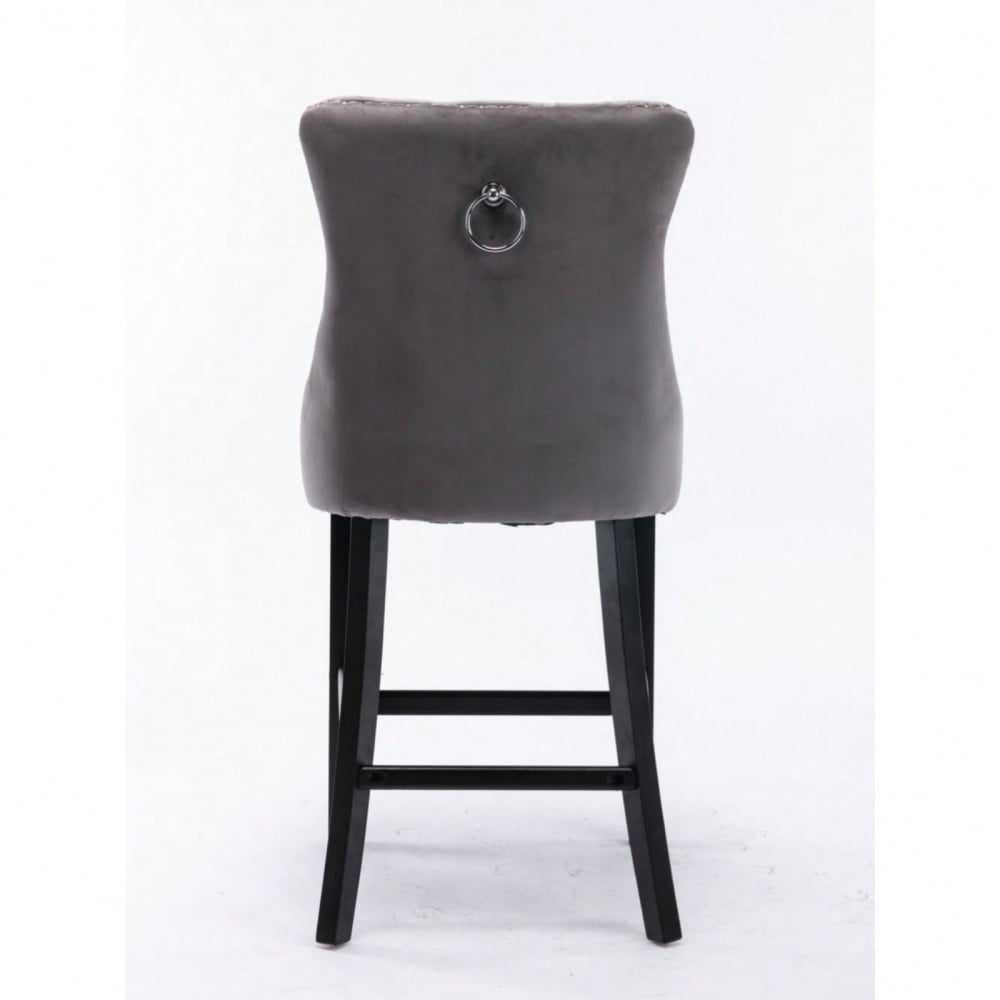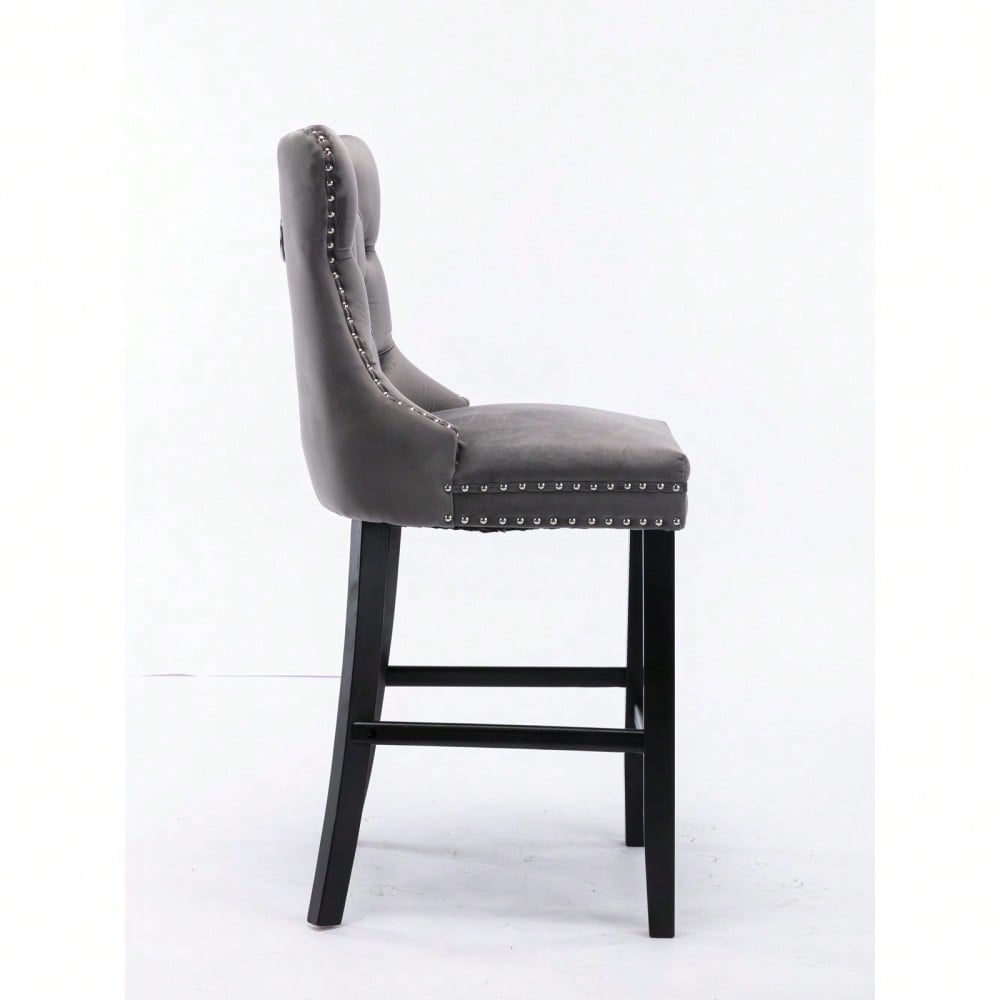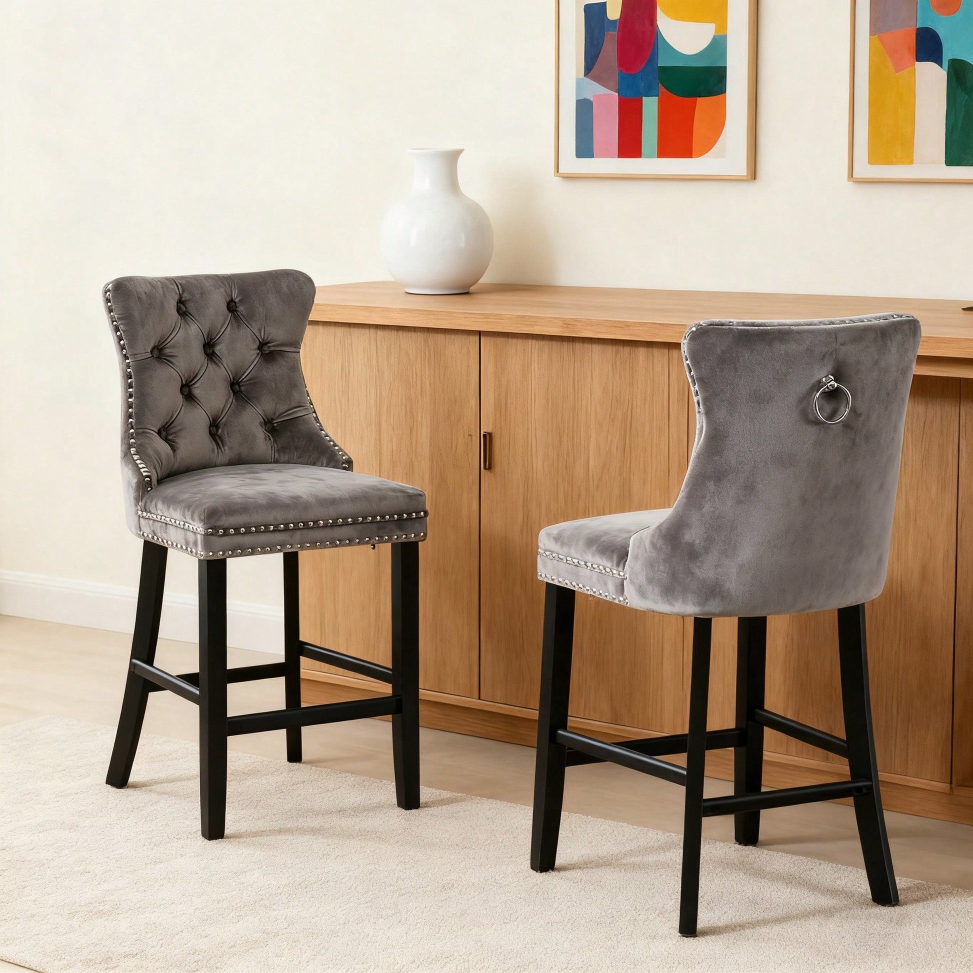2er-Set Samt Barhocker mit Knopfsteppung & Holzbeinen | Chrom-Nagelkopf-Akzente & Polsterung | Höhenverstellbare Barhocker für Küche, Wohnzimmer in Grau | DE2002GY