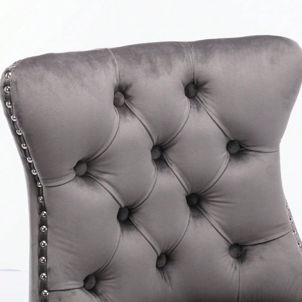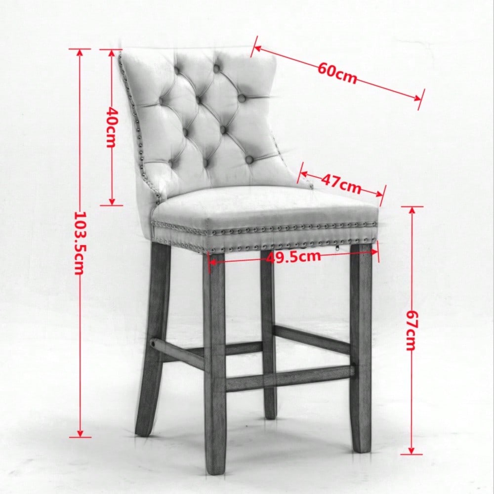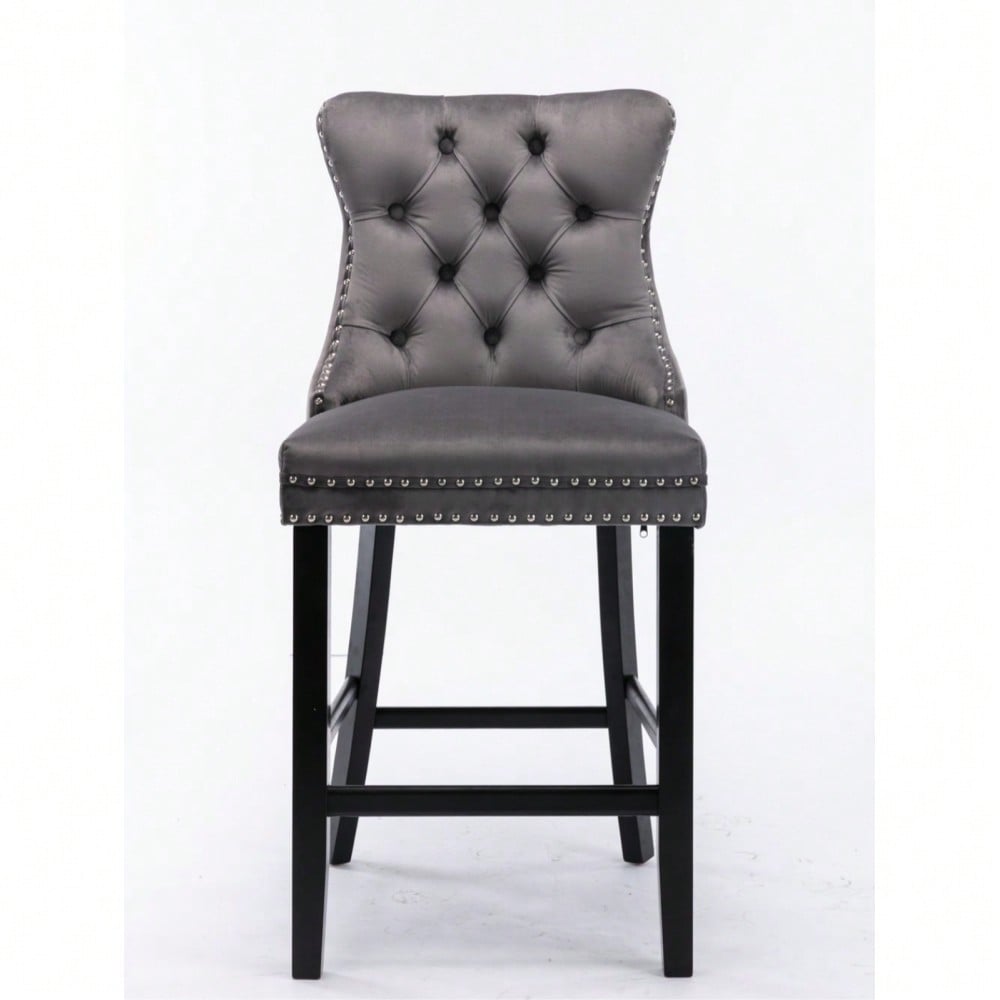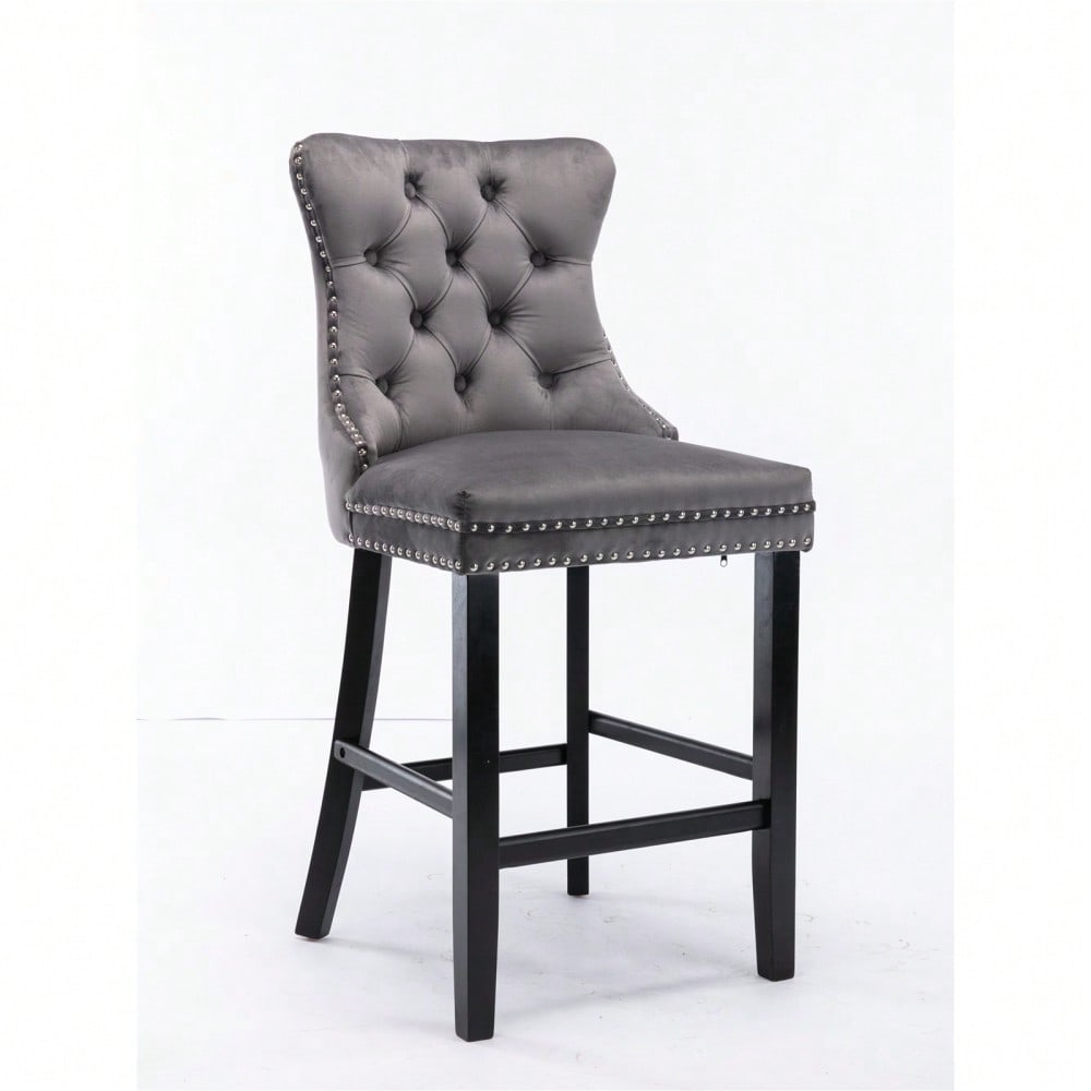 2er-Set Samt Barhocker mit Knopfsteppung & Holzbeinen | Chrom-Nagelkopf-Akzente & Polsterung | Höhenverstellbare Barhocker für Küche, Wohnzimmer in Grau | DE2002GY