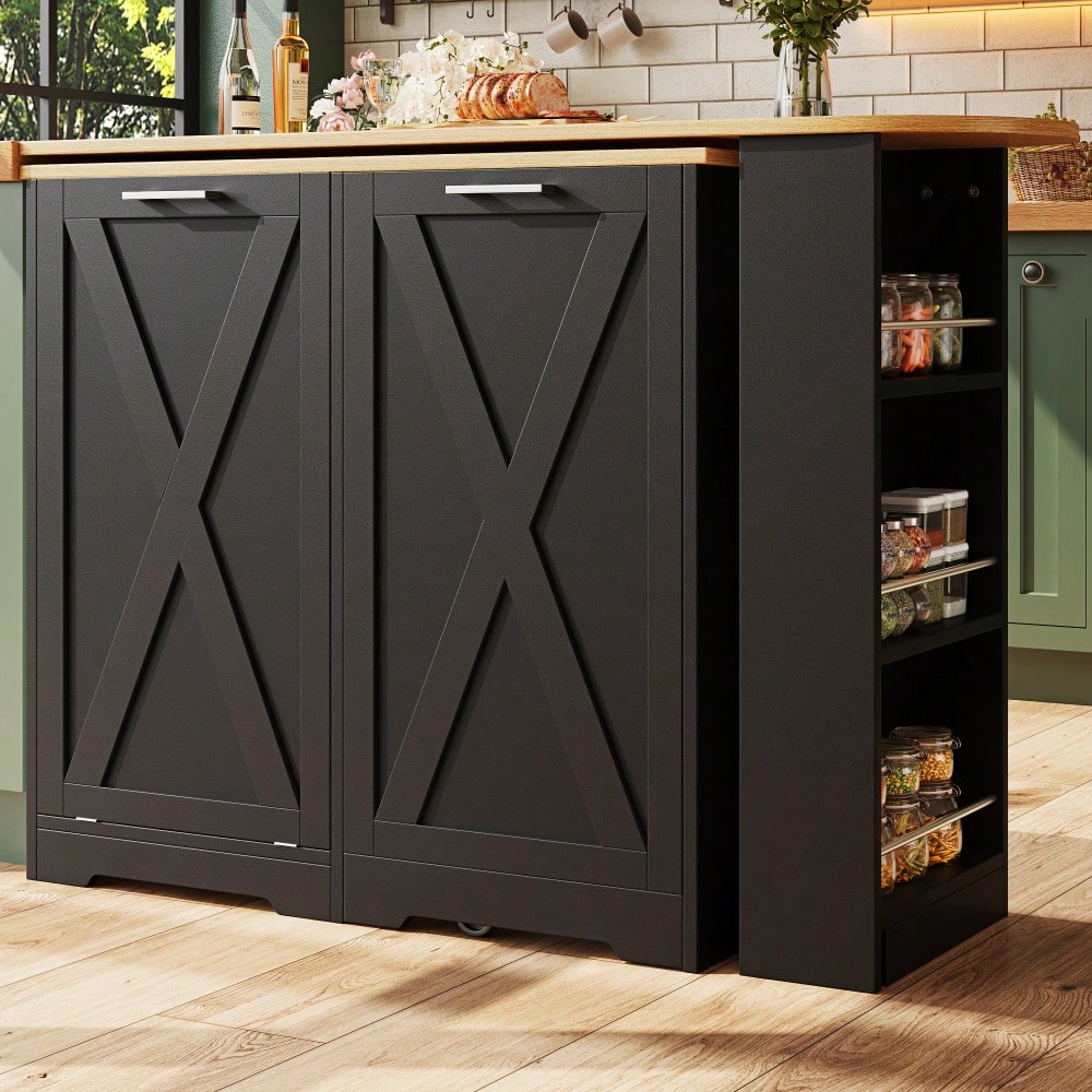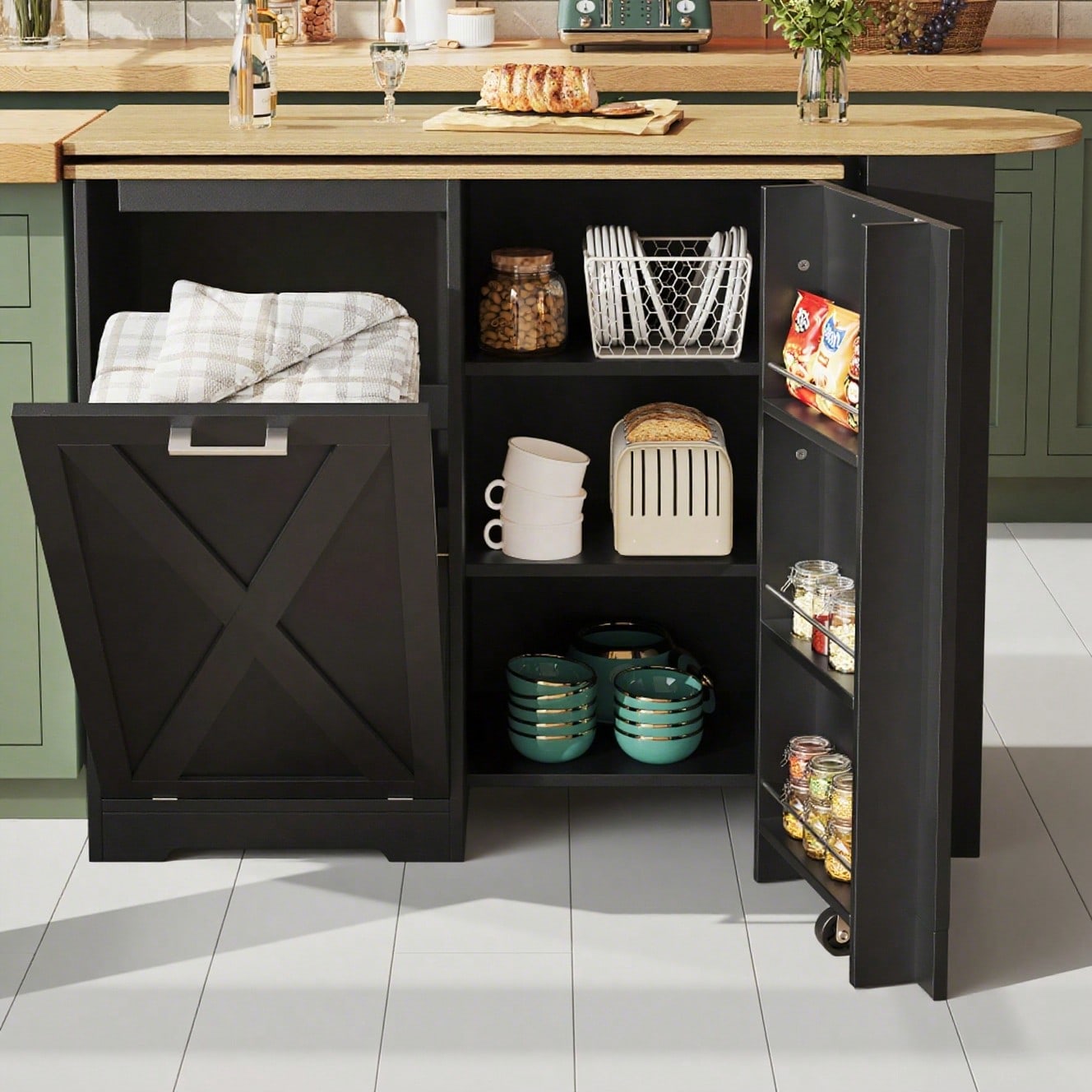 360° drehbare Esstheke, schlicht und modern, multifunktionale Aufbewahrung, geeignet für Schlafzimmer, Wohnzimmer, Esszimmer, drehbarer Sideboardschrank mit seitlichen Ablagen, schwarz, mit Klapptür