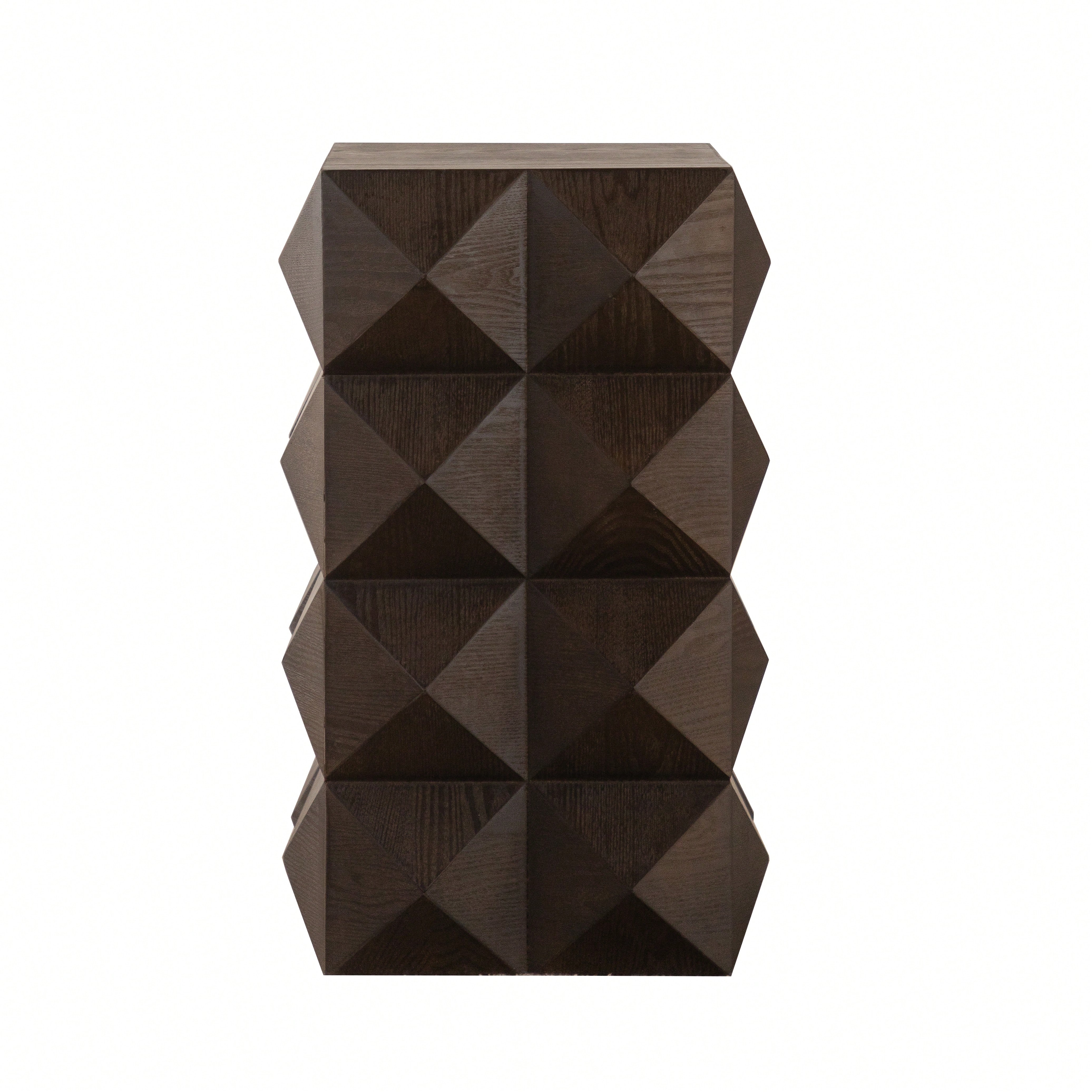 60CM Height Three-dimensional Embossed Pattern Design Retro Side Table Retro Wooden Nightstand Brown,No Assembly Required