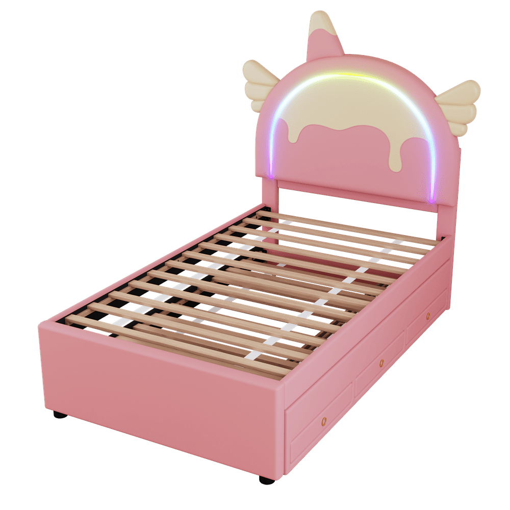 Specification Product Information Item Code: WX000533AAH Product Type: Combo Item Product Name: 90*200cm Cartoon Kinderbett, Einhornform, ausgestattet mit ausziehbares rollbett, PU-Material, rosa Main Color: Pink Main Material: PU Bed Size: 90cm*200cm Product Dimensions Assembled Length (cm): 203.00 Assembled Width (cm): 94.00 Assembled Height (cm): 135.50 Product Weight (kg): 49.00 Package Size Sub-item 1: WF321153AAH Package Quantity: 1 199 * 34.5 * 12 cm 26.8 kg Sub-item 2: WF321150AAH Package Quantity: 1 93.5 * 70.5 * 14.5 cm 28.2 kg Product Features Hochwertige Materialien: dieses Bett ist aus PU und MDF, beide Materialien haben eine ausgezeichnete Haltbarkeit und Stabilität, nicht leicht zu verformen und zu knacken, um die Sicherheit und Lebensdauer des Bettes zu gewährleisten. Einzigartiges Cartoon-Design: Dieses Bett hat eine einzigartige Cartoon-Einhorn-Form, die das eintönige Design des traditionellen Bettkopfes durchbricht und die Gesamterscheinung des Bettes lebendiger und schöner macht, im Einklang mit dem modernen Kinderzimmer-Dekorationsstil, kann schnell die Aufmerksamkeit der Kinder auf sich ziehen, ihre Phantasie und Kreativität anregen. Multifunktionales ausziehbares Rollbett design: Dieses Bett ist speziell mit einem ausziehbares rollbett mit Schubladen darunter ausgestattet, das nicht nur einen bequemen Schlafplatz für Kinder bietet, sondern auch die allgemeine Praktikabilität des Bettes erhöht. Leicht zu reinigen und zu pflegen: Das Oberflächenmaterial des Bettes ist leicht zu reinigen, selbst wenn die Kinder beim Spielen auf dem Bett versehentlich schmutzig werden, können sie es leicht abwischen. Das Bett wird in Zwei Paketen aus Deutschland verschickt, manchmal kommen die Pakete zu unterschiedlichen Terminen an, aber auch um sicherzustellen, dass Ihre Erwartungen erfüllt werden, haben Sie bitte Geduld oder kontaktieren Sie unseren freundlichen Kundenservice.