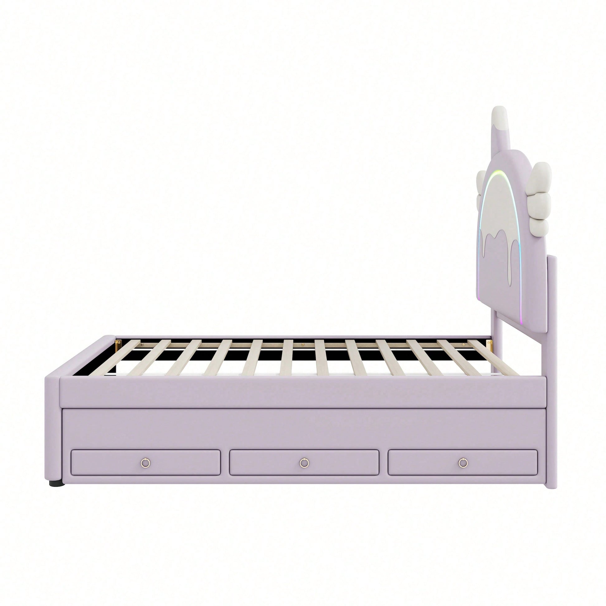 90*200cm Cartoon Kinderbett, Einhornform, ausgestattet mit ausziehbares rollbett, PU-Material,Violett