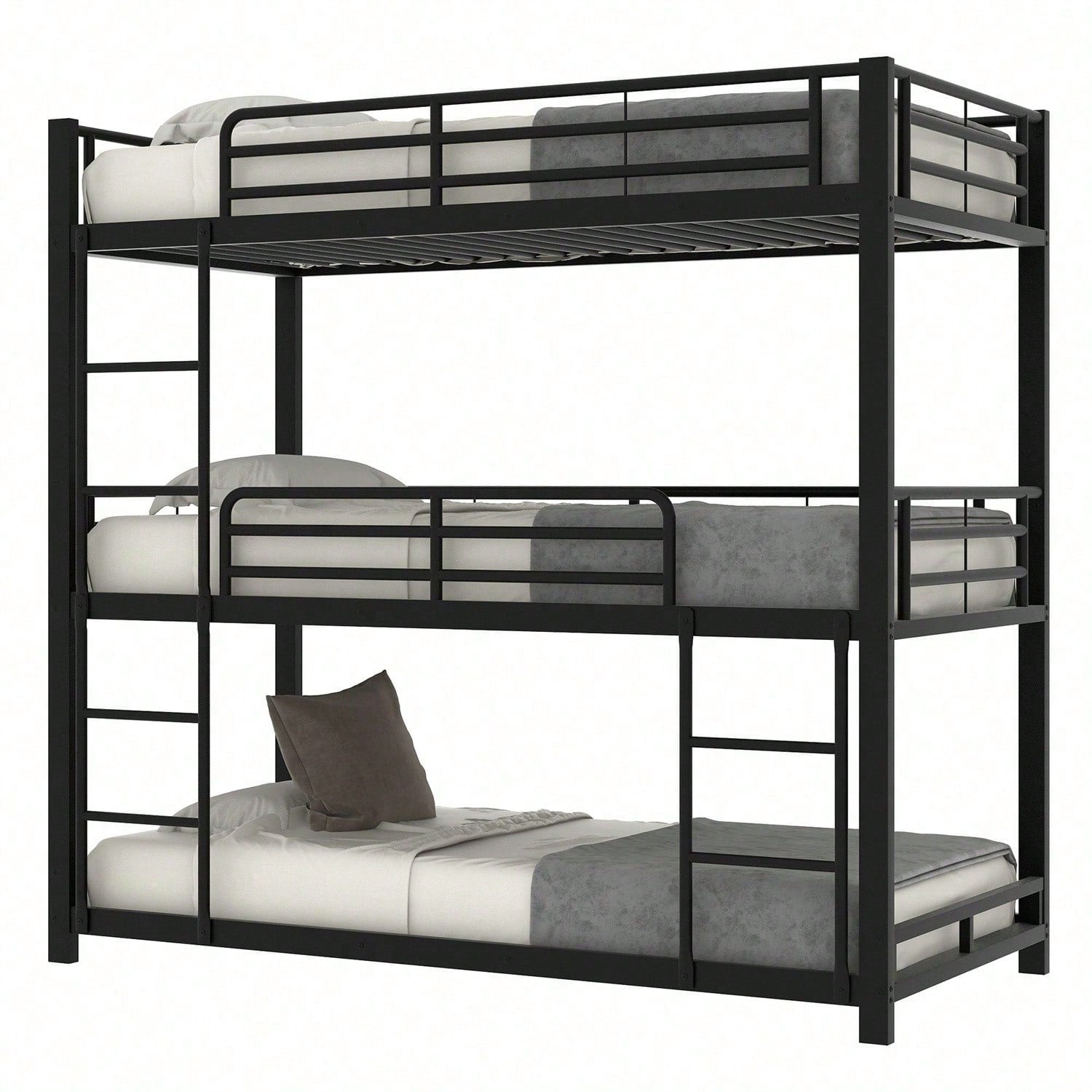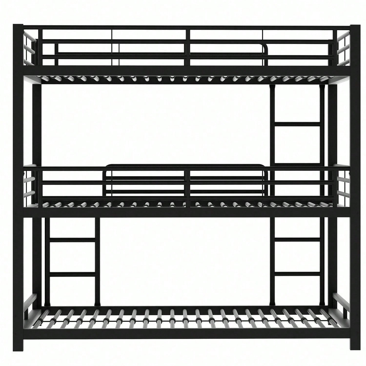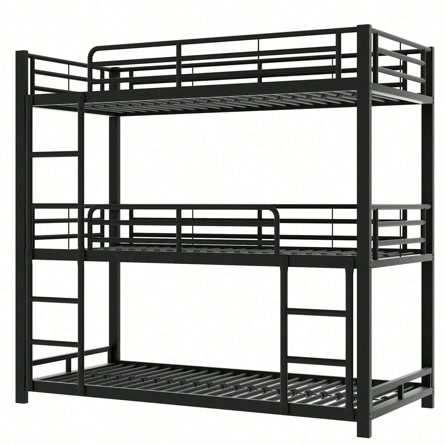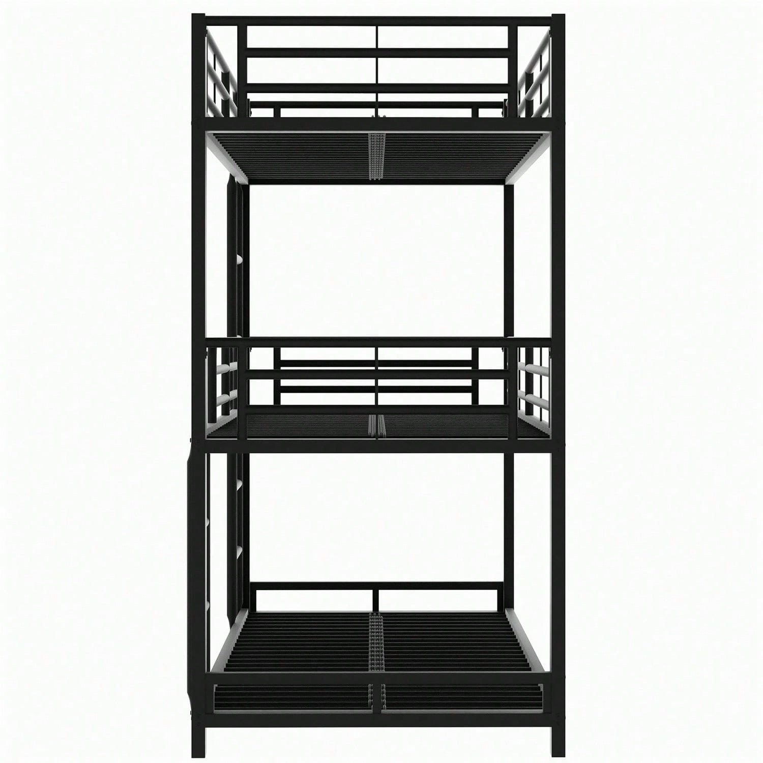 90x200cm Bettgestell Metallbett,Etagenbett,Eisenbett, Dreifach-Etagenbett für Kinder, Jugendliche und Erwachsene, Schwarz