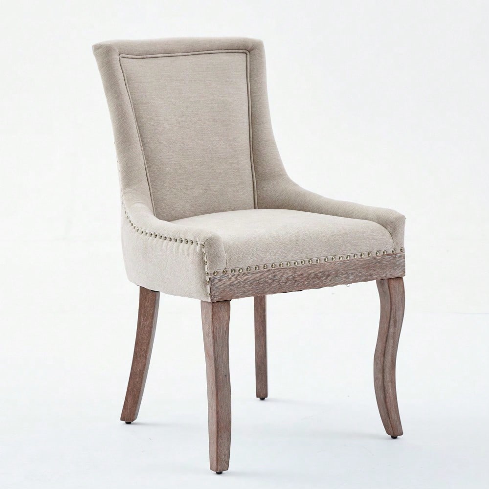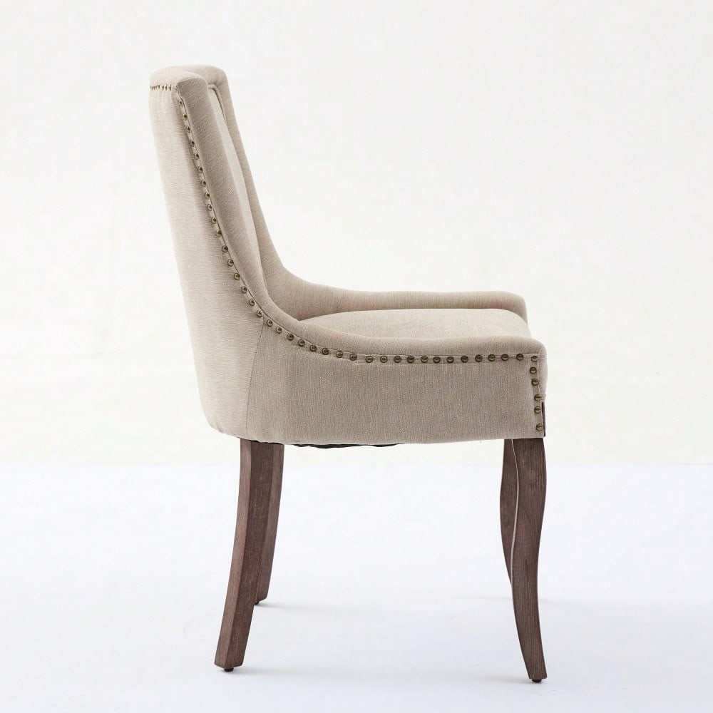 A&A Furniture,Ultra Side Dining Chair,Thickened fabric chairs with neutrally toned solid wood legs,Bronze nail head,Set of 2,Beige,DE1807BG