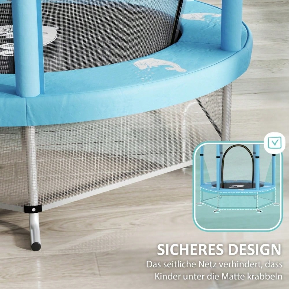AIYAPLAY Kinder Trampolin Ø140 cm, Indoor Trampolin mit Sicherheitsnetz Randabdeckung Gummiseil, Kindertrampolin mit Tür mit Reißverschluss, Tintenfisch-Muster, für Kinder 3-6 Jahre Hellblau