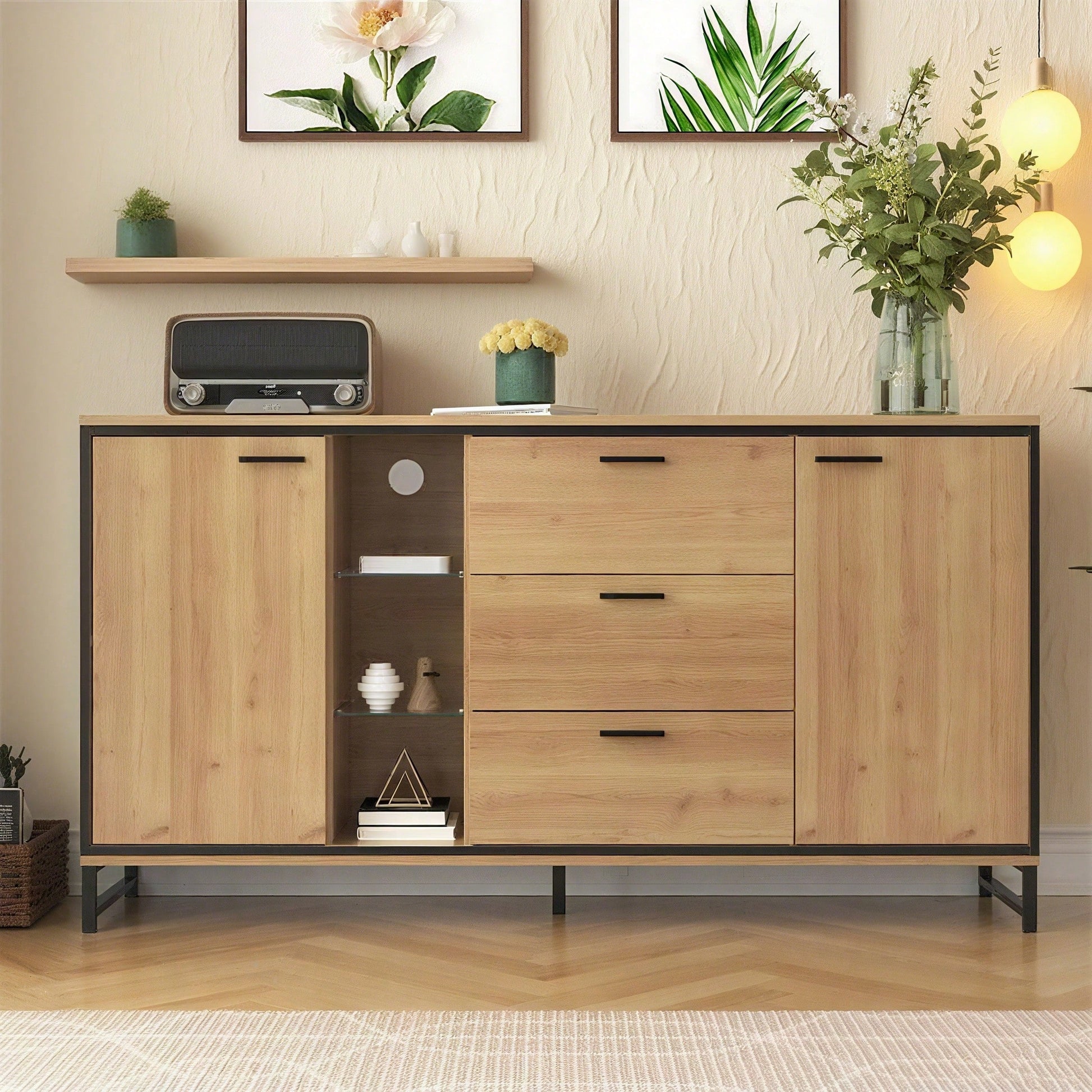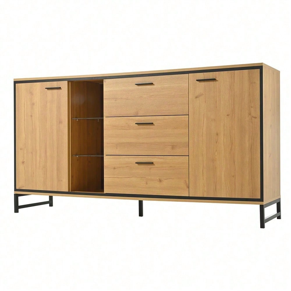 Descrizione Il colore principale di questa credenza è il legno naturale, che le conferisce un aspetto robusto ed elegante. Allo stesso tempo, gli elementi neri integrati conferiscono all'insieme un'atmosfera calda e naturale. Rendi questa credenza il punto focale di qualsiasi interno. I piedini in ferro sul fondo garantiscono stabilità e durata, conferendole al contempo un aspetto moderno. Le pareti divisorie in vetro offrono spazio espositivo e di contenimento, consentendo di esporre con eleganza libri, opere d'arte o altri oggetti di valore. La caratteristica più sorprendente è che questa credenza presenta 16 elementi cangianti, che creano una rifrazione unica di luci e ombre con il pannello posteriore in un colore unico. Questi colori cangianti, così come luci e ombre, rendono la credenza un'opera d'arte che dona movimento e vitalità agli interni. Nota! 1. A causa di fattori di illuminazione o di esposizione, il colore del prodotto reale potrebbe differire leggermente dall'immagine. 2. A causa della misurazione manuale, potrebbero verificarsi alcuni errori ragionevoli. 3. A causa della casualità delle venature del legno, le venature del legno di ogni mobile non sono esattamente le stesse. 4. Per motivi logistici, i tempi di consegna di più pacchi potrebbero variare. Si prega di comprendere. Dimensioni e peso Dimensioni complessive: 160 L x 40 P x 85 A (cm) Dimensioni dettagliate: fare riferimento all'immagine. Materiale: MDF Laccato lucido: No Altri strumenti richiesti: Sì Numero di pacchi: 2 Origine: Cina