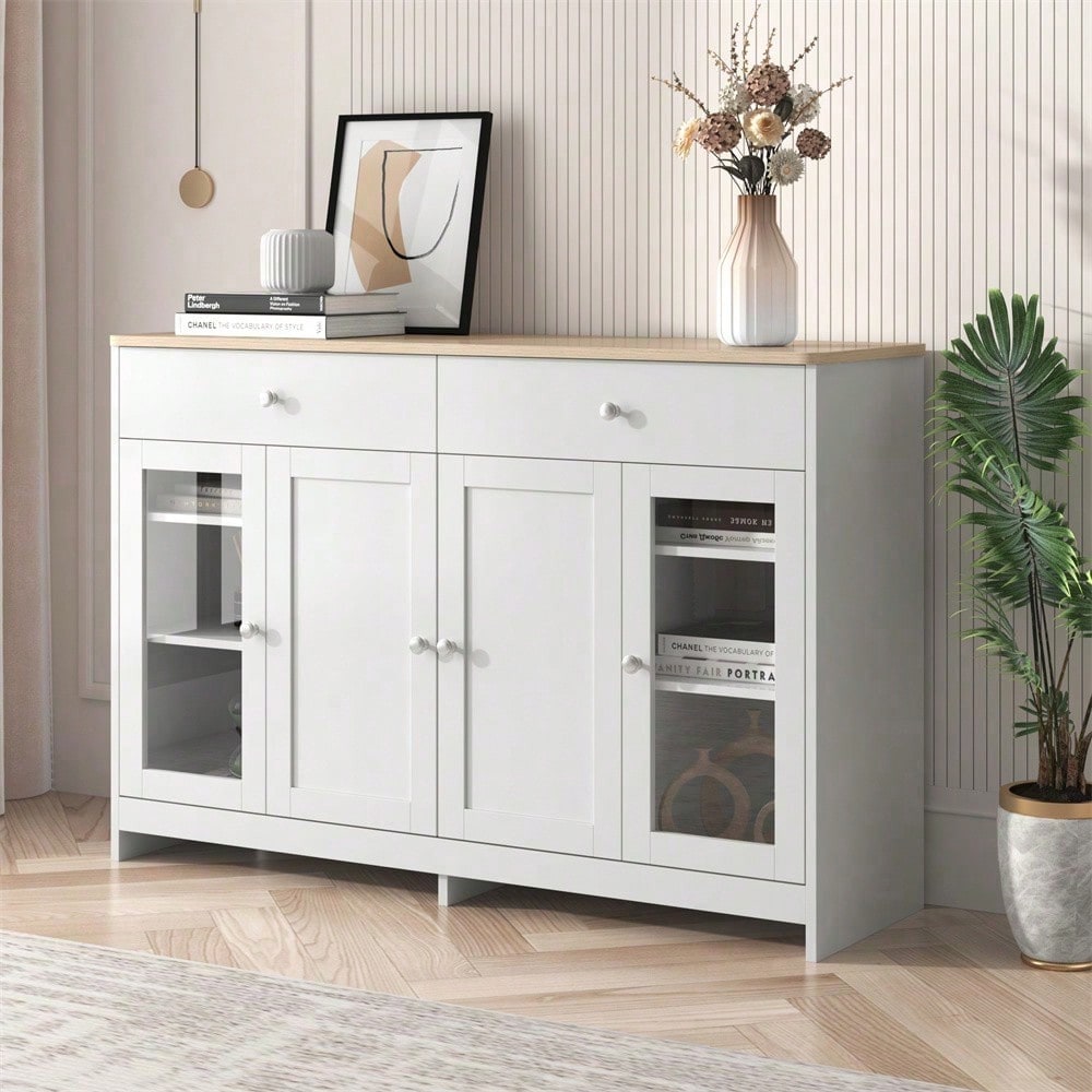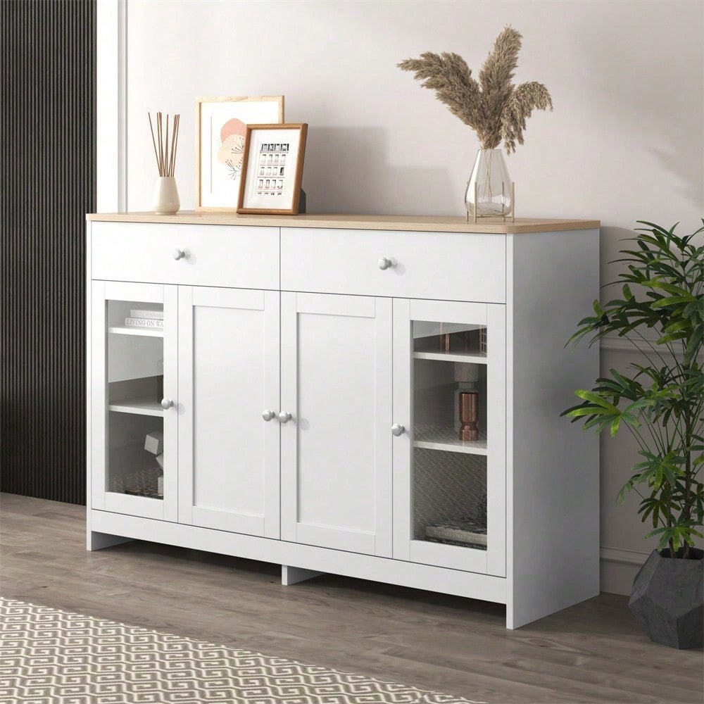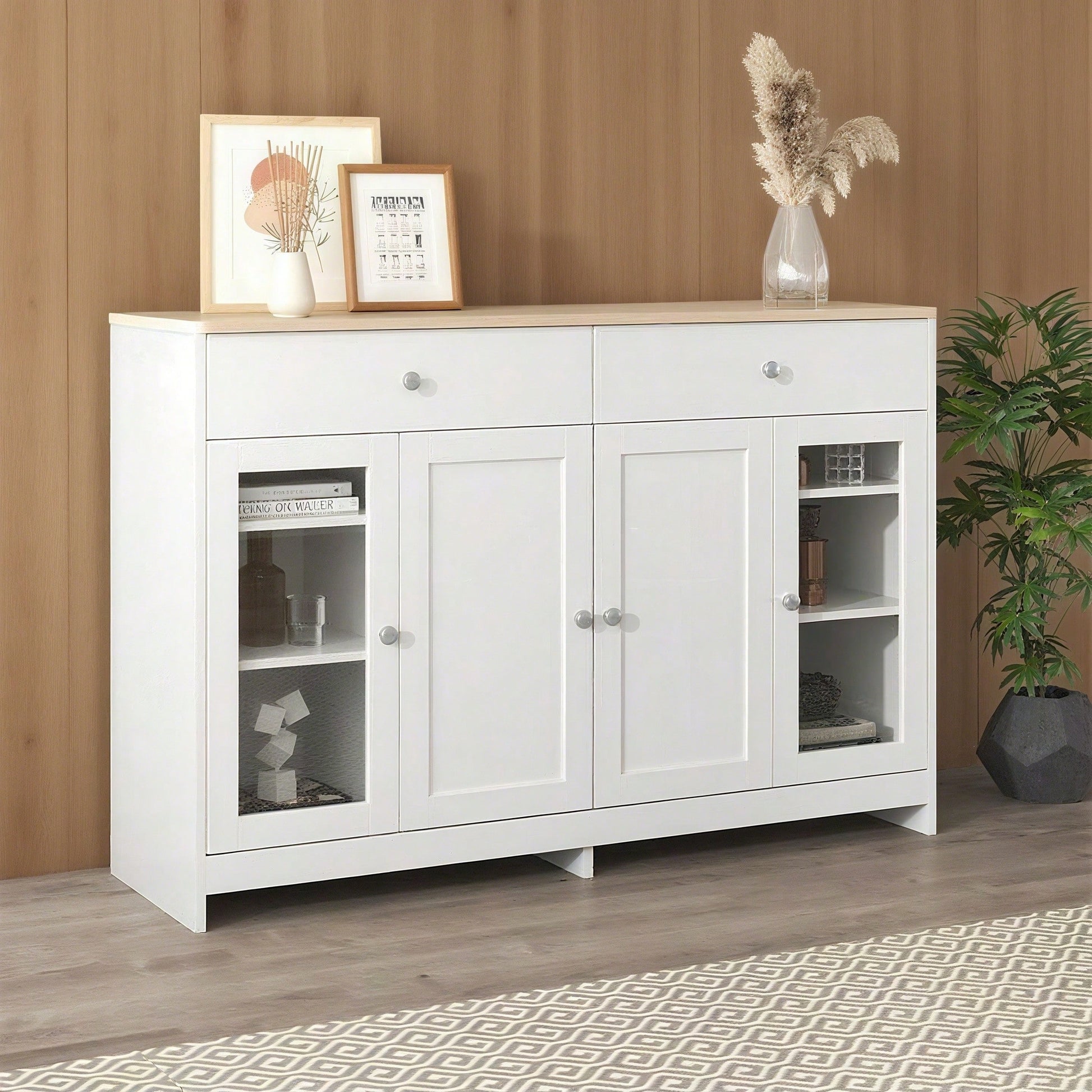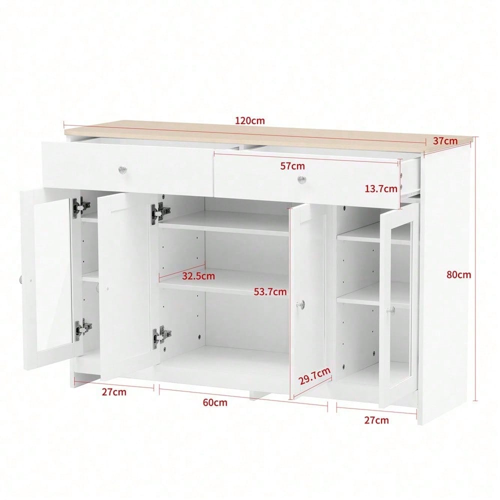Rivenditori Credenza/credenza rustica in stile country naturale, perfetta per un'atmosfera calda e accogliente. Ampio spazio con due cassetti, quattro ante e ripiani regolabili: tutto ben riposto e a portata di mano. Lavorazione di alta qualità con piano in legno e eleganti fianchi bianchi: un vero e proprio elemento di spicco per la vostra casa. Con le sue dimensioni di 120 cm di lunghezza, 80 cm di altezza e 37 cm di profondità, si adatta perfettamente alla vostra cucina, sala da pranzo o soggiorno. Facile da montare con istruzioni dettagliate e accessori di montaggio: installazione rapida e semplice. Il classico stile country incontra la funzionalità moderna: una credenza versatile per una varietà di usi. Aggiungete un tocco di naturale eleganza e fascino raffinato alla vostra casa con questa credenza/credenza rustica. Specifiche tecniche Dimensioni complessive: 120 L x 37 P x 80 A (cm) Carico prodotto: 70 kg Dimensioni imballo: 131,2 x 45,5 x 13 + 88,5 x 45 x 22 (cm) Peso netto: 35 kg Peso imballo: 18,6 + 20 kg Specifiche Materiale: MDF e truciolato Colore: Bianco e color legno Tempo di montaggio: 3 30-60 minuti (consigliato per 2 persone) Altri utensili necessari: tutti gli utensili inclusi Numero di colli: 2 Origine: Cina