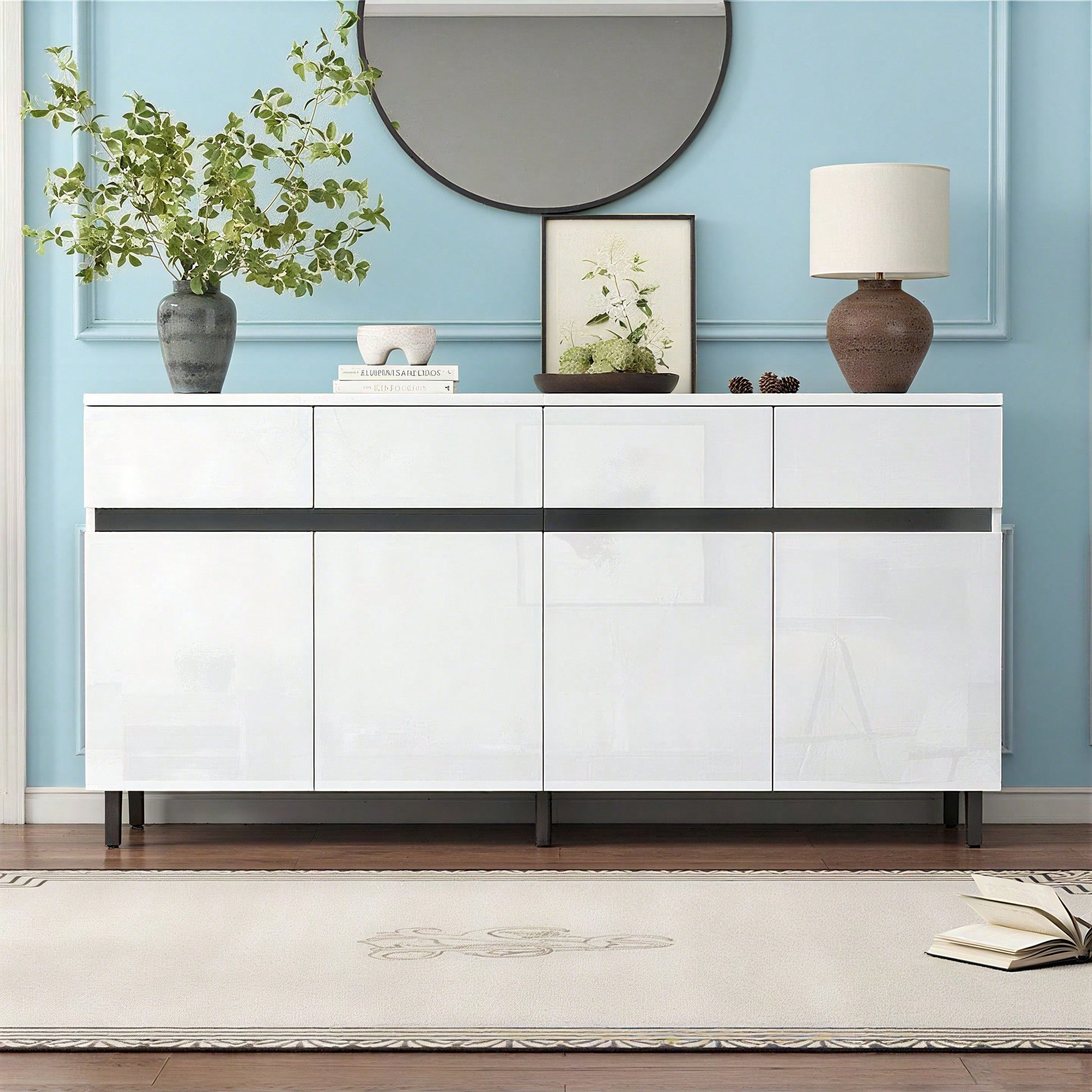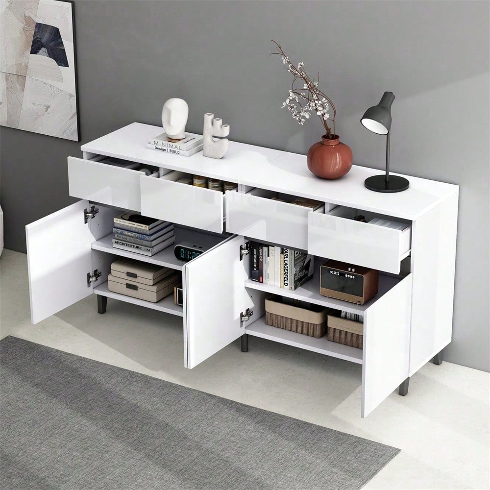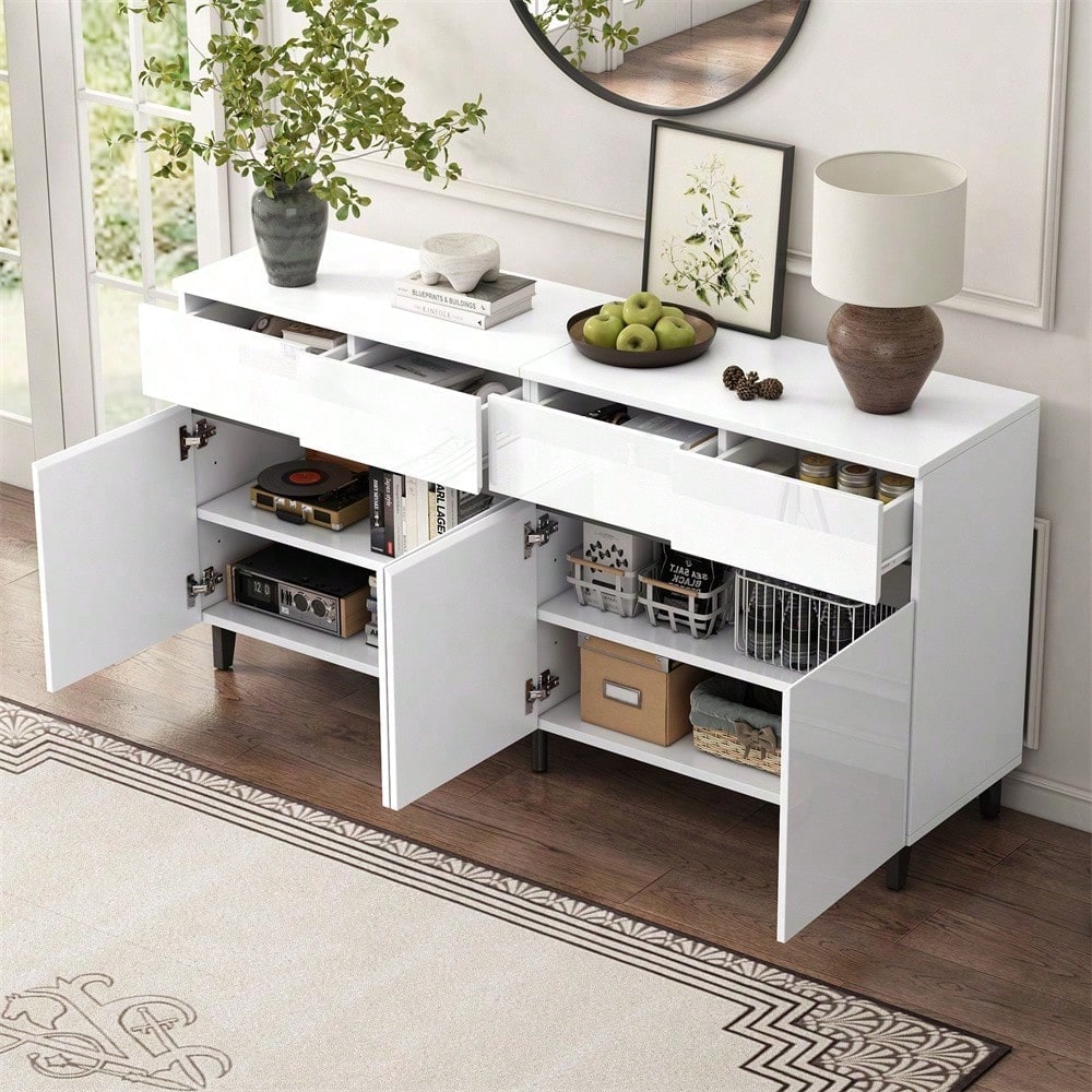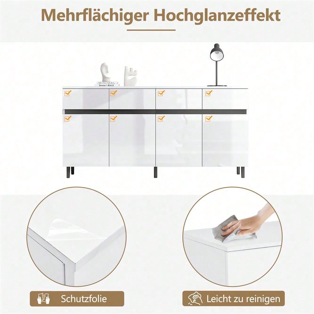 Especificaciones Información del producto Código de artículo: N625P228826849W Tipo de producto: Artículo combinado Nombre del producto: Aparador, cómoda, aparador alto brillo de 160 x 40 x 68 cm con 4 cajones, 2 puertas y estantes regulables en altura, aparador alto brillo, armarios bajos alto brillo, armarios esquineros, armarios, blanco Color principal: Blanco Material principal: Tablero de partículas Dimensiones del producto Largo ensamblado (cm): 160,00 Ancho ensamblado (cm): 40,00 Alto ensamblado (cm): 68,00 Peso del producto (kg): No aplicable Tamaño del paquete Subartículo 1: N625P228849W Cantidad del paquete: 1 68,58 x 52,71 x 23,11 cm 27,7 kg Subartículo 2: N625P228826W Cantidad por paquete: 1 92,96 x 54,36 x 18,03 cm, 27,05 kg