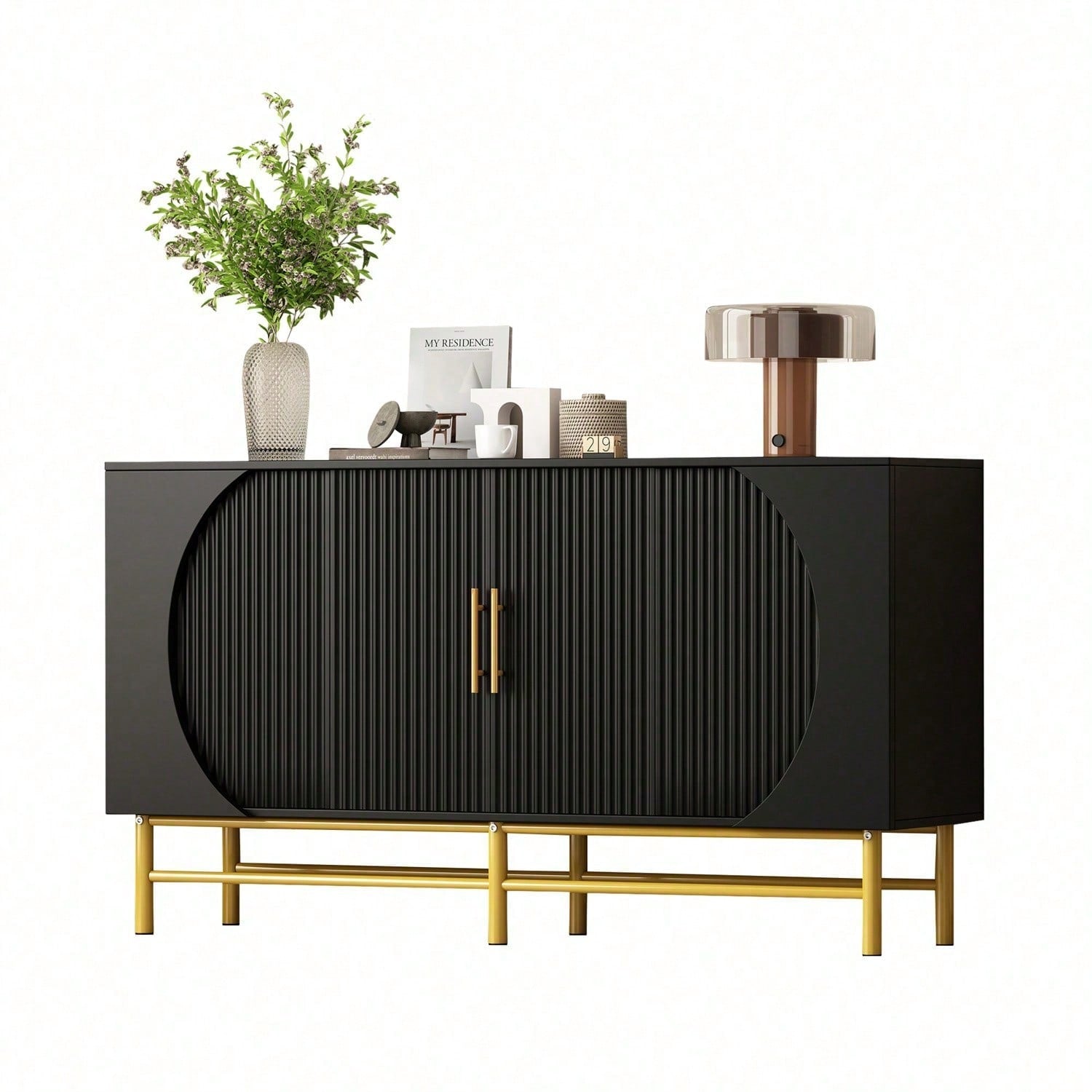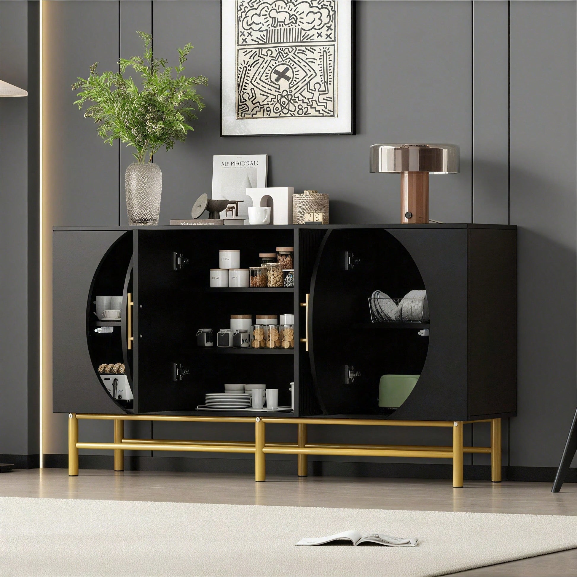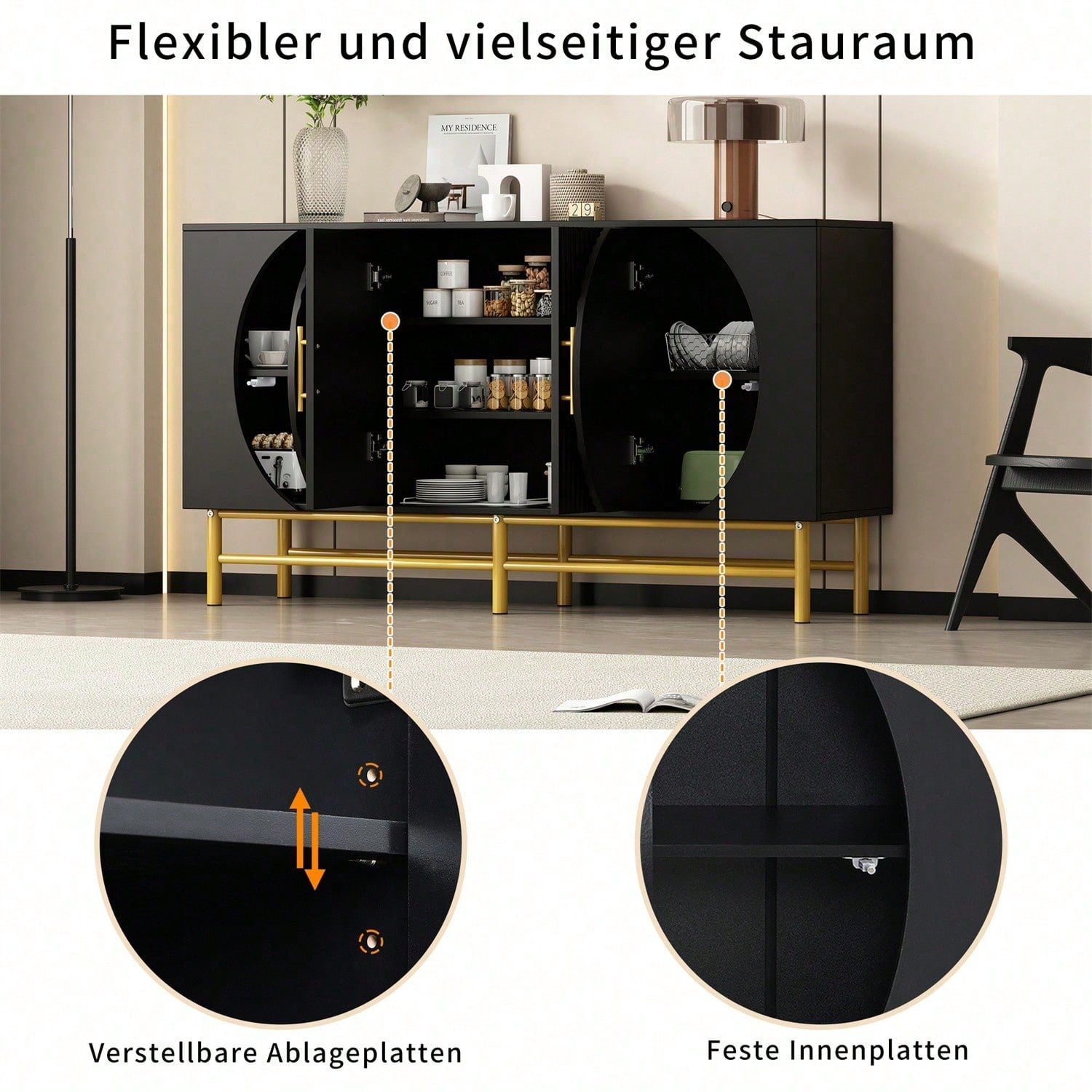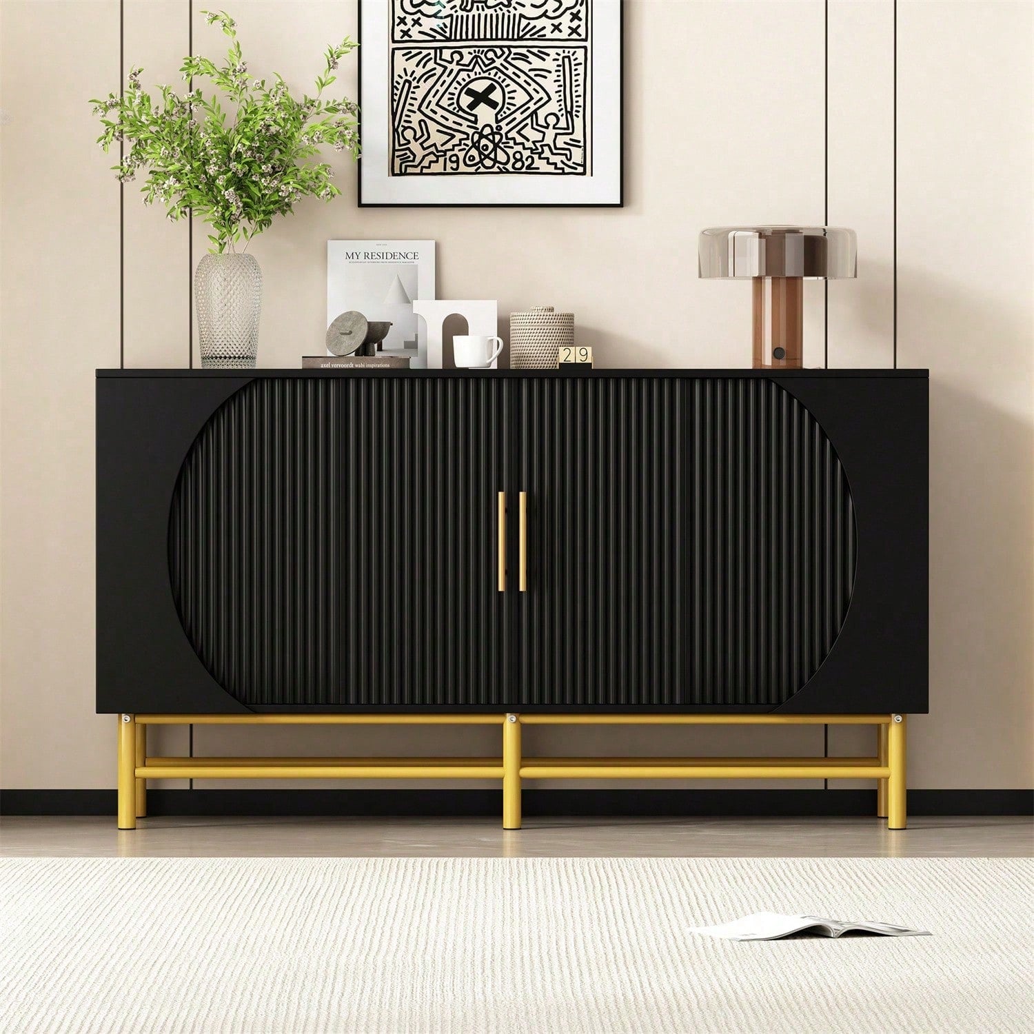 Especificaciones Información del producto Código del artículo: DE000024AAB Tipo de producto: Artículo combinado Nombre del producto: Aparador moderno de cuatro puertas con rayas verticales y estantes ajustables, único y con muchas características, ideal para sala y comedor (negro) Lugar de origen: China Color principal: Negro Material principal: Hierro, MDF Dimensiones del producto Largo ensamblado (cm): 145.00 Ancho ensamblado (cm): 40.00 Alto ensamblado (cm): 81.50 Peso del producto (kg): 39.40 Tamaño del paquete Subartículo 1: N651P271314B Cantidad del paquete: 1 73.03 * 48.01 * 22.86 cm 20.9 kg Subartículo 2: N651P271313B Cantidad del paquete: 1 158,12 x 49,02 x 13,34 cm 23,9 kg