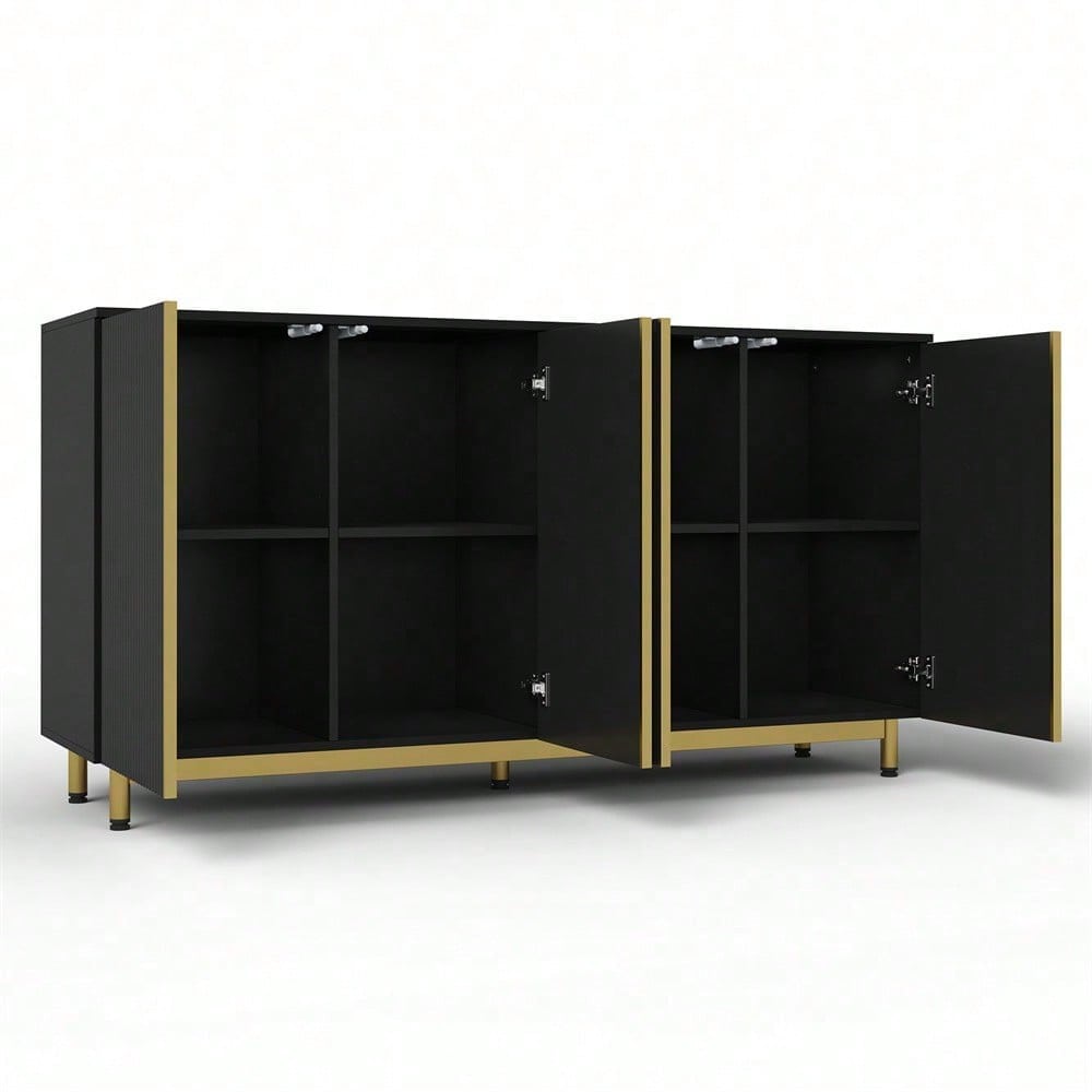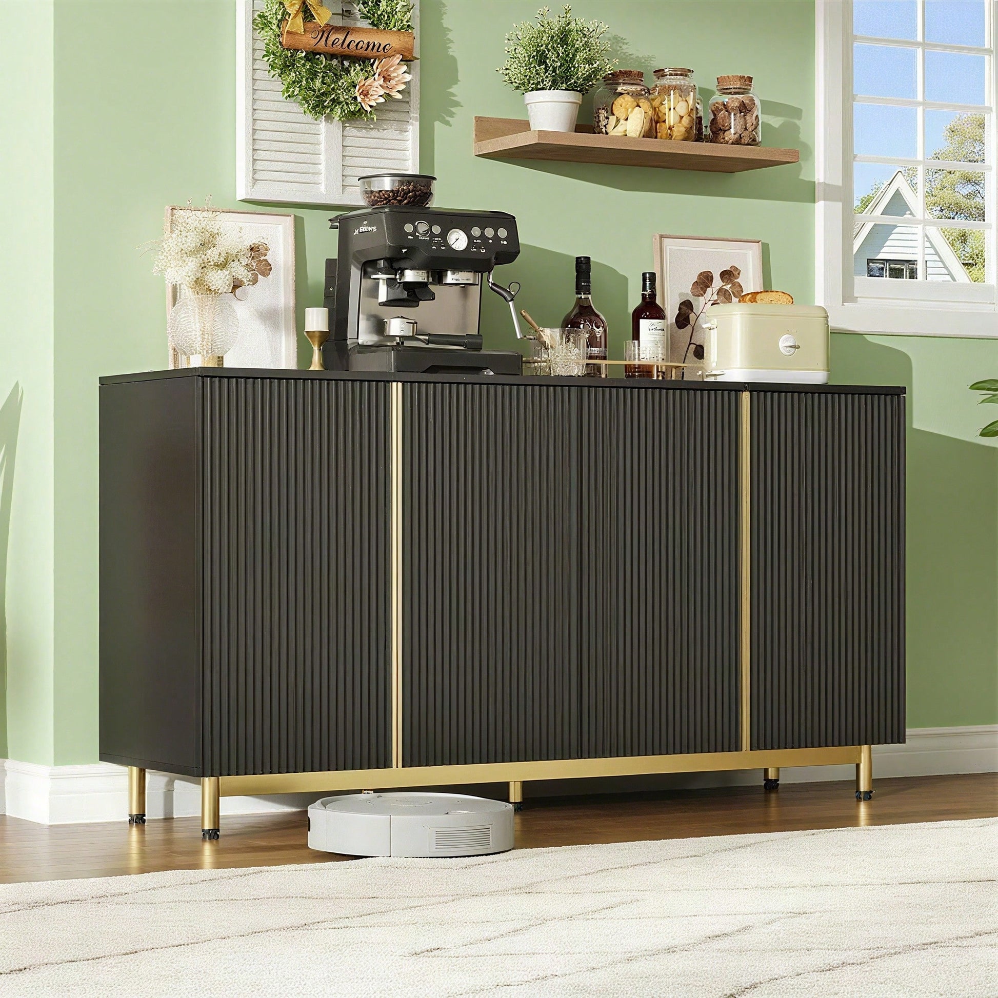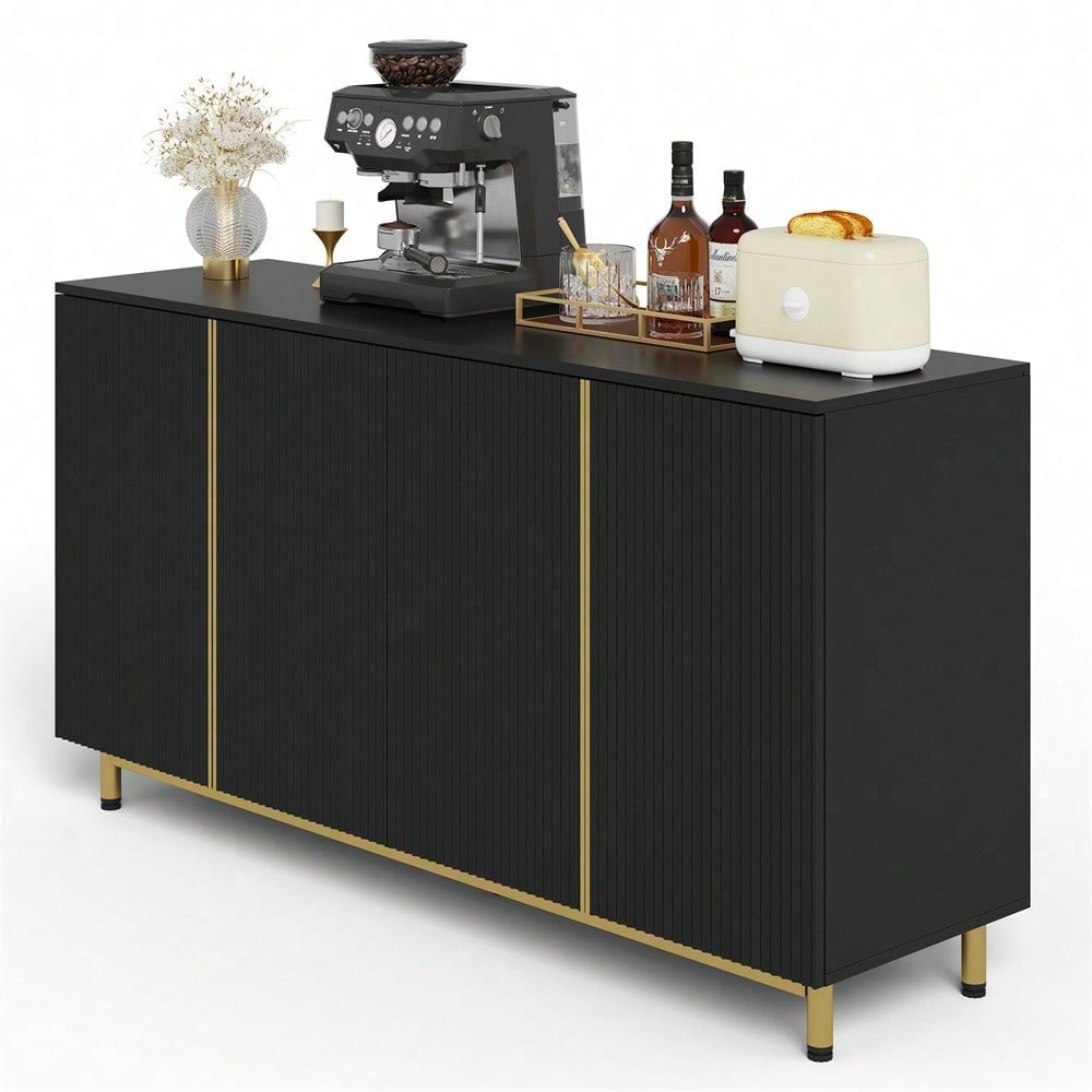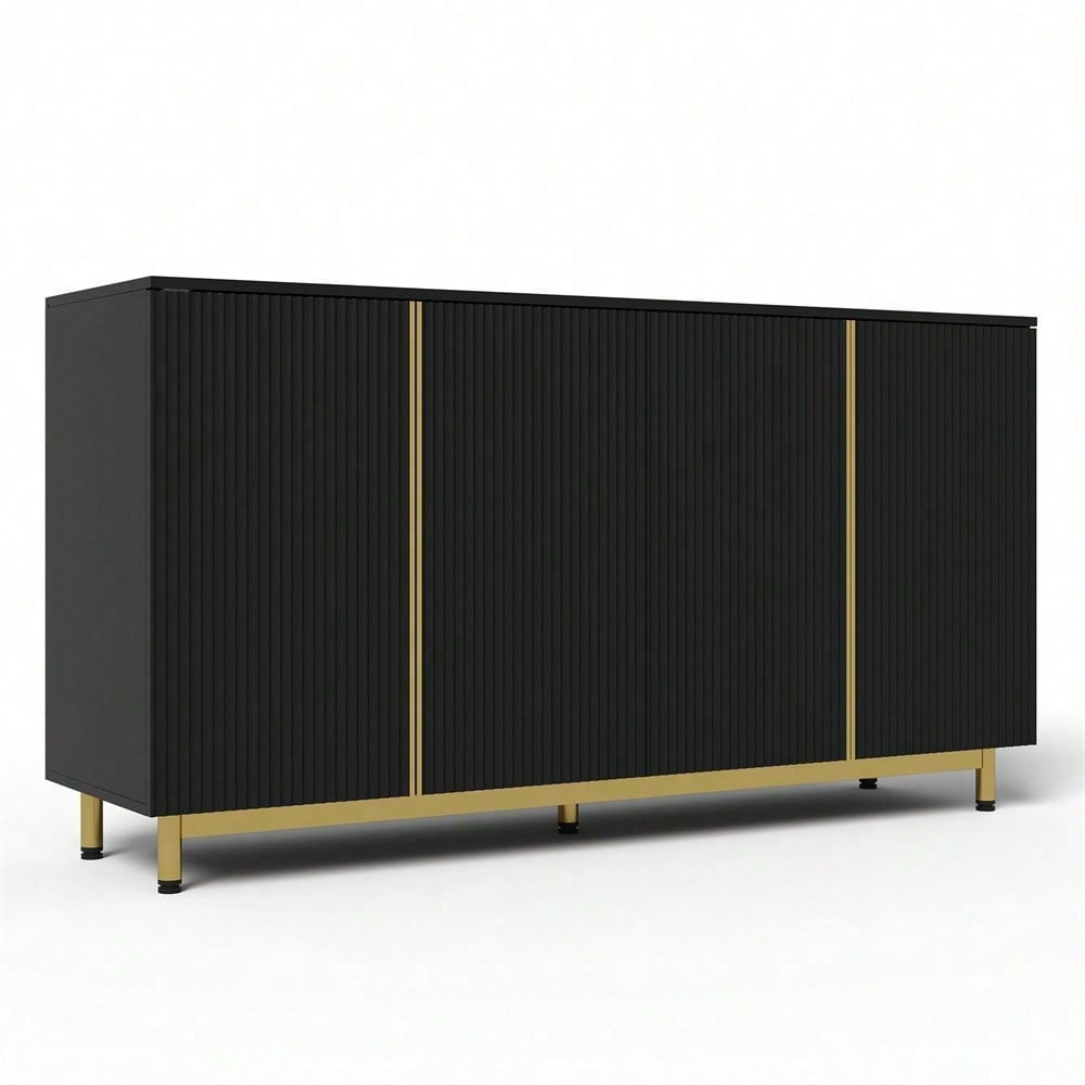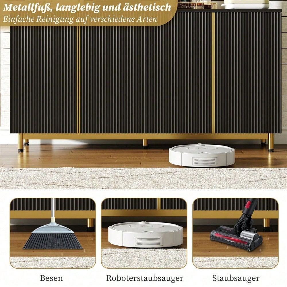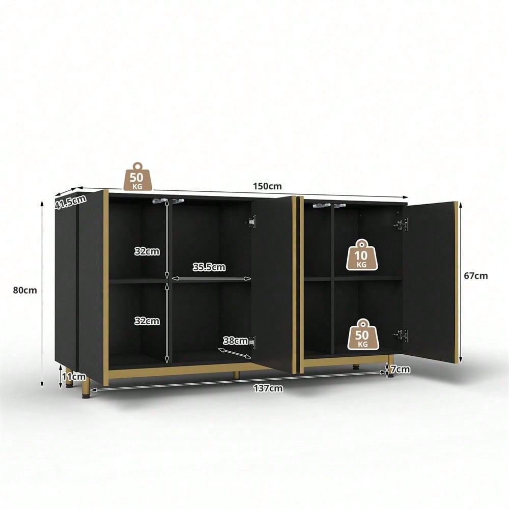Especificaciones Información del producto Código del artículo: N635P27177172S UPC: N635P27177172S Tipo de producto: Artículo combinado Nombre del producto: Aparador de 150 cm, aparador con puertas onduladas y estriadas, patas metálicas ajustables, mesa de comedor moderna, ideal para comedor, cocina y sala de estar - Negro Color principal: Negro + Dorado Material principal: MDF Dimensiones del producto Largo ensamblado (cm): 150.00 Ancho ensamblado (cm): 41.50 Alto ensamblado (cm): 81.00 Peso del producto (kg): 40.00 Tamaño del paquete Subartículo 1: N635P271771S Cantidad del paquete: 1 76.84 * 45.49 * 19.05 cm 20.1 kg Subartículo 2: N635P271772S Cantidad por paquete: 1 161,49 x 47,63 x 12,7 cm 27,55 kg Características del producto ✅[Gran capacidad] – Este aparador cuenta con 4 puertas y 4 estantes ajustables, lo que le permite ajustar el espacio de almacenamiento a sus necesidades. Este aparador de gran capacidad mantiene todo organizado y ofrece amplio espacio para guardar todos sus artículos. ✅[Puertas con cierre automático] – Este aparador cuenta con puertas con cierre automático sin tiradores, lo que evita que su familia se golpee con los tiradores y garantiza que las puertas se cierren suave y automáticamente después de abrirse. Su diseño sencillo y moderno se adapta perfectamente a cualquier estilo de decoración. ✅[Construcción robusta] – Este aparador está hecho de madera contrachapada y presenta una construcción robusta que soporta fácilmente electrodomésticos como microondas, licuadoras y cafeteras. La robusta base de metal garantiza una excelente estabilidad; la parte superior del mueble soporta hasta 50 kg y cada estante hasta 10 kg. Además, cuenta con protección antivuelco para mayor estabilidad. ✅ [Usos versátiles] - Este versátil aparador realzará tu hogar y es ideal para una gran variedad de usos. Ya sea como un elegante aparador en el comedor, un mueble bar en la sala de estar o la cocina, o como un práctico mueble de almacenaje en la sala de estar, su adaptabilidad es inigualable. Apto para espacios grandes y pequeños, es la solución definitiva para tus diversas necesidades. ✅ [Fácil montaje y mantenimiento] - Con unas medidas de 150 cm (ancho) x 41,5 cm (largo) x 80 cm (alto), nuestro aparador cuenta con patas de 11 cm de alto para facilitar su aspirado y limpieza. El montaje es sencillo gracias a las claras instrucciones de montaje, las piezas numeradas y las herramientas incluidas. Mantener este mueble decorativo limpio y como nuevo es muy fácil: simplemente límpialo con un paño limpio y seco. Consejo especial: (1) La medición manual puede tener algunos errores de tamaño. (2) Debido a las diferencias del monitor y los efectos de la luz de disparo, el color del producto puede ser ligeramente diferente al real. (3) Utilice una toalla humedecida en agua para limpiar durante el mantenimiento.