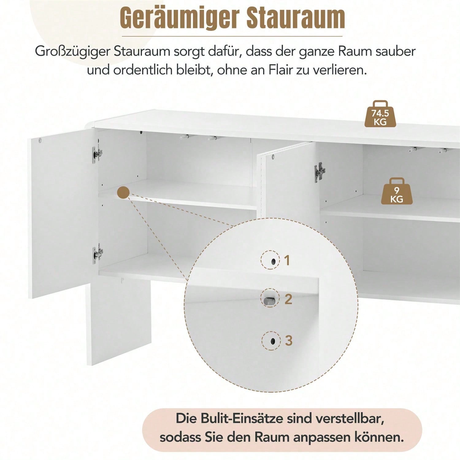 Spécifications Informations produit Code article : DE000005AAK Type de produit : Combo Nom du produit : Grand buffet de rangement minimaliste avec 4 portes et dossier pour salon et entrée (Blanc) Origine : Chine Couleur principale : Blanc Matériau principal : MDF Dimensions du produit Longueur assemblée (cm) : 152,50 Largeur assemblée (cm) : 40,00 Hauteur assemblée (cm) : 76,50 Poids du produit (kg) : 41,00 Dimensions du colis (images) Sous-article 1 : WF319226AAK Quantité : 1 84,5 x 47,2 x 16 cm, 19,2 kg Sous-article 2 : WF319225AAK Quantité : 1 163,5 x 48,5 x 11,5 cm, 26,2 kg Caractéristiques du produit Ce produit Ce buffet, fabriqué en MDF et panneaux de particules, présente un style élégant et minimaliste et s'intègre parfaitement aux intérieurs modernes. Grâce à ses couleurs claires, il s'intègre parfaitement à tous les styles de décoration. Ce buffet à étagères réglables est un ajout polyvalent et multifonctionnel à tout espace de vie ou de rangement. Il créera un ensemble parfaitement coordonné une fois ajouté à votre collection. Les rainures des quatre portes du buffet ajoutent une touche de texture sans encombrer ni encombrer inutilement votre intérieur. Les bords harmonieusement arrondis du buffet créent une silhouette douce qui favorise une sensation de paix et de sérénité et protège vos enfants et les personnes âgées des angles vifs. Les côtés et les pieds du buffet sont intégrés pour un gain de place optimal. Les buffets sont une solution de rangement simple, légère et minimaliste, offrant un espace de rangement généreux. Ce buffet à quatre portes comprend deux armoires, chacune avec une étagère réglable, qui s'ouvrent sur quatre compartiments divisés par des étagères. Les deux étagères intégrées sont réglables, vous permettant d'ajuster l'espace à la hauteur de vos objets pour une organisation optimale. Vous pouvez également retirer les panneaux en bois pour optimiser l'espace. Ce buffet est fabriqué avec des matériaux de haute qualité et un savoir-faire irréprochable pour une longue durée de vie. Tous les matériaux, y compris le MDF et les panneaux de particules, sont de première qualité pour une utilisation durable, garantissant stabilité et durabilité. Équipé de quatre dispositifs de poussée au lieu de poignées de porte classiques, il suffit d'appuyer fermement au centre pour ouvrir la porte. Assemblage complet requis. Ce produit est livré avec une notice détaillée et peut être installé étape par étape, ce qui vous permettra de terminer l'assemblage le plus rapidement possible.