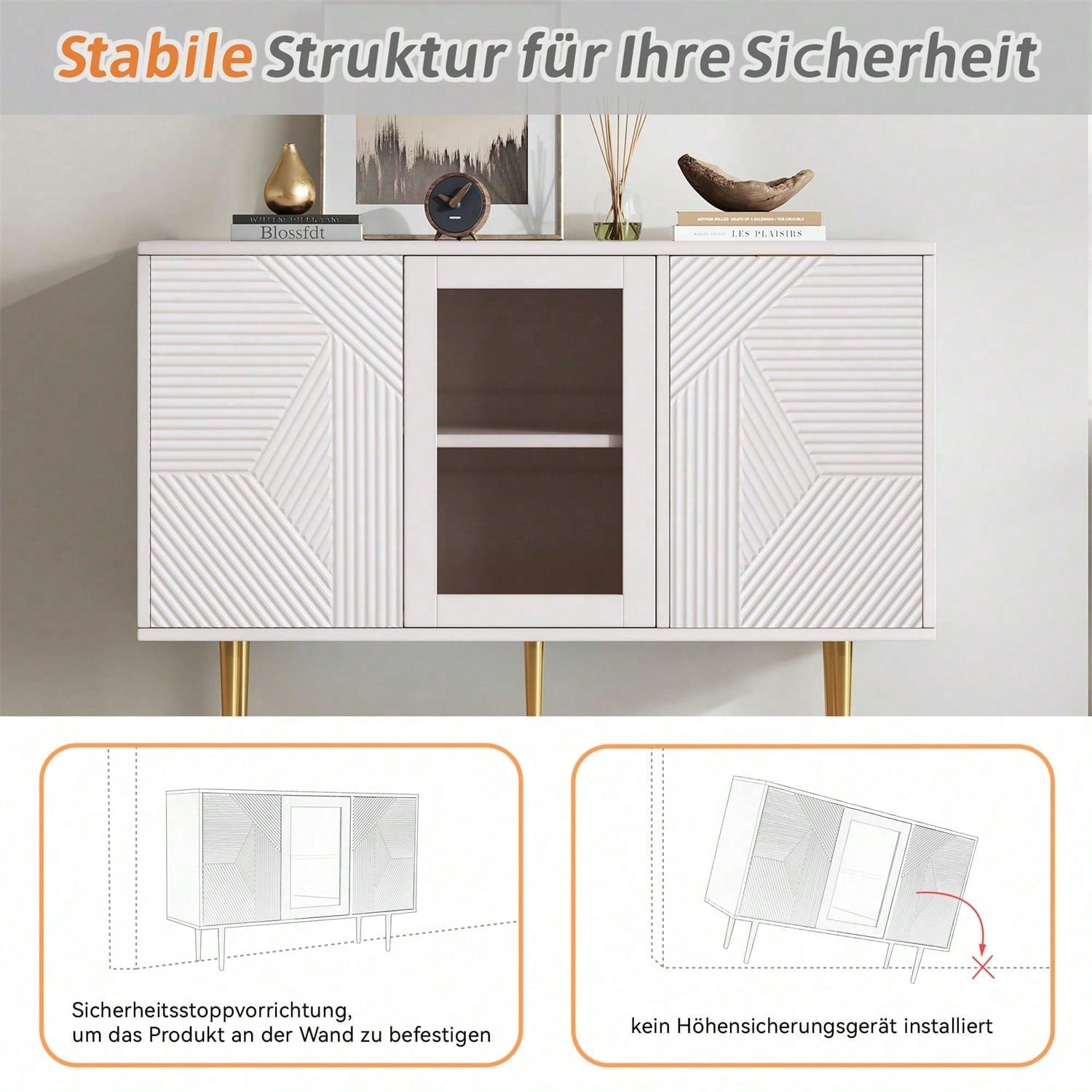Spécifications Informations produit Code article : N657P25359798W Type de produit : Combo Nom du produit : Commode 3 portes, pieds en métal et portes vitrées, blanche, dimensions : 120 x 38 x 79,5 cm Couleur principale : Blanc Matériau principal : Panneau de particules Dimensions du produit Longueur assemblée (cm) : 120,00 Largeur assemblée (cm) : 38,00 Hauteur assemblée (cm) : 79,50 Poids du produit (kg) : 32,37 Dimensions du colis Sous-article 1 : N657P253598W Quantité : 1 67 x 48 x 30 cm, 18,7 kg Sous-article 2 : N657P253597W Quantité : 1 134 x 47 x 12 cm, 16,7 kg Caractéristiques du produit