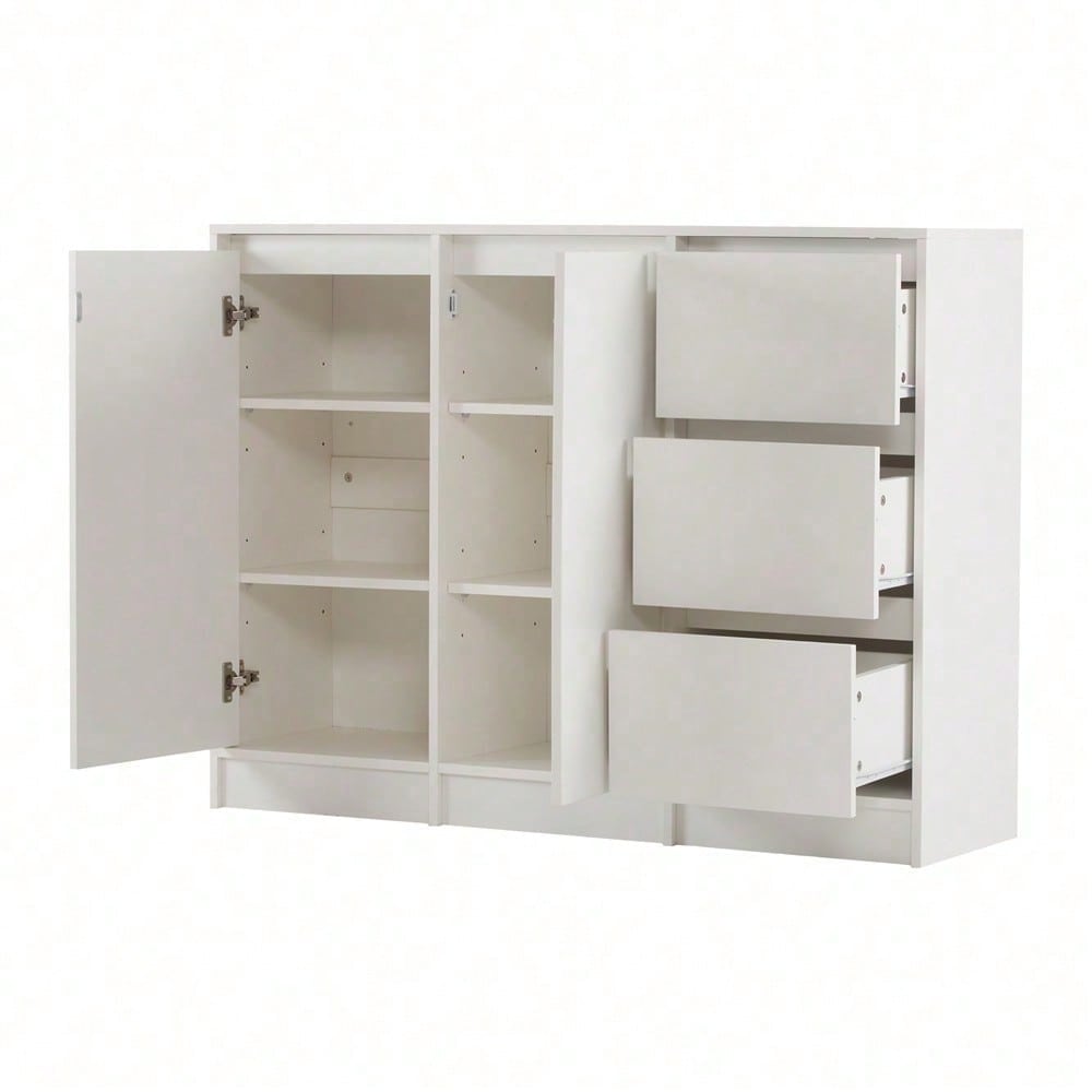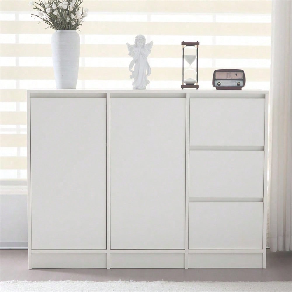 Spécifications Informations produit Code article : N657P19981819W Type de produit : Combo Nom du produit : Buffet moderne avec grand espace de rangement, deux portes et trois tiroirs, avec étagère réglable, pour salle à manger, salon ou cuisine, blanc, dimensions : 120 x 90 x 35 cm Couleur principale : Blanc Matériau principal : Panneau de particules Dimensions du produit Longueur assemblée (cm) : 120,00 Largeur assemblée (cm) : 35,00 Hauteur assemblée (cm) : 90,00 Poids du produit (kg) : 46,95 Dimensions du colis Sous-article 1 : N657P199819W Quantité par colis : 1 90 x 49,5 x 20 cm, 29,9 kg Sous-article 2 : N657P199818W Quantité par colis : 1 133,5 * 47 * 13 cm 25,4 kg Caractéristiques du produit Apparence élégante et moderne : Avec ses lignes épurées et son extérieur élégant, ce meuble moderne s'intègre parfaitement à tout style d'intérieur, qu'il soit moderne ou traditionnel. Flexibilité : La conception des étagères réglables permet un rangement polyvalent, optimisant chaque centimètre carré de l'armoire et contribuant à un environnement de vie propre et agréable. Fonctionnalité : Ce produit dispose d'un plan de travail spacieux pour exposer photos, vases ou petites décorations. Le tiroir offre un espace généreux pour les lacets et les clés. L'armoire inférieure permet également de ranger des objets supplémentaires pour optimiser l'espace disponible.