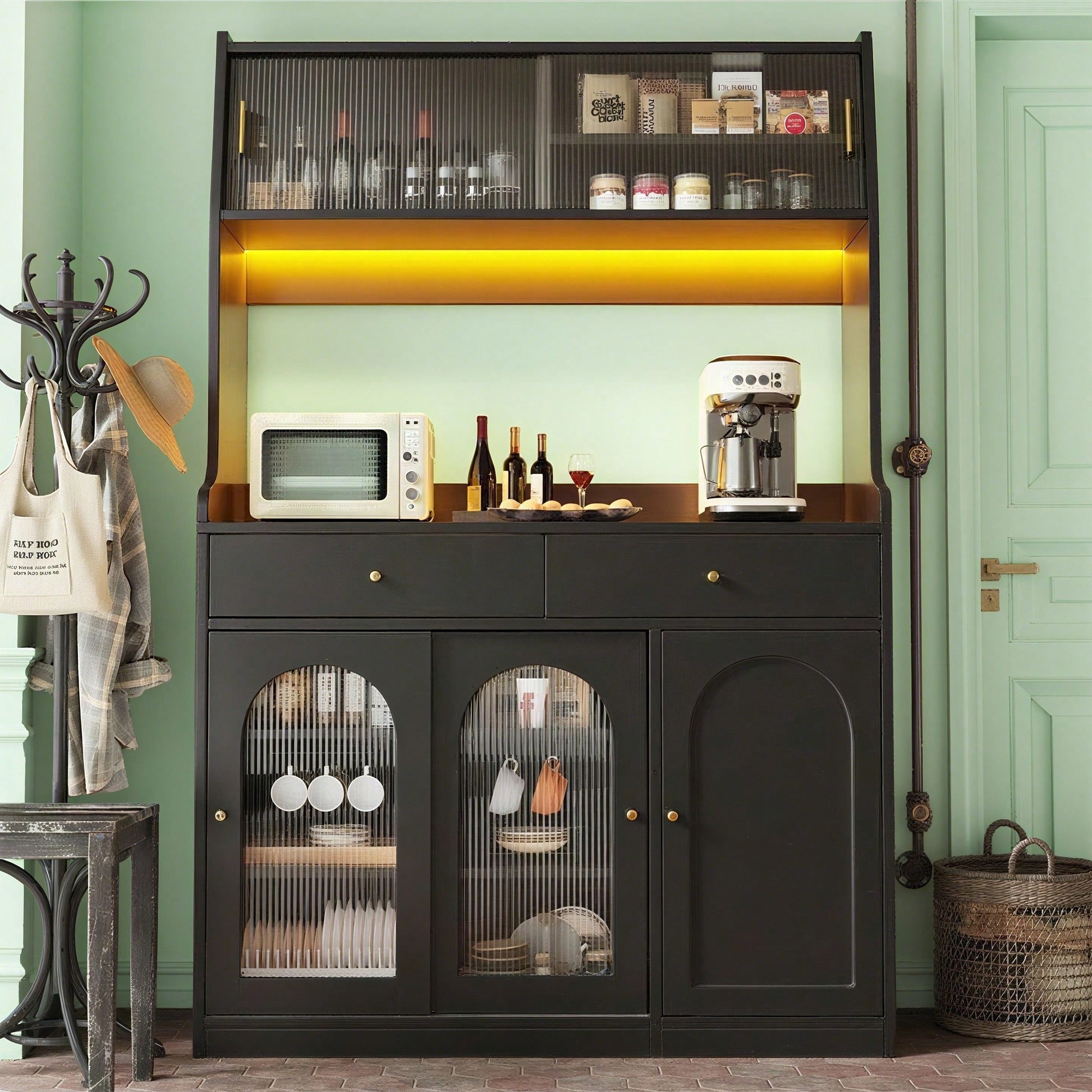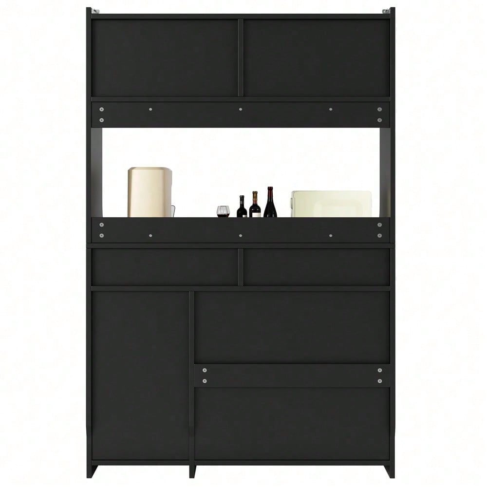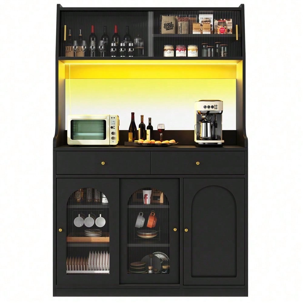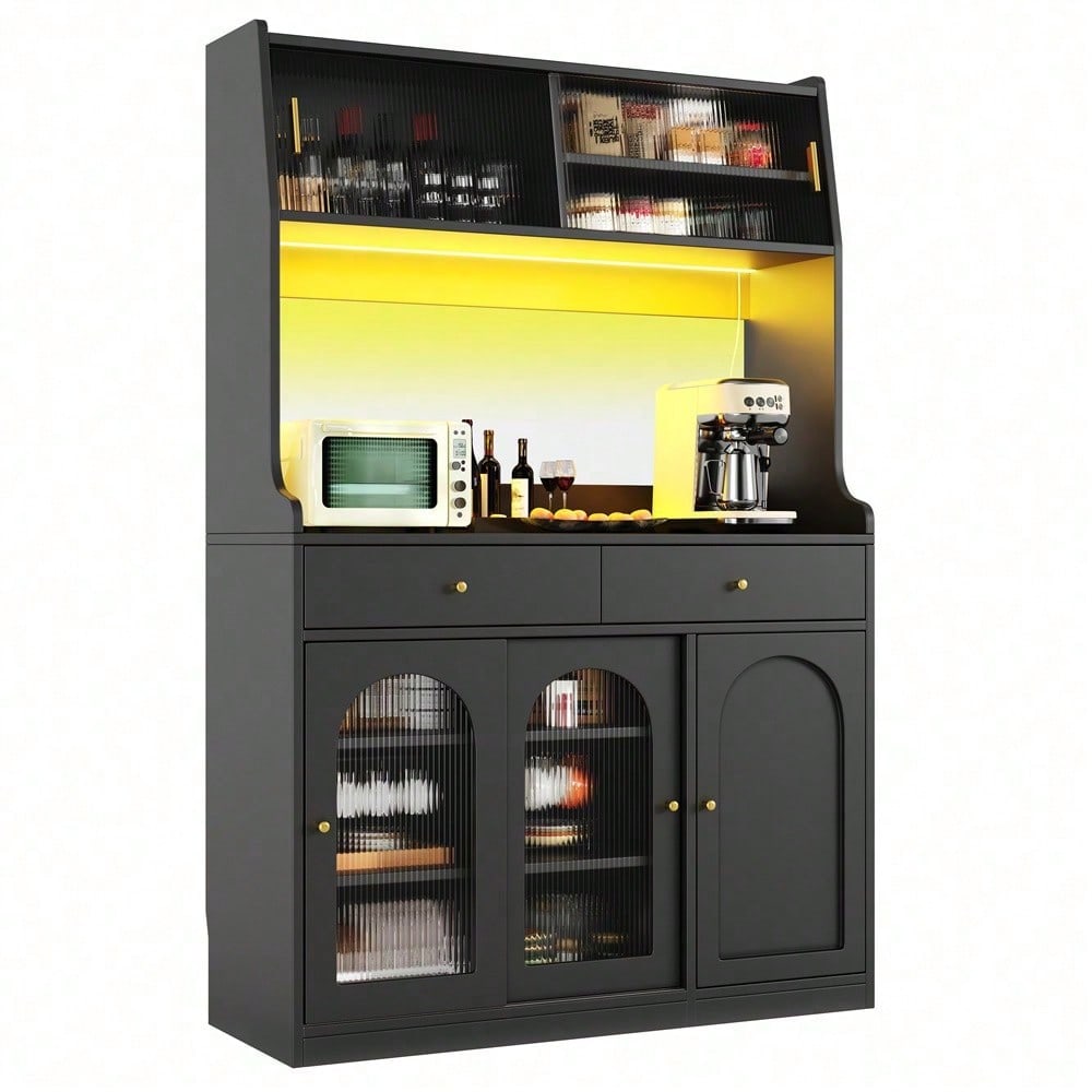 Spécifications Informations produit Code article : N620P2969899091S Type de produit : Article combiné Nom du produit : Armoire de cuisine, armoire haute, vitrine, buffet avec étagères réglables, armoire de salle à manger avec 2 tiroirs, buffet avec éclairage LED, couleurs d'éclairage variables, noir Couleur principale : Noir Matériau principal : MDF, panneau de particules Dimensions du produit Longueur assemblée (cm) : 120,00 Largeur assemblée (cm) : 40,00 Hauteur assemblée (cm) : 180,00 Poids du produit (kg) : 66,00 Dimensions du colis Sous-article 1 : N620P296991S Quantité par colis : 1 89,99 * 46,48 * 19,48 cm 23,05 kg Sous-article 2 : N620P296990S Quantité par colis : 1 132,99 * 47,98 x 15,98 cm, 24,65 kg Sous-article 3 : N620P296989S Quantité par paquet : 1 132,99 x 47,98 x 12,5 cm, 24,3 kg Caractéristiques du produit 1. Design raffiné et matériaux de haute qualité : Fabriqué en panneaux MDF et PB de haute qualité, avec d'élégantes portes coulissantes en verre et des poignées en aluminium, ses détails soignés s'intègrent parfaitement aux espaces de vie modernes. 2. Contrôle multifonction de l'éclairage LED : Compatible avec une application mobile pour contrôler les lumières LED, vous permettant de changer facilement de couleurs pour créer une ambiance lumineuse et ombragée personnalisée. Scannez et téléchargez l'application fournie pour lire des fichiers musicaux locaux. La lumière peut s'adapter en temps réel à l'intensité et au rythme de la musique, garantissant une synchronisation parfaite entre la lumière et la musique, offrant une expérience audiovisuelle immersive. 3. Espace de rangement pratique : Ce meuble haut est doté de deux tiroirs de grande capacité et d'étagères réglables, vous permettant de ranger confortablement des objets de différentes tailles. Son large plan de travail offre un espace généreux pour les appareils électroménagers, vous permettant de dire adieu au désordre et d'obtenir facilement un rangement bien organisé. 4. Dispositif anti-basculement : Ce meuble haut est doté de dispositifs anti-basculement professionnels qui offrent une double protection grâce à son support mural renforcé, empêchant efficacement le risque de basculement. Il est particulièrement adapté aux familles avec enfants ou animaux domestiques, vous permettant de rester à la maison sans soucis lorsque vous cuisinez. 5. Meuble polyvalent : Ce meuble polyvalent peut être placé dans différentes pièces de la maison, comme le salon, la chambre, la cuisine, le couloir, l'entrée ou le bureau. Il peut servir de buffet, de meuble de rangement, de bibliothèque, de meuble d'entrée ou de plan de travail de cuisine. Description
