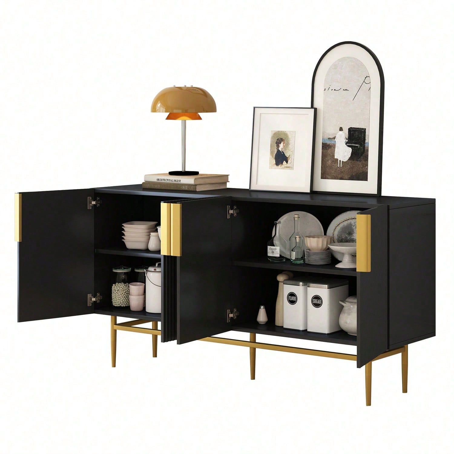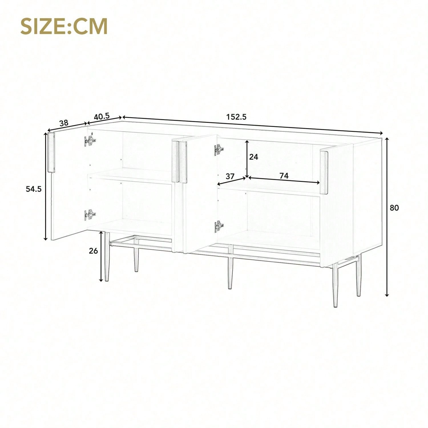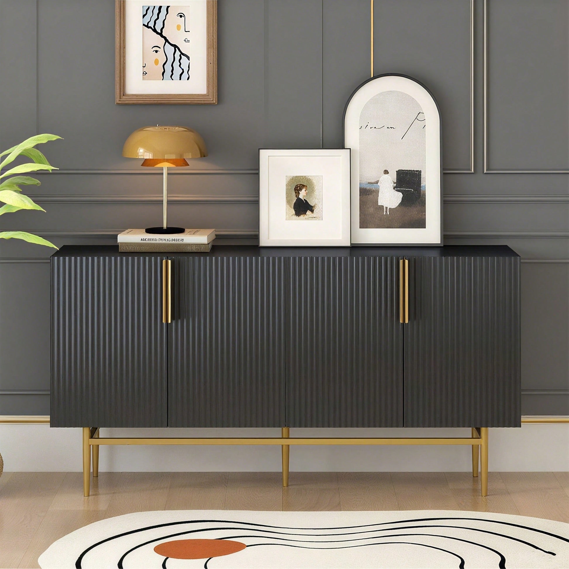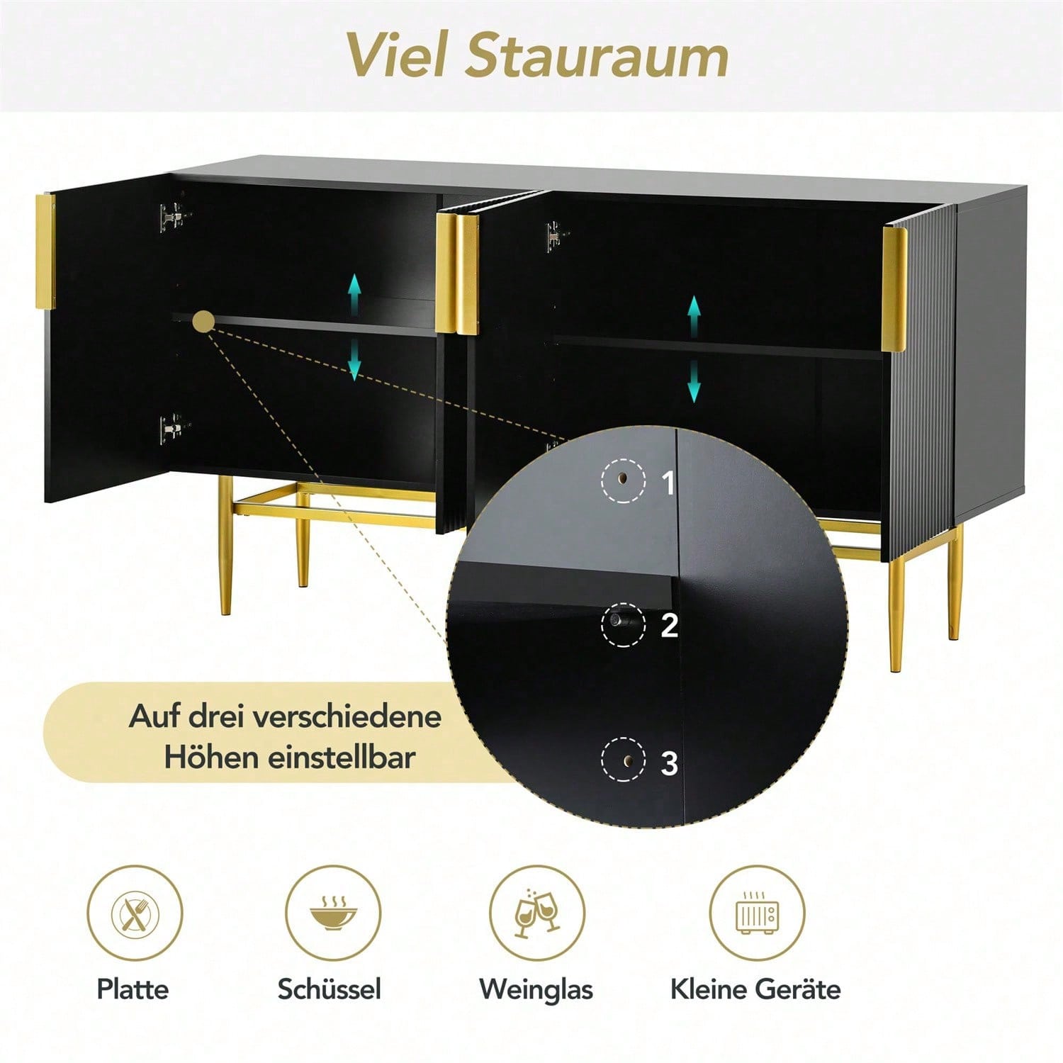Spécifications Informations produit Code article : DE000004AAB Type de produit : Article combiné Nom du produit : Buffet 4 portes moderne et élégant avec poignée en métal doré, meuble buffet pour salle à manger, salon, chambre, couloir (noir) Origine : Chine Couleur principale : Noir Matériau principal : MDF Dimensions du produit Longueur après assemblage (cm) : 152,50 Largeur après assemblage (cm) : 40,50 Hauteur après assemblage (cm) : 80,00 Poids du produit (kg) : 38,70 Dimensions du colis Sous-article 1 : WF319224AAB Quantité : 1 95 x 45,8 x 16,5 cm, 21,3 kg Sous-article 2 : WF319223AAB Quantité : 1 168 x 47 x 10,3 cm, 22,6 kg Caractéristiques du produit Simple et classique : Lignes simples, texture concave et convexe. Ce buffet est simple et élégant. Disponible en deux coloris. Son corps noir et blanc, avec ses poignées et ses pieds dorés, est harmonieux et parfait, sans pour autant perdre son charme classique. Il s'intègre parfaitement dans le salon, la cuisine ou la chambre, apportant une atmosphère chaleureuse et romantique à votre intérieur. Matériaux de haute qualité : Le corps du buffet est en panneaux de particules et le plateau est en MDF de haute qualité, offrant une bonne capacité de charge. Pour une surface plus lisse, les portes, le plateau et les panneaux latéraux sont peints. Les autres panneaux sont recouverts d'autocollants. Les pieds en métal robustes assurent un bon maintien et une bonne stabilité. Un savoir-faire exquis et une esthétique élégante complètent ce buffet. Vaste espace de rangement : Ce buffet à quatre portes offre un vaste espace de rangement. De plus, les étagères intérieures sont réglables sur trois hauteurs différentes, que vous pouvez ajuster ou retirer selon vos besoins. Ce buffet peut accueillir des assiettes, des bols, des verres à vin ou du petit électroménager de différentes tailles. Il répond parfaitement à vos besoins de rangement, maintient l'ordre et rend votre maison plus ordonnée. Fabrication de qualité supérieure : la porte du buffet présente des rayures ondulées, et les lignes géométriques irrégulières renforcent l'effet tridimensionnel. Les poignées et les pieds en métal ajoutent texture et élégance à ce buffet. Sa surface lisse facilite son nettoyage. Essuyez simplement les taches avec un chiffon humide pour prolonger sa durée de vie. Assemblage complet requis. Le produit est livré avec un manuel d'installation détaillé. Suivez les instructions étape par étape sans vous tromper. Comptez une heure pour terminer le buffet.