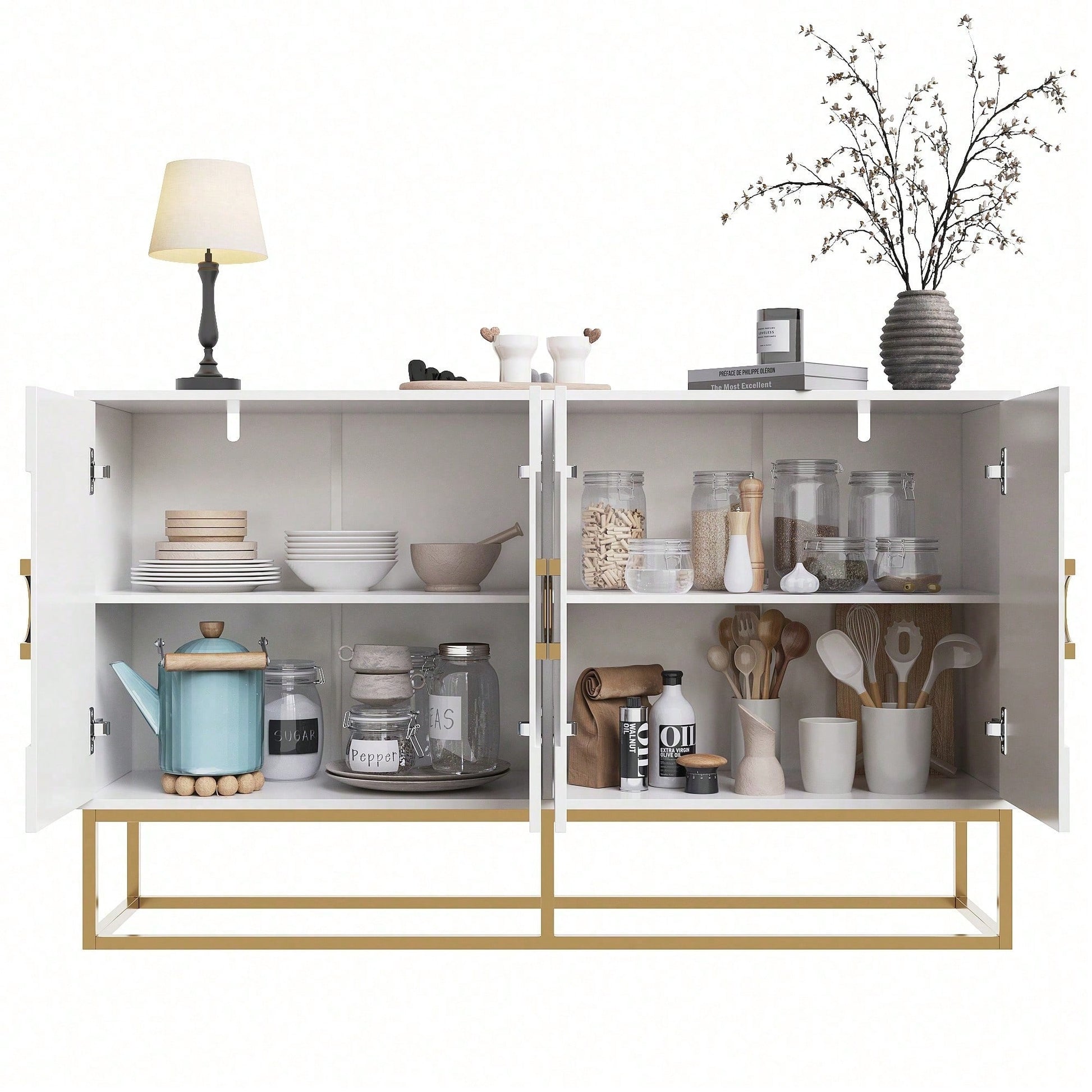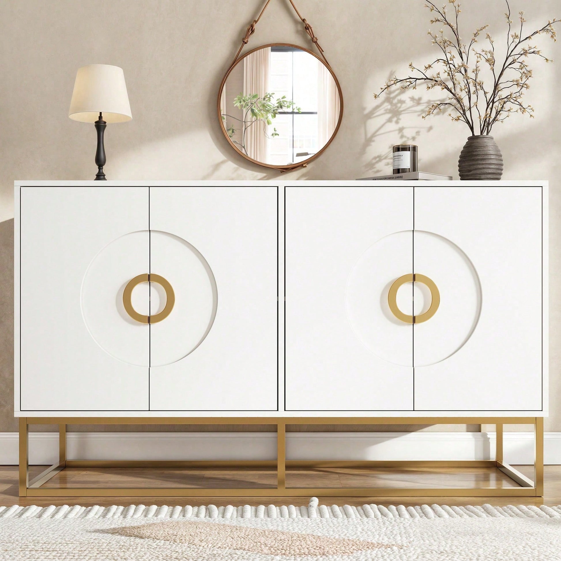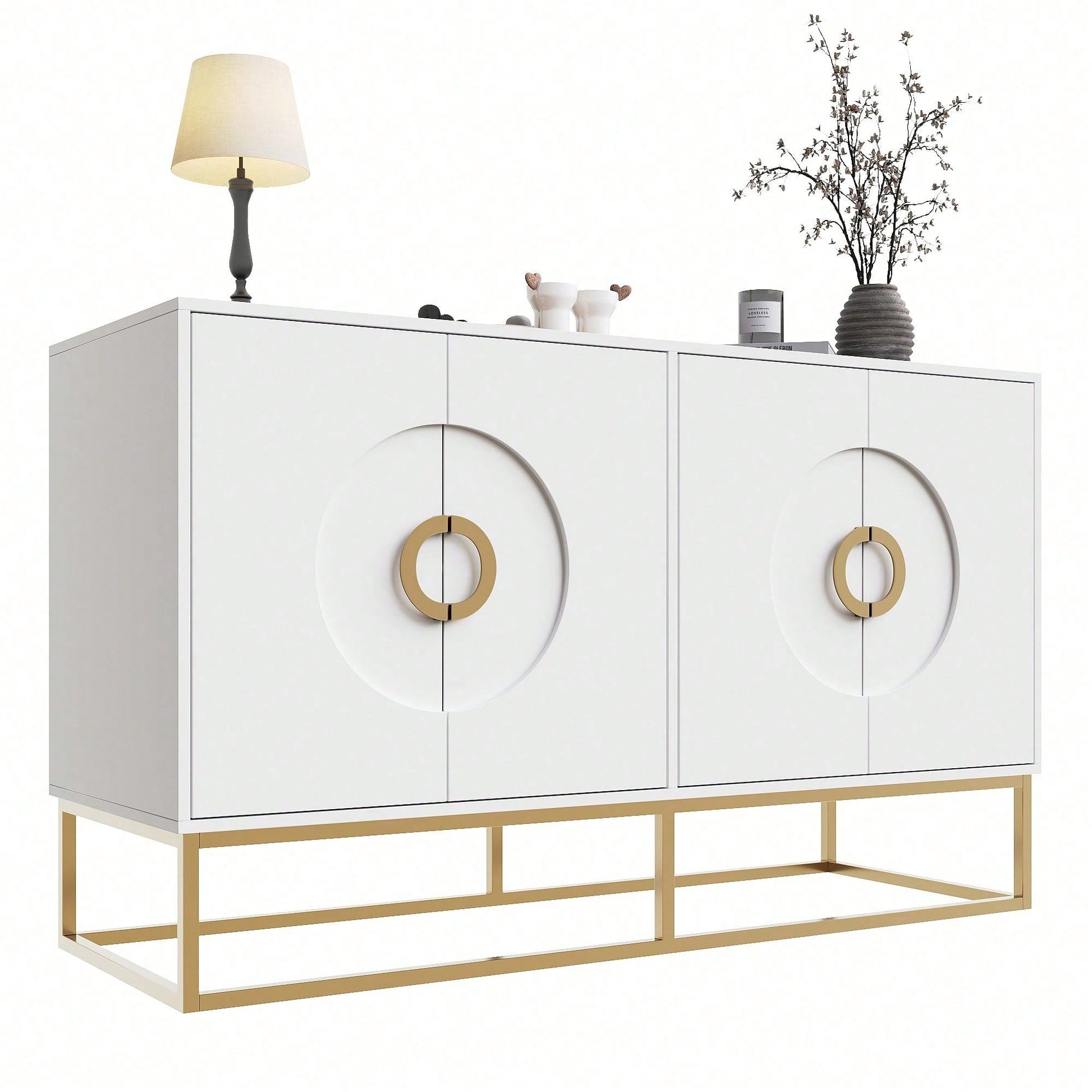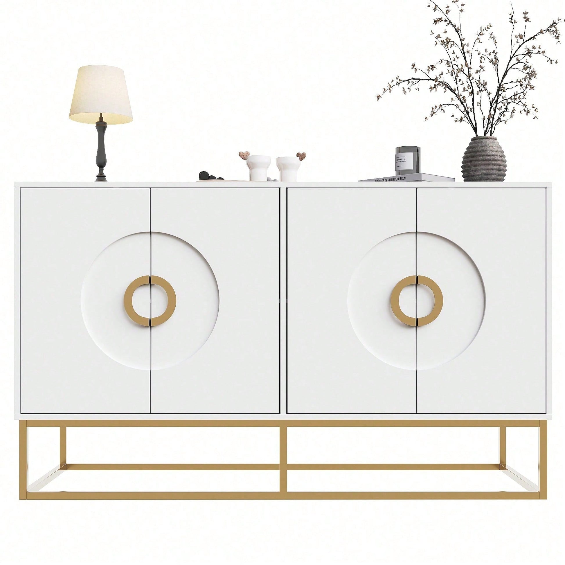 Aufbewahrungsschrank, einzigartiges Design, Schranktürdesign, freistehender Schrank, Minimalistisches Sideboard,Rundzugring Schranktür,weiß