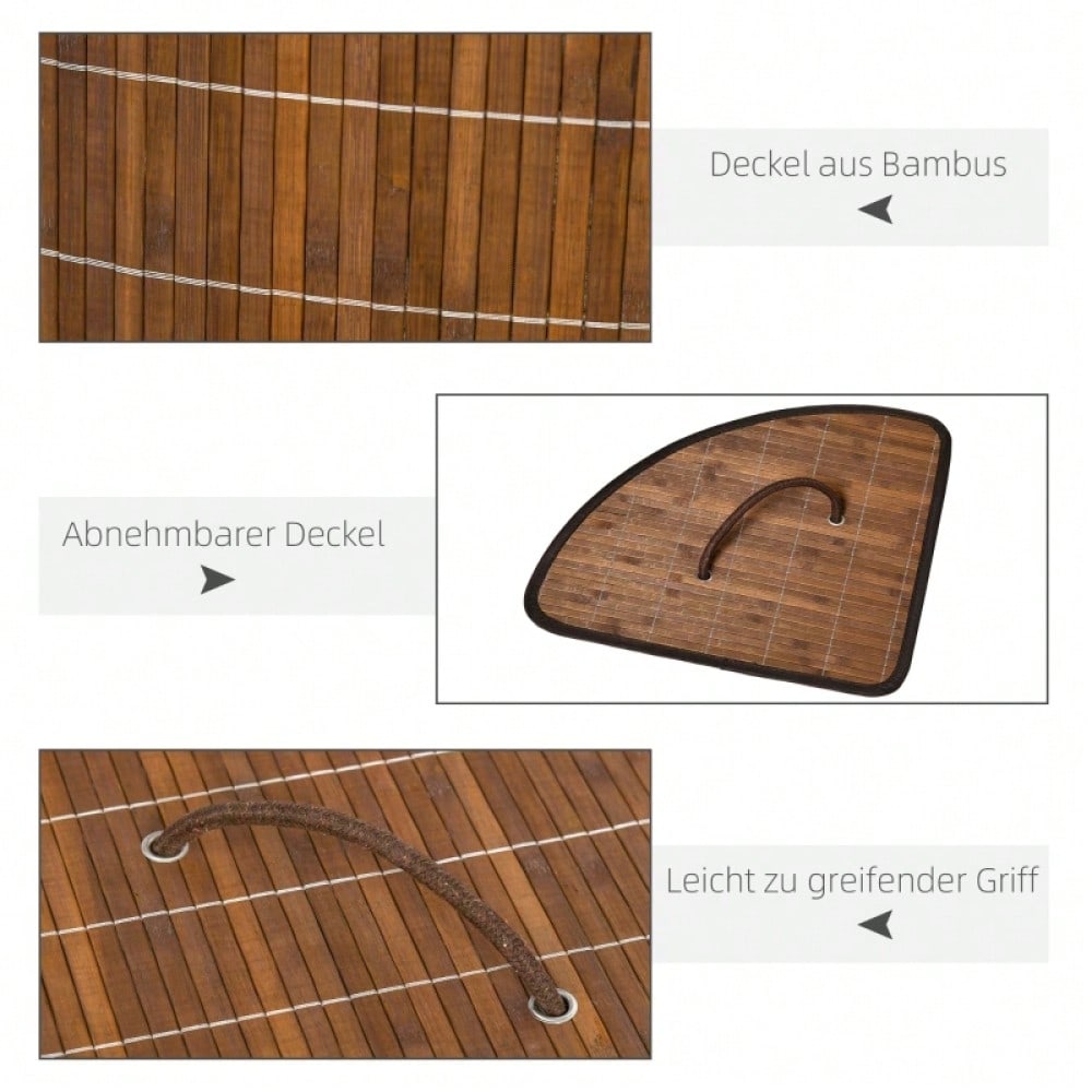Bambus Wäschekorb 55-Liter mit abnehmbarem Deckel, platzsparend 38x38x57 cm, braun - von HOMCOM