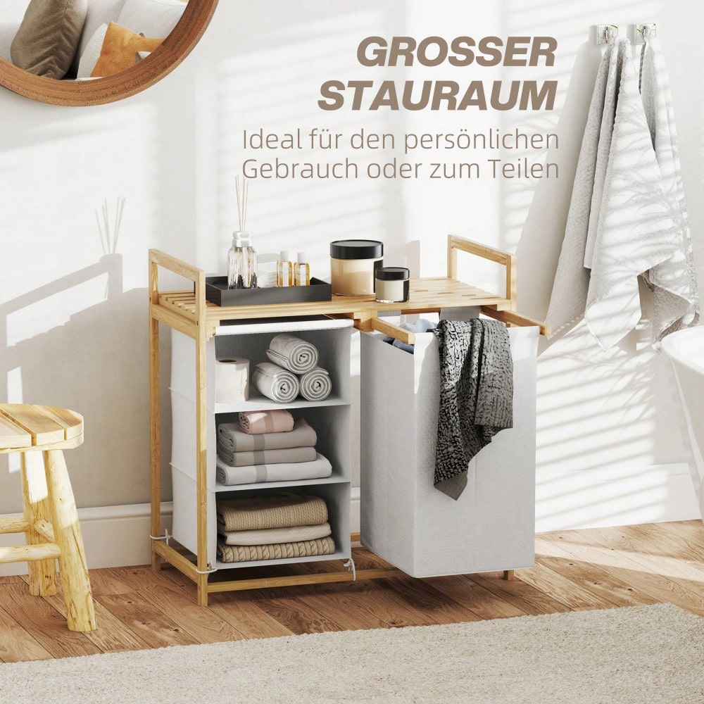 Bambus Wäschekorb 83-Liter mit 4 Fächern & 2 abnehmbaren Vliesbeuteln, Wäschesortierer mit Griff 70x36x70 cm, weiß - von HOMCOM