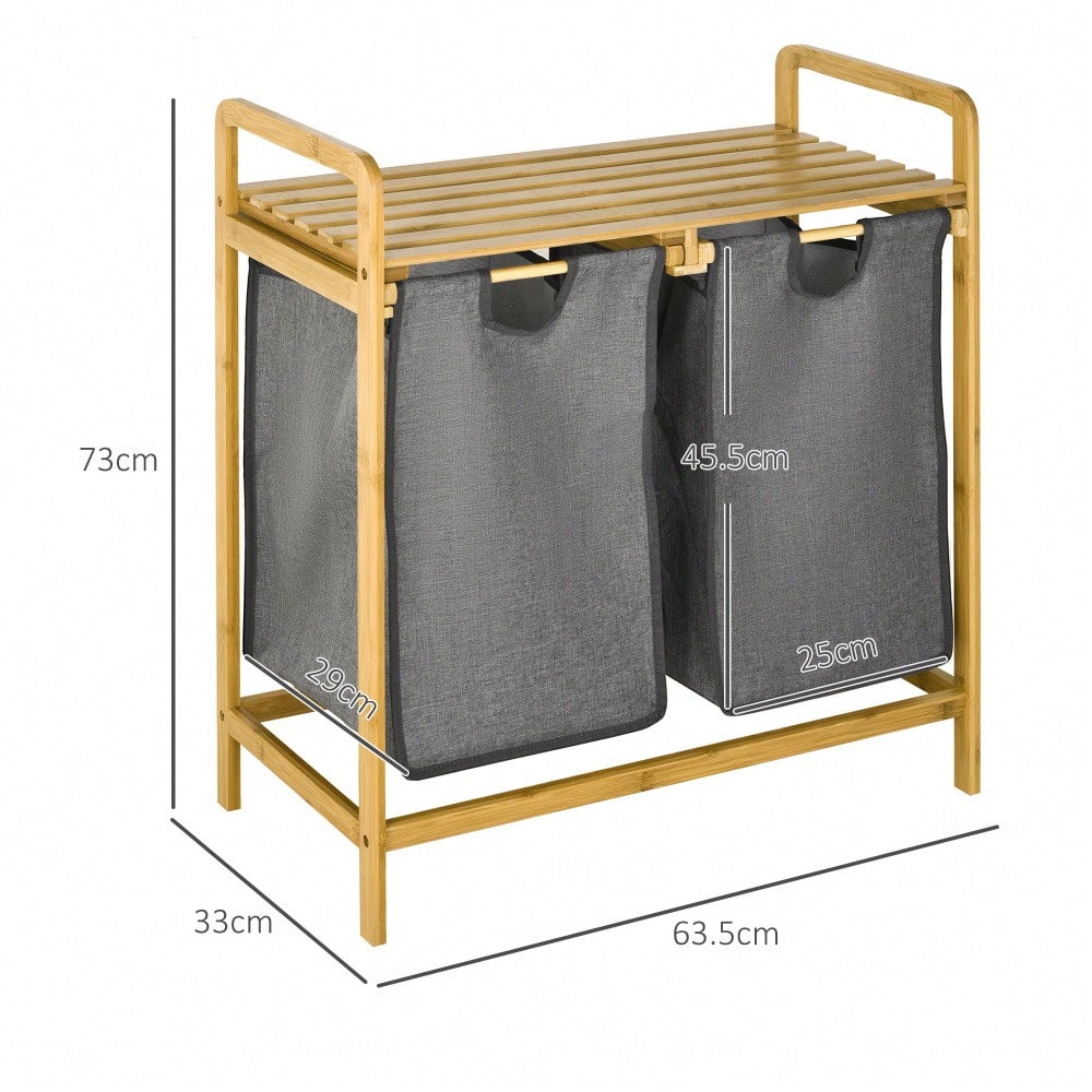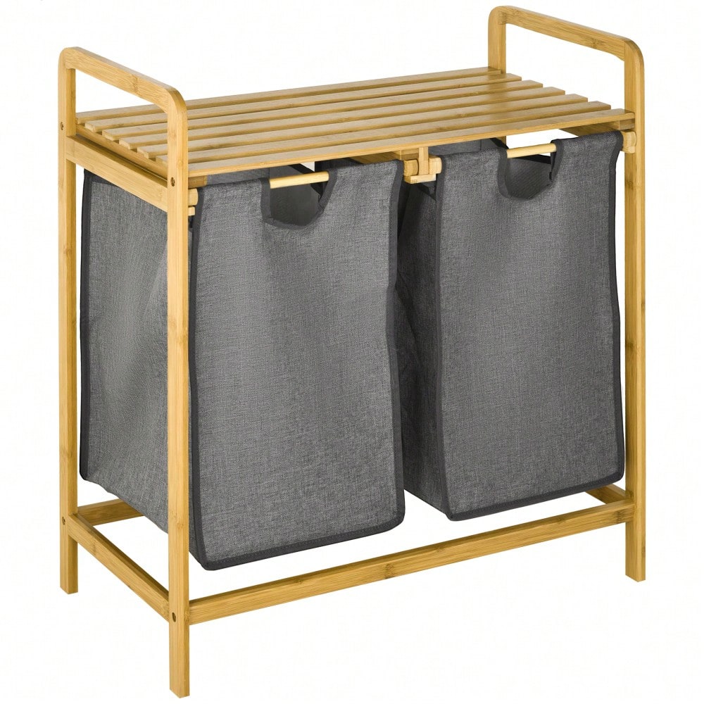Bambus Wäschekorb mit 2 abnehmbaren Wäschesäcken & Plattform, für Badezimmer, grau/natur - von HOMCOM