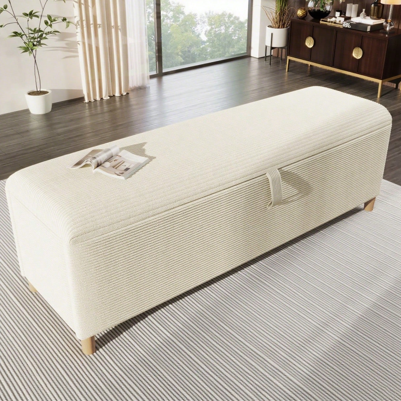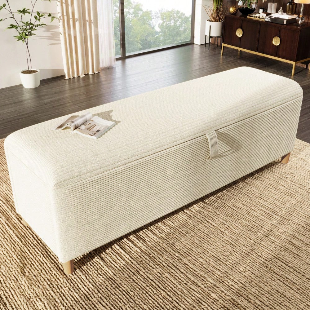 Bettbank mit Stauraum, 165 x 38 cm Bettbank, Polsterbank mit Hydraulischem Stauraum, Aufbewahrungsbox, Geeignet für Schlafzimmer, Wohnzimmer und Flur, Beiger Cord-Optik.