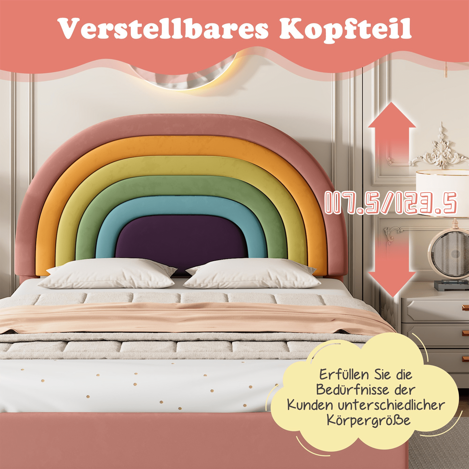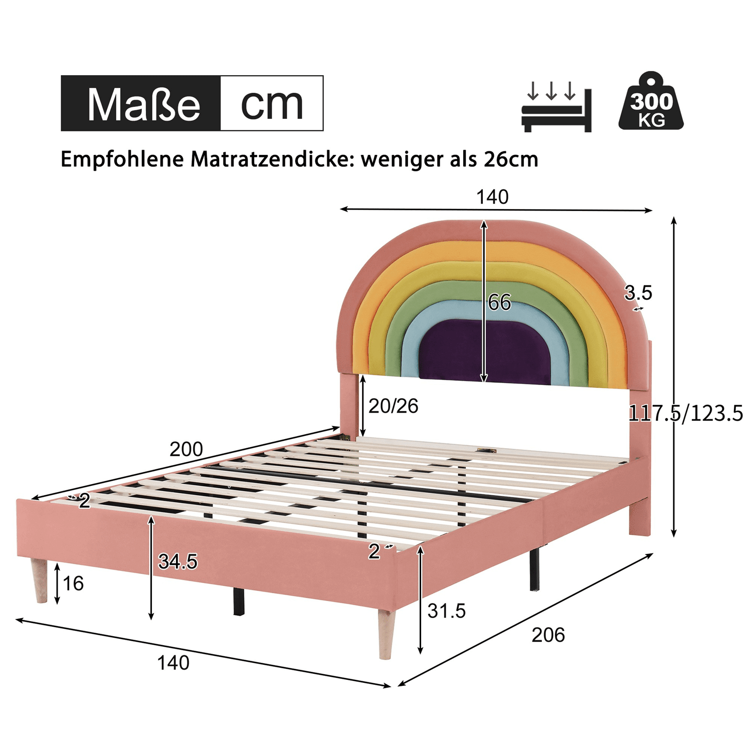 Matériau de haute qualité : Le lit est en velours. Ce velours doux pour la peau offre une sensation de confort douillet. Le tissu en velours a une texture fine, est doux, extensible et non irritant. Dossier confortable : La tête de lit rembourrée crée une atmosphère chaleureuse et accueillante. La tête de lit haute et épaisse est idéale pour s'y adosser pour lire ou regarder la télévision. Tête de lit réglable en hauteur : La tête de lit de ce produit est réglable en hauteur de 6 cm, ce qui la rend adaptée à toutes les morphologies. La large tête de lit apporte douceur et confort, idéale pour s'y adosser. Soutien optimal : Le lit est doté d'un sommier à lattes en bois robuste pour un sommeil réparateur et sain. Les pieds stables de 16 cm de haut offrent un meilleur soutien et une bonne circulation de l'air sous le lit. Montage facile grâce à des instructions claires : L'installation est facile grâce à des instructions claires. En cas de problème, veuillez contacter notre service client ; nous vous fournirons la meilleure solution dans les plus brefs délais. Description Détails du produit Remarque : Dimensions : Toutes les mesures sont approximatives. Dimensions hors tout : 140 x 206 x 117,5/123,5 (l x L x H) Matelas compatible (matelas non inclus) : 140 x 200 cm Poids du produit : 34,1 kg Nombre de sommiers à lattes : 12 Matériau : Velours Capacité de charge : 300 kg Épaisseur du matelas : 20-26 cm Assemblage requis : 25 minutes Contenu : Cadre de lit, vis et outils nécessaires, instructions de montage Matelas inclus : Non Nombre de colis : 2 Assemblage requis : Oui