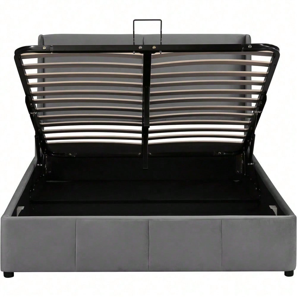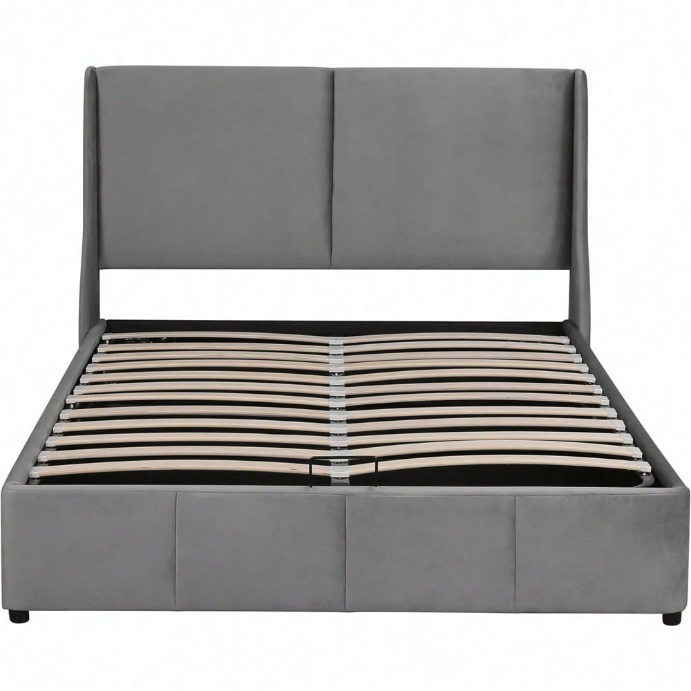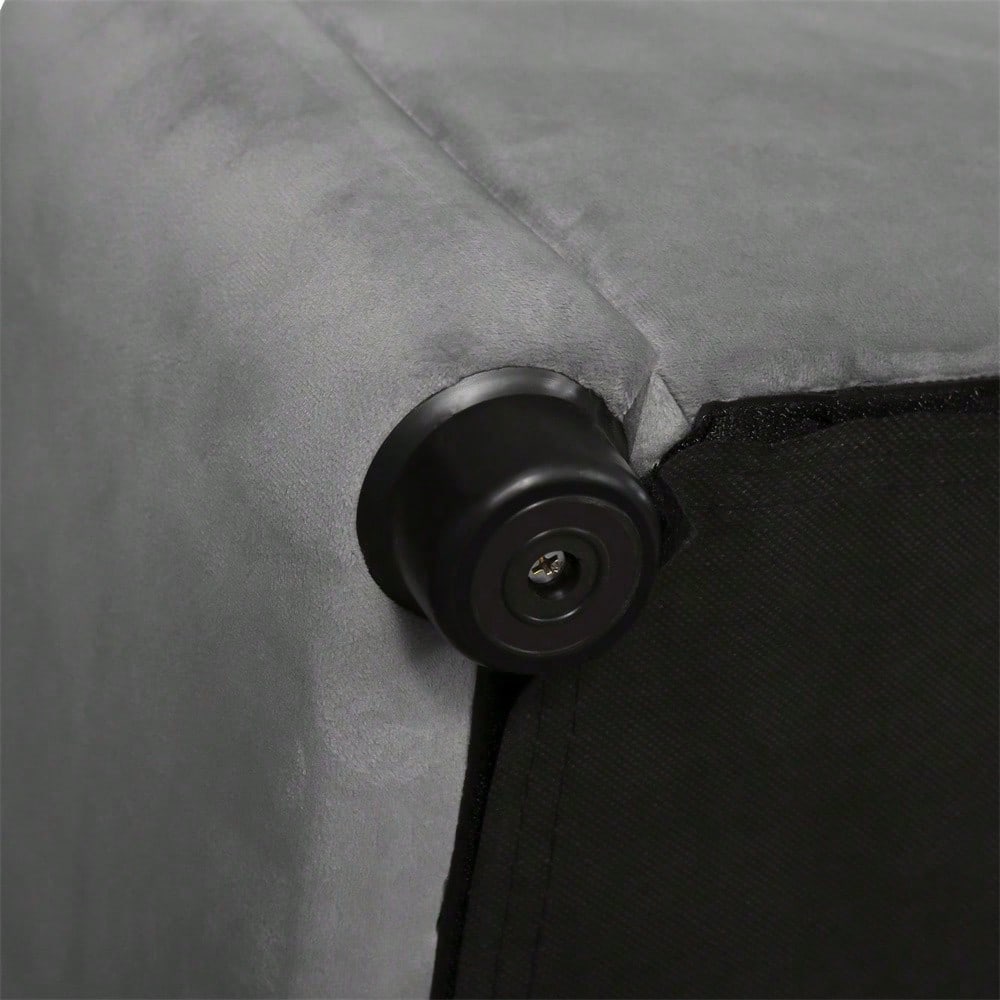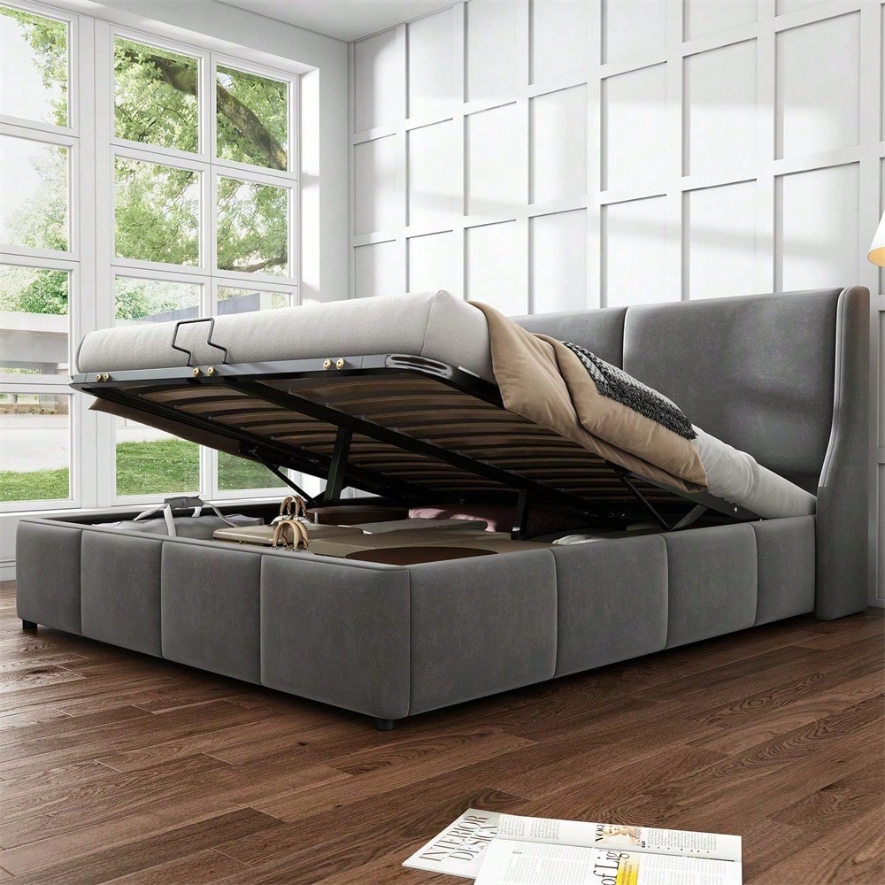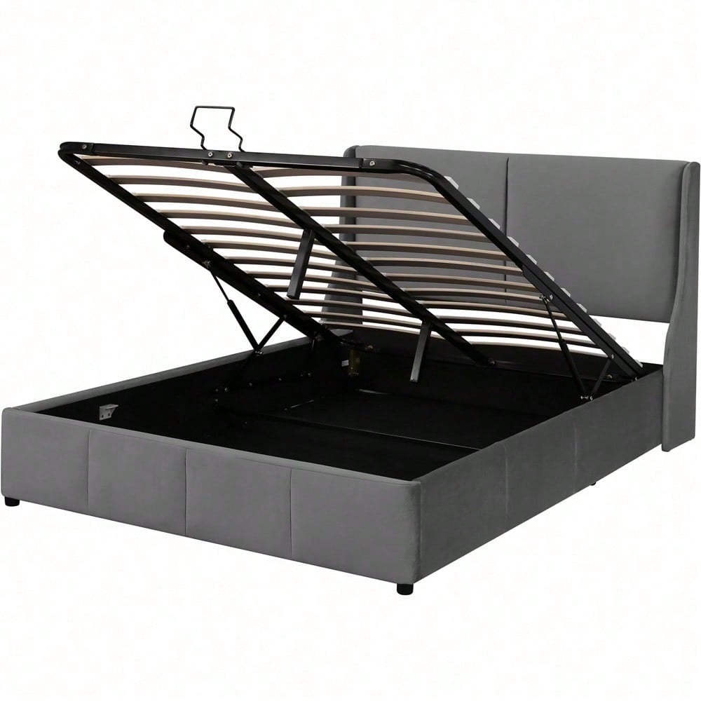 Caractéristiques du produit Sommeil confortable : Élégant lit rembourré au design épuré et doté d'une surface de couchage de 140 x 200 cm pour un sommeil réparateur, il est idéal pour votre chambre ou votre chambre d'amis. Espace de rangement : Des leviers hydrauliques sous le matelas permettent d'ouvrir le matelas pour ranger facilement vêtements et autres objets. Optimiser le rangement permet de garder une chambre propre et bien rangée, améliorant ainsi votre confort. Agréable au toucher : Le lit est recouvert de velours doux, doux et confortable, très agréable au toucher. Facile à installer : Le cadre de lit avec sommier à lattes est facile à assembler grâce à la notice de montage fournie. Le cadre de lit et le sommier à lattes enroulable sont inclus. Description Spécifications Type : Sommier à lattes. Un sommier à lattes est inclus. Détails Espaces de rangement Espace de rangement sous le lit Largeur du lit : 140 cm Longueur du lit : 200 cm Poids : 47 kg Largeur : 147 cm Longueur : 209 cm Largeur de la tête de lit : 147 cm Hauteur de la tête de lit : 100,5 cm Hauteur du chevet : 29 cm Remarque : Dimensions : Toutes les dimensions sont approximatives. Charge maximale : 300 kg Housse : Velours Couleur : Gris Matelas non inclus Livré démonté, en 2 colis (Ce produit sera livré en 2 colis. Ils pourraient ne pas arriver simultanément. Merci de patienter.)