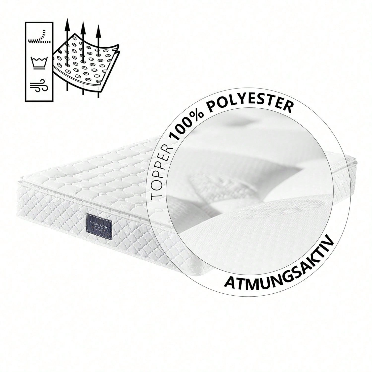 891314AAN Lit rembourré 140 x 200 Dimensions hors tout : 225 x 148 x 104-110 cm (L x l x H) Couche : 140 x 200 cm Poids net/brut : 58/60 kg Matériau des panneaux : bois massif + lin + métal Tiroirs : 75 x 14 x 50 (L x H x P) Charge max. Poids utilisateur maximal 220 kg/485 lbs WF280398AAA 140x200 Détails du produit Largeur 140 cm Longueur 200 cm Hauteur 25 cm Structure du noyau : Matelas en mousse froide 7 zones Nombre de zones de couchage : 7 Niveau de confort : H3 Poids corporel jusqu'à 200 kg Nombre de ressorts : 620 pièces Position de couchage : Sur le ventre, sur le côté ou sur le dos Informations allergènes : Convient aux personnes allergiques à la poussière Contrôle de la température : Excellente ventilation Caractéristiques du matelas : Peut être utilisé comme matelas réversible Caractéristiques de la housse du matelas : 100 % polyester (200 g/m²) Matériau de garnissage : Housse : Double tissu 100 % polyester Noyau : Ressorts ensachés + mousse ondulée Conseils d'entretien / Nombre de pièces : 1 pièce Livré enroulé