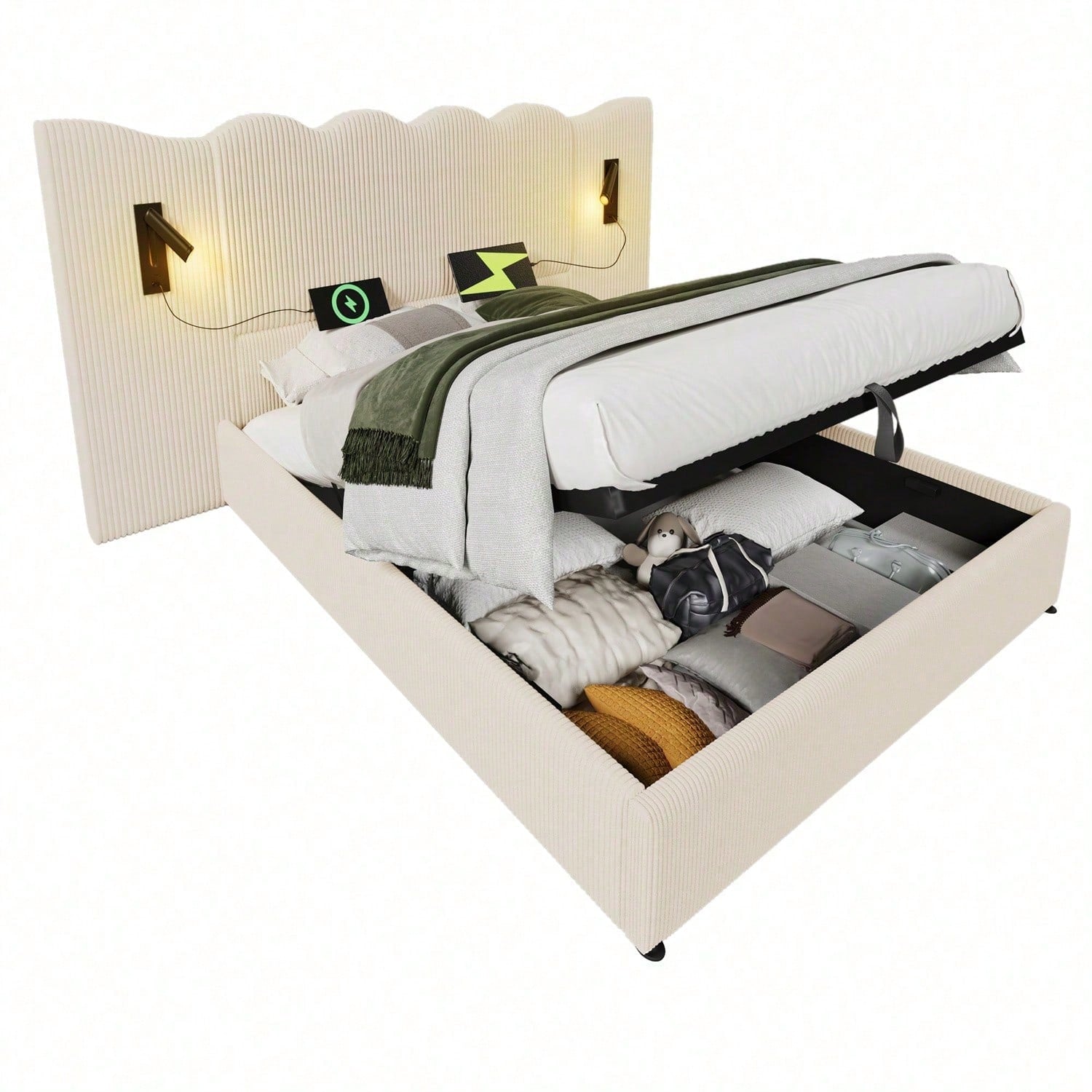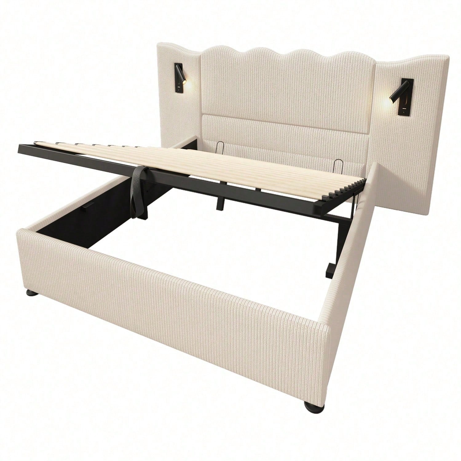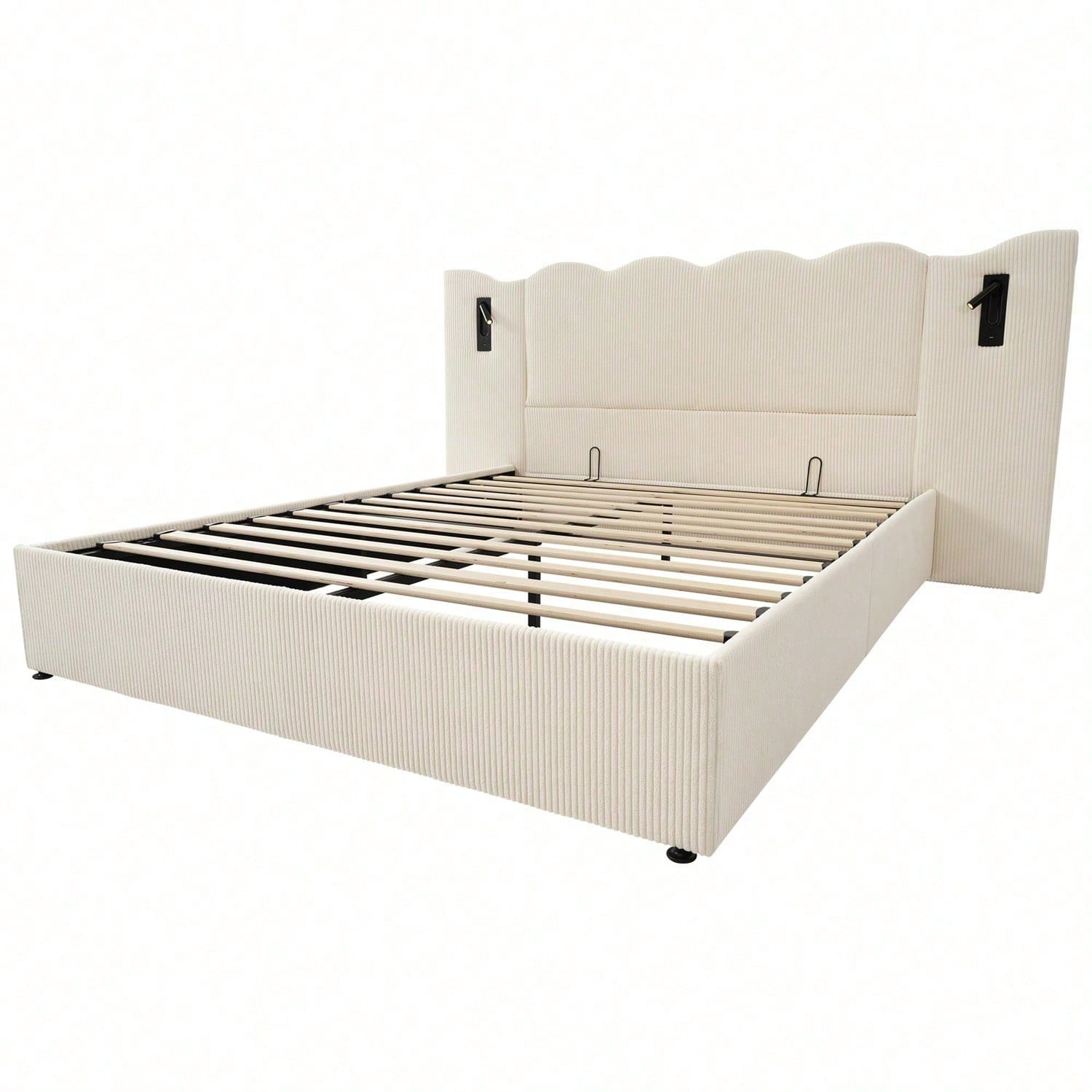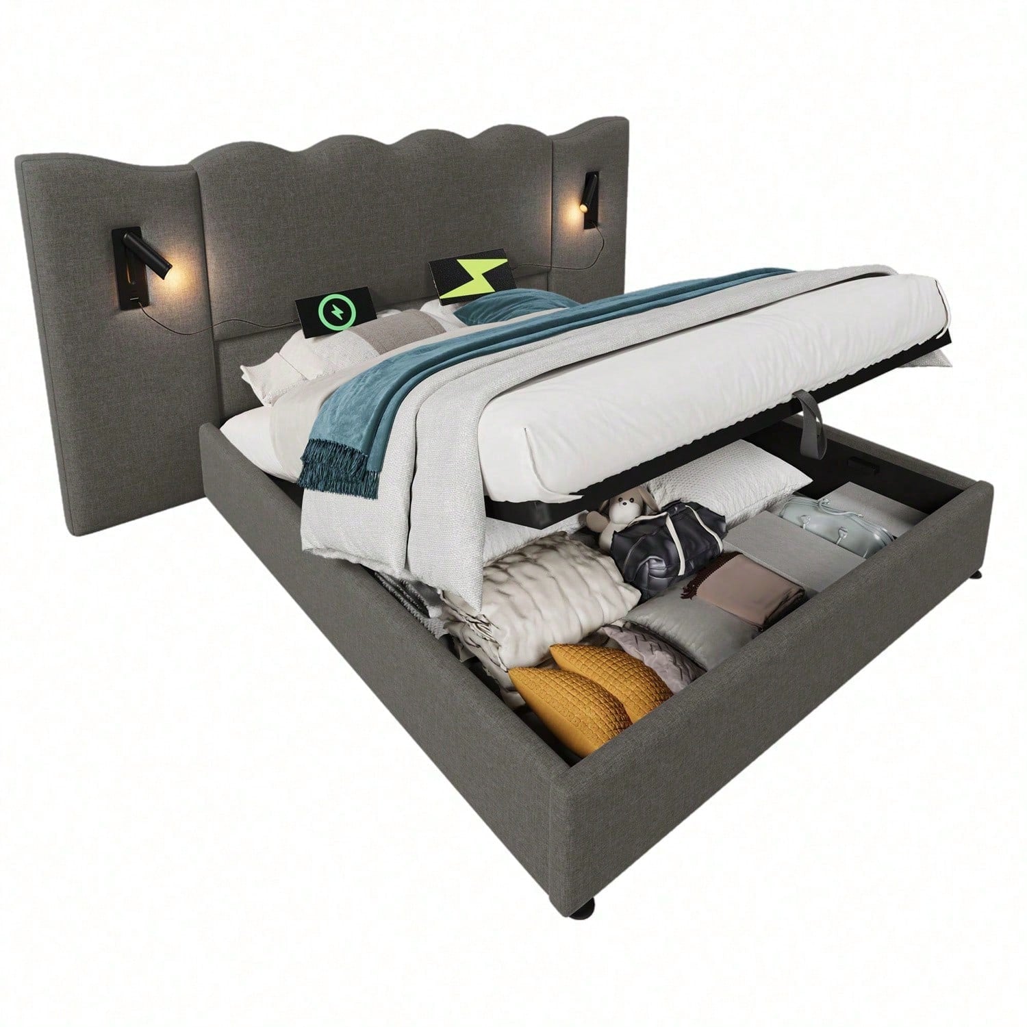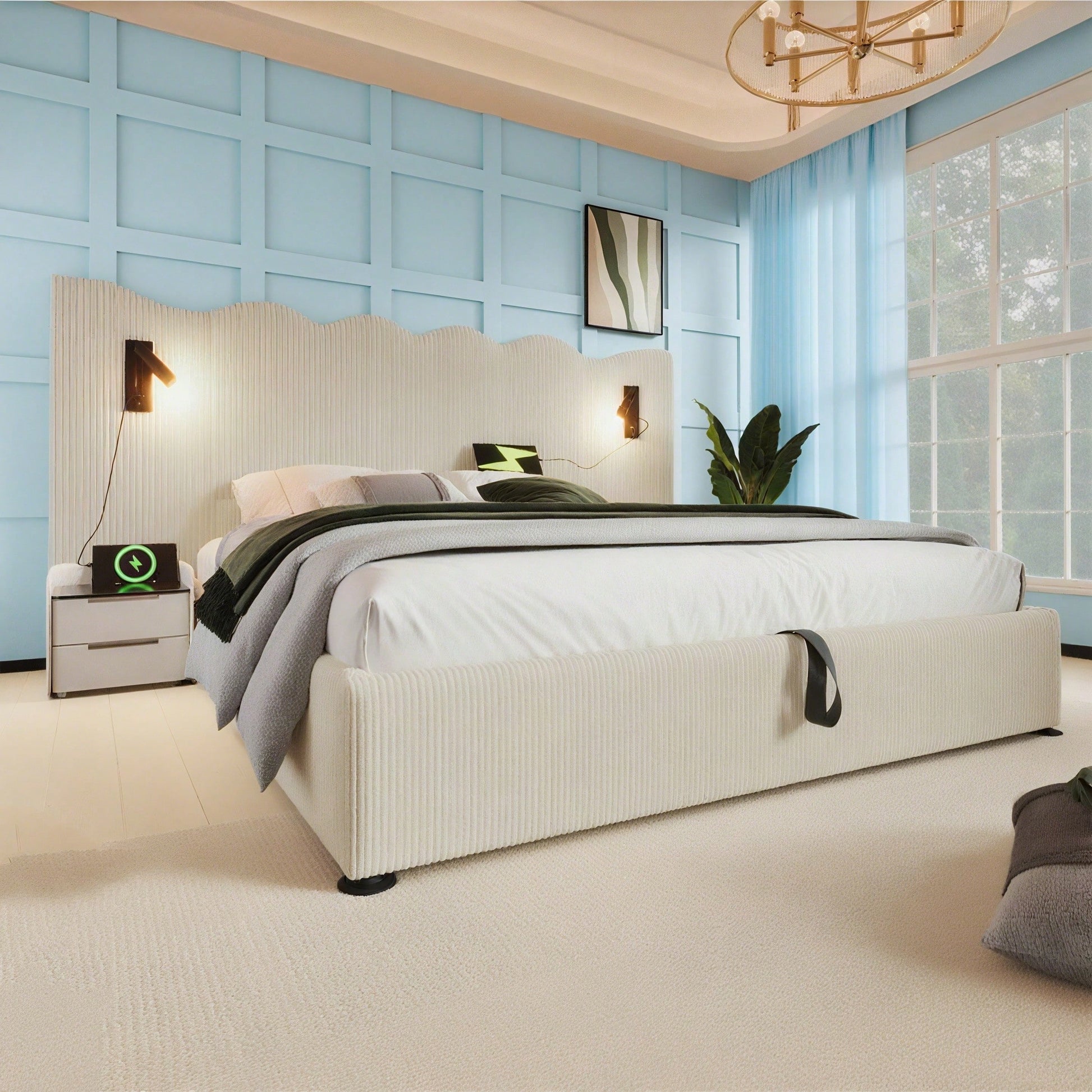 Le matelas est composé de 720 ressorts et de deux couches de mousse, à la fois moelleuses, offrant soutien et confort. Nous utilisons des textiles non toxiques, testés selon la norme Oeko-Tex Standard 100, sûrs et hypoallergéniques ! Tête de lit en lin et forme ondulée : Son motif ondulé, élégant et moderne, crée une ambiance élégante et sublime n'importe quelle chambre. Le lin sélectionné allie respirabilité et durabilité, pour un confort optimal et une expérience de sommeil agréable. Liseuse rotative : La tête de lit est équipée d'une liseuse pratique, pivotante à 360 degrés. Aucun interrupteur n'est nécessaire : il suffit de la soulever pour l'allumer et de la baisser pour l'éteindre. Fonction de charge USB-C : La liseuse est équipée de ports USB et Type-C modernes, permettant de recharger facilement et efficacement divers appareils. Smartphone, tablette ou autres appareils électroniques : grâce à ces ports, vous disposez toujours d'une solution de charge pratique à proximité de votre lit. Lit coffre hydraulique : Le cadre de lit est équipé de vérins hydrauliques de haute qualité et d'une sangle au pied pour une montée et une descente faciles. Le grand espace de rangement sous le lit offre un espace généreux pour ranger couvertures, oreillers et autres objets, optimisant ainsi l'espace disponible. Un espace d'environ 33 cm près de la tête de lit peut accueillir une table de chevet, offrant un espace de rangement supplémentaire et des fonctions pratiques. Structure stable : Le cadre de lit est composé d'une structure métallique et de lattes en bois massif. Le sommier est équipé de pieds de support métalliques, ce qui renforce sa stabilité. La conception encastrée et les lattes métalliques empêchent le matelas de glisser, garantissant une utilisation stable et confortable. Remarque : En raison des différences d'éclairage ambiant, la couleur réelle peut différer de l'image. Afin de réduire les risques de dommages, le cadre de lit est expédié en quatre colis et peut arriver à des dates différentes. Si les quatre colis arrivent mais que des articles sont manquants, veuillez contacter le service client. Description AB30747890G:N616P227478G/N616P227479G/N616P227480G Dimensions hors tout : 232 x 215 x 111 cm (l x L x H) Matériau du panneau : Métal + Lin + Bois massif Couleur : Gris Capacité max. Poids de l'utilisateur : 200 kg/440 lb Sommier requis : Non Assemblage requis : Oui Chargement : USB Type 2 + Type C Contenu : Cadre de lit + chargeur + lampe de lecture Matelas compatible (matelas non inclus) : 160 x 200 cm Poids brut/net (kg) : 63,4/55,5 Quantité : 3 WF307675AAA Matelas à ressorts 160 x 200 cm Dimensions hors tout : 160 x 200 x 25 cm (l x L x H) Construction : Matelas en mousse froide 7 zones Nombre de zones de couchage : 7 Niveau de confort : H3 Poids corporel jusqu'à 200 kg Nombre de ressorts : 720 pièces Position de couchage : sur le ventre, sur le côté ou sur le dos Informations allergènes : Convient aux personnes allergiques à la poussière Climatisation : Excellente ventilation Caractéristiques du matelas : Réversible Matelas Caractéristiques de la housse : 100 % polyester (200 g/m²) Garnissage : Housse : Tissu double, 100 % polyester Âme : Ressorts ensachés + mousse ondulée Conseils d'entretien / Nombre de ressorts : 1 pièce Livré enroulé