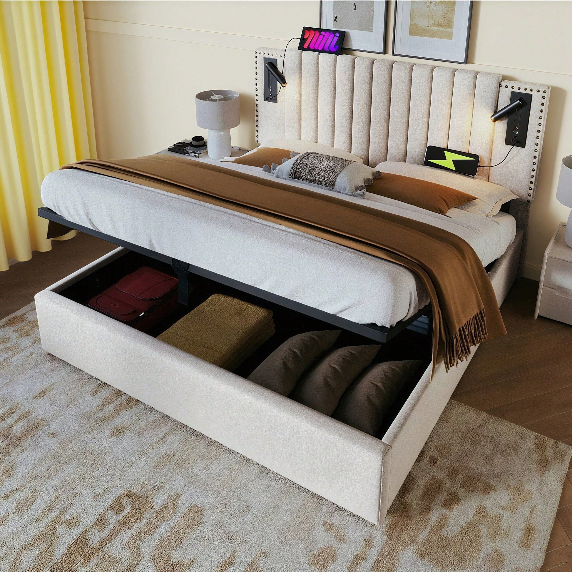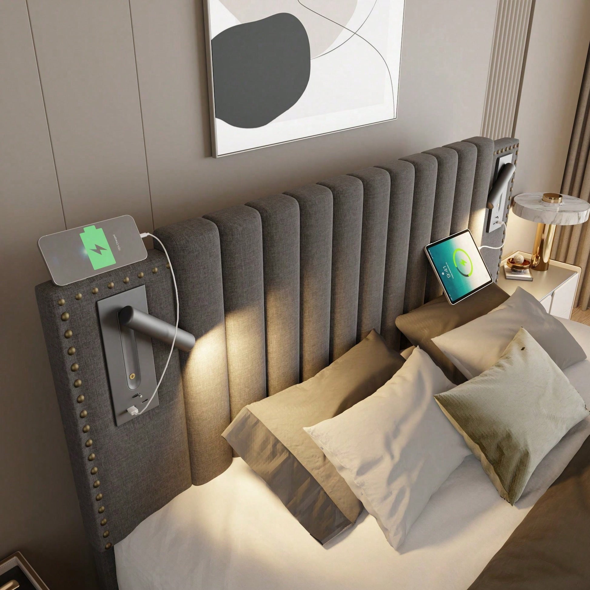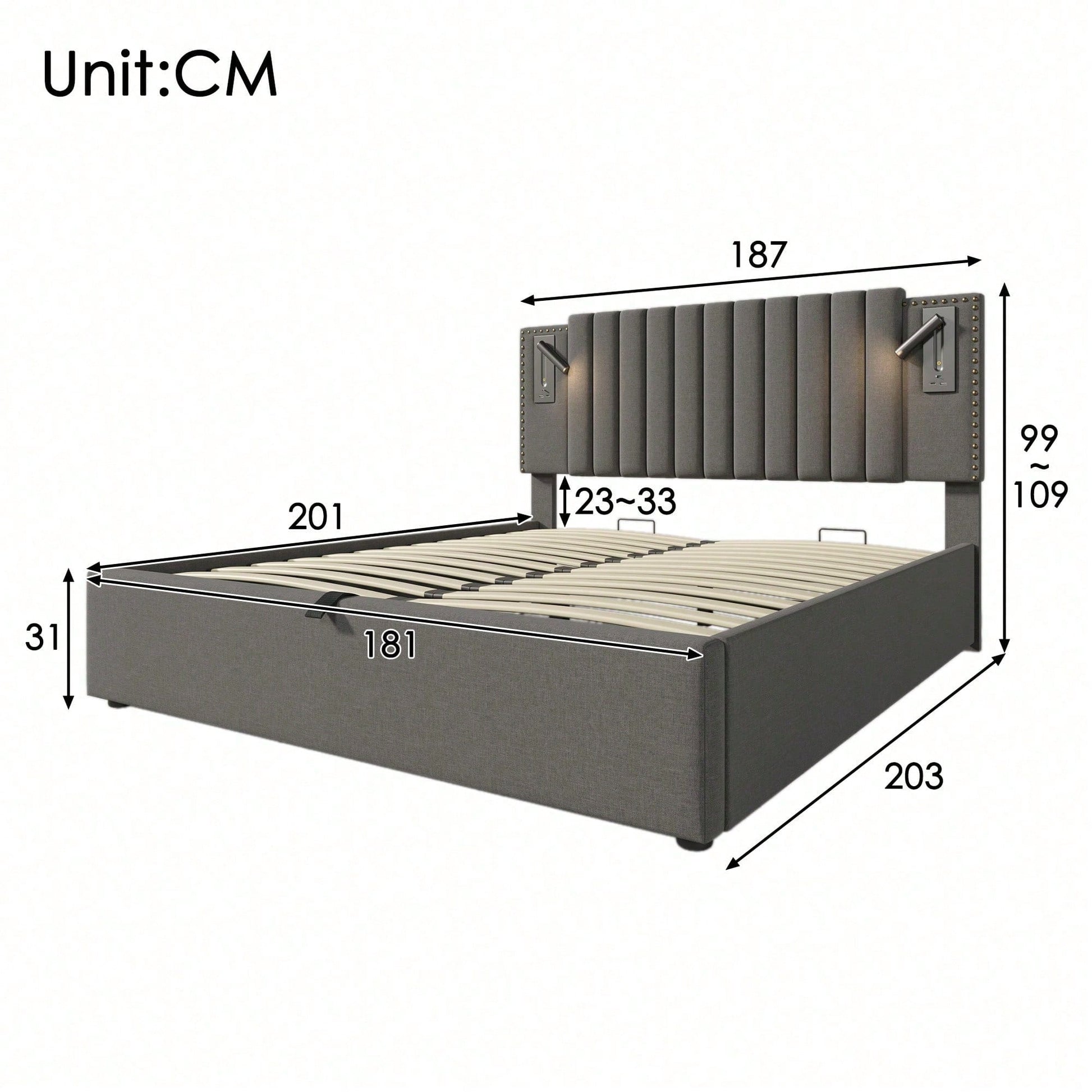 Tête de lit réglable à rivets : Design vintage avec rivets mats et tissu texturé en coton et lin gris/beige. Le cadre de lit présente un design simple et épuré, à la fois simple et sophistiqué. La tête de lit est réglable en hauteur et s'adapte à des matelas d'épaisseurs variées, s'adaptant ainsi à tous les styles de décoration ! LAMPE DE LECTURE FACILE ET CHARGEMENT USB : La lampe de chevet est positionnée avec précision pour offrir une lumière agréable sans déranger votre partenaire. Un interrupteur à bascule vous permet de projeter la lumière exactement là où vous en avez besoin pour une lecture silencieuse et confortable. De plus, le lit est équipé de deux ports de charge USB Type-C, vous évitant ainsi toute panne de courant ! Système de soutien robuste : Le cadre de lit est fabriqué en acier de haute qualité avec des pieds renforcés qui empêchent la structure de se tordre. Sa capacité de charge est de 300 kg. La surface peinte la rend résistante à la déformation et à la rouille. Le cadre en acier de haute qualité avec des lattes élastiques de haute qualité offre un soutien dorsal et un sommeil confortable. Le lit est équipé de deux butées pour empêcher le matelas de glisser. Rangement sous le lit : Le sommier à lattes pliable est doté d'un grand coffre de rangement en dessous, offrant un espace de rangement généreux pour les couvertures, les oreillers ou les vêtements hors saison. Le sommier à lattes se plie facilement grâce à un vérin de levage. La bande de tissu à l'extrémité du lit se soulève facilement pour ouvrir le rangement, et le sommier est sécurisé avec un tissu Oxford pour empêcher la poussière de pénétrer. Montage facile : Toutes les pièces sont étiquetées. Toutes les pièces, outils et instructions sont inclus. La lampe de lecture est pré-assemblée pour faciliter le montage et peut être installée facilement par deux personnes. Pour réduire les risques de dommages, le sommier est expédié dans deux cartons et peut arriver à des dates différentes. Si vous avez reçu deux colis mais qu'il manque des pièces, veuillez contacter le service client. Multicolore et multi-tailles : Ce lit est disponible en beige et gris, en coton et lin. Ce matériau est adapté à toutes les saisons, doux pour la peau et absorbant la transpiration, pour un sommeil confortable. Chaque couleur est disponible en trois tailles : 140 x 200 cm, 160 x 200 cm et 180 x 200 cm. Options disponibles Description AB20149192B 180 x 200 cm WF531491AAB WF531492AAB Dimensions hors tout : 187 x 203 x 96,5-106 cm (l x L x H) Matériau du panneau : Coton Couleur : Beige Poids maximal de l'utilisateur : 300 kg Distance de la tête de lit : 23-33 cm Types de charge : 2 USB + 2 Type C Sommier requis : Non Assemblage requis : Oui Contenu : Cadre de lit + fonction de charge + lampe de lecture Matelas compatible (matelas non inclus) : 180 x 200 cm Quantité : 2 Poids brut/net (kg) : 51,11/45,8