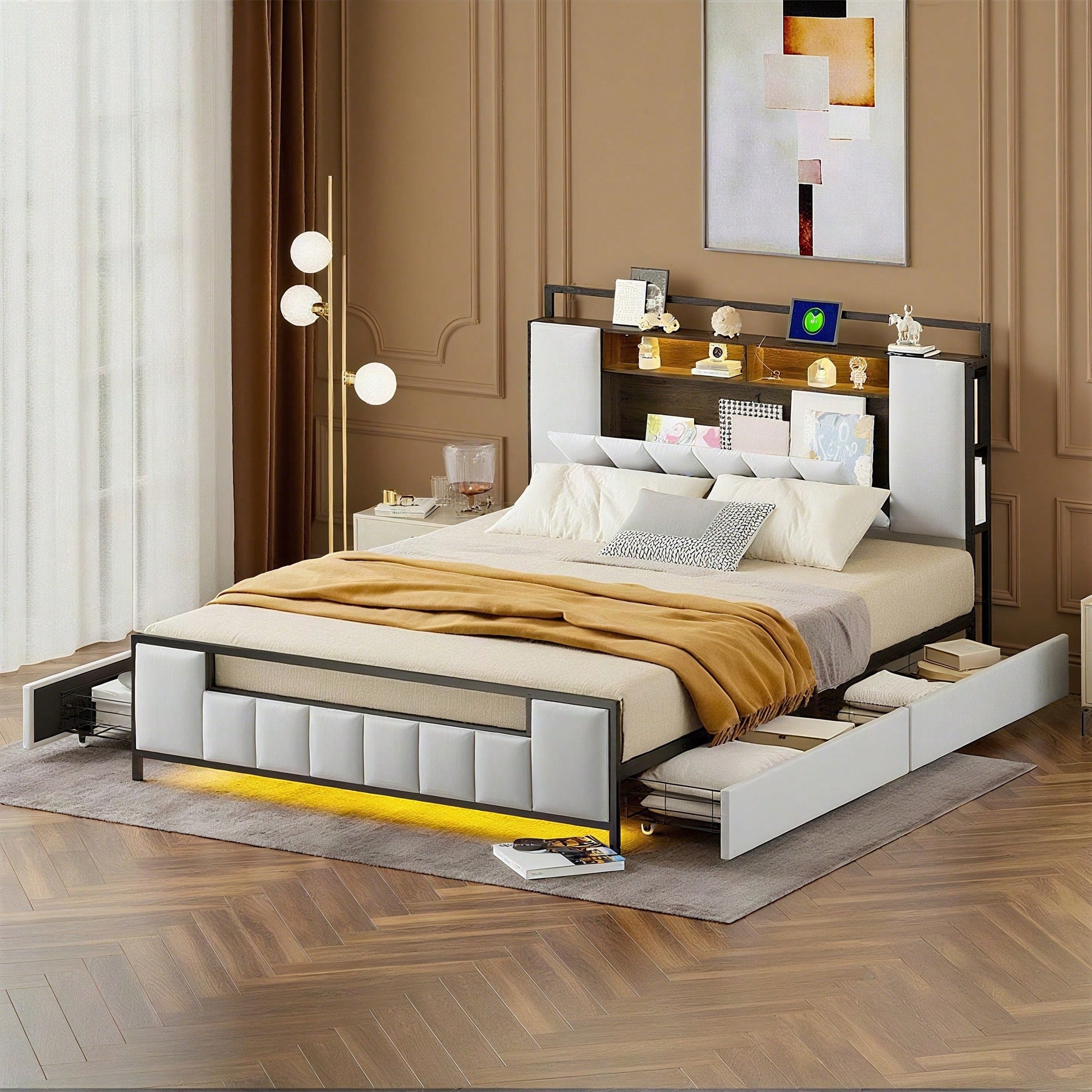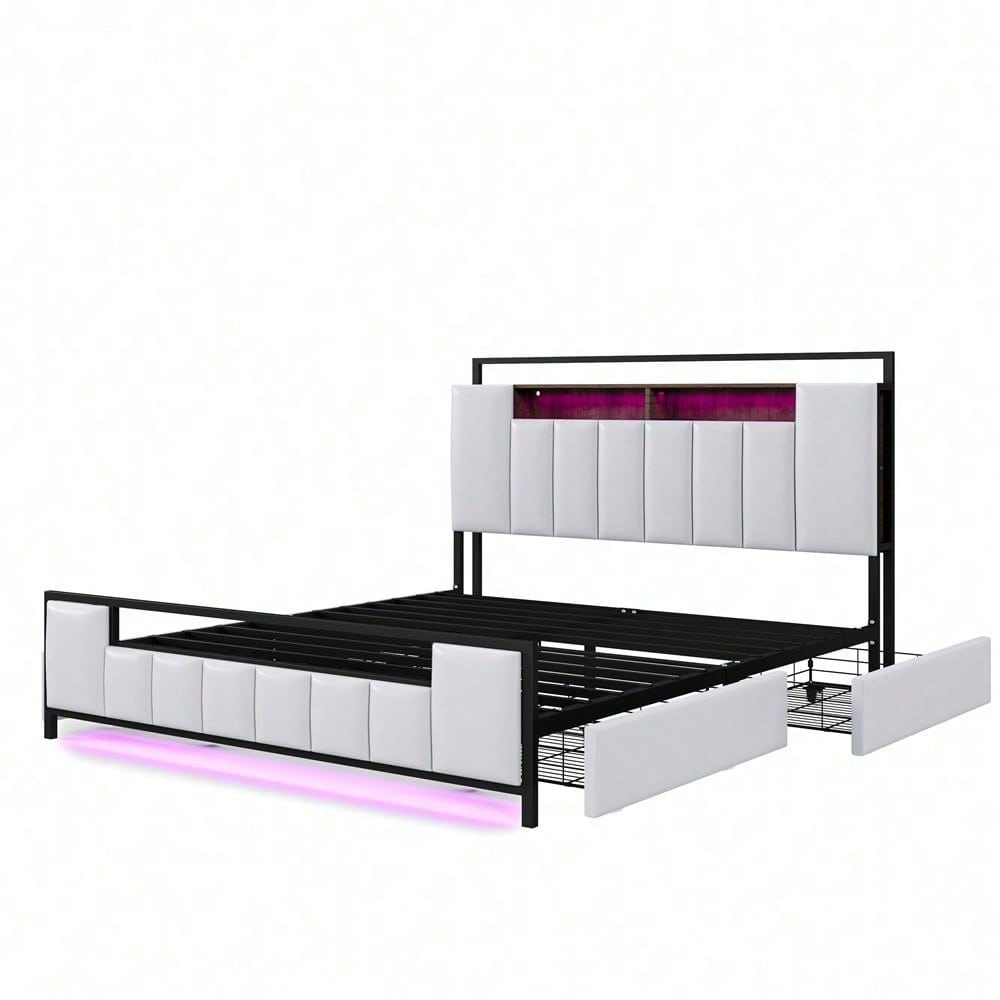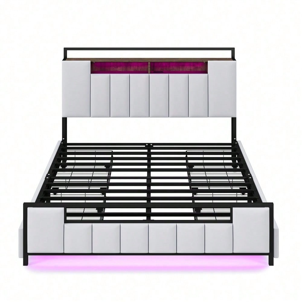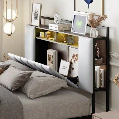 Découvrez l'alliance parfaite du style et de la fonctionnalité avec notre lit capitonné polyvalent. Doté de LED en tête et en pied de lit, ce lit crée un espace de sommeil moderne et confortable. Grâce au port USB pratique situé sur la tête de lit, vous pouvez facilement recharger vos appareils pendant votre sommeil. La tête de lit est dotée d'un compartiment de rangement interne pour garder vos essentiels organisés et à portée de main. Le cadre de lit entièrement en fer assure une grande capacité de charge et une grande durabilité. Disponible en blanc et gris, le lit est doté d'un revêtement en similicuir qui s'harmonise avec tous les styles de chambre. Conçu pour le confort et la praticité, ce lit crée un environnement de sommeil paisible et organisé. Poids et dimensions : Dimensions totales du produit : 219 x 160 x 119,5 cm Dimensions détaillées du produit : Veuillez vous référer à l'image des tailles Nombre de colis : 3 Poids total du produit : 67 kg Capacité de charge : 300 g Épaisseur de matelas recommandée : 22-25 cm Caractéristiques : Type de produit : Lit modulable Dimensions : 160 x 200 cm Couleur : Blanc/Gris Matériau du produit : Similicuir + Métal + Contreplaqué + MDF Niveau d'assemblage : Assemblage complet requis/Assemblage partiel Poids total du colis : 74,5 kg Nombre de lattes : 12 Temps de montage estimé : 2 heures Nombre de personnes recommandé : 2 Outils supplémentaires requis : Tous les outils sont inclus/Tournevis Éviter l'utilisation d'outils électriques : Oui
