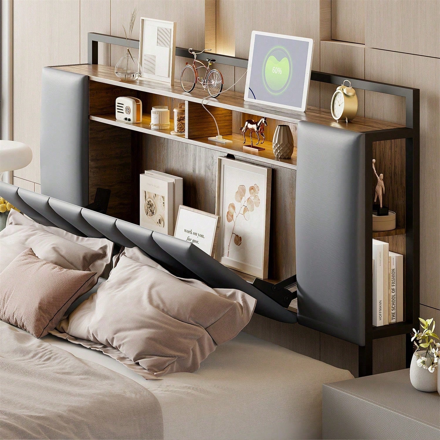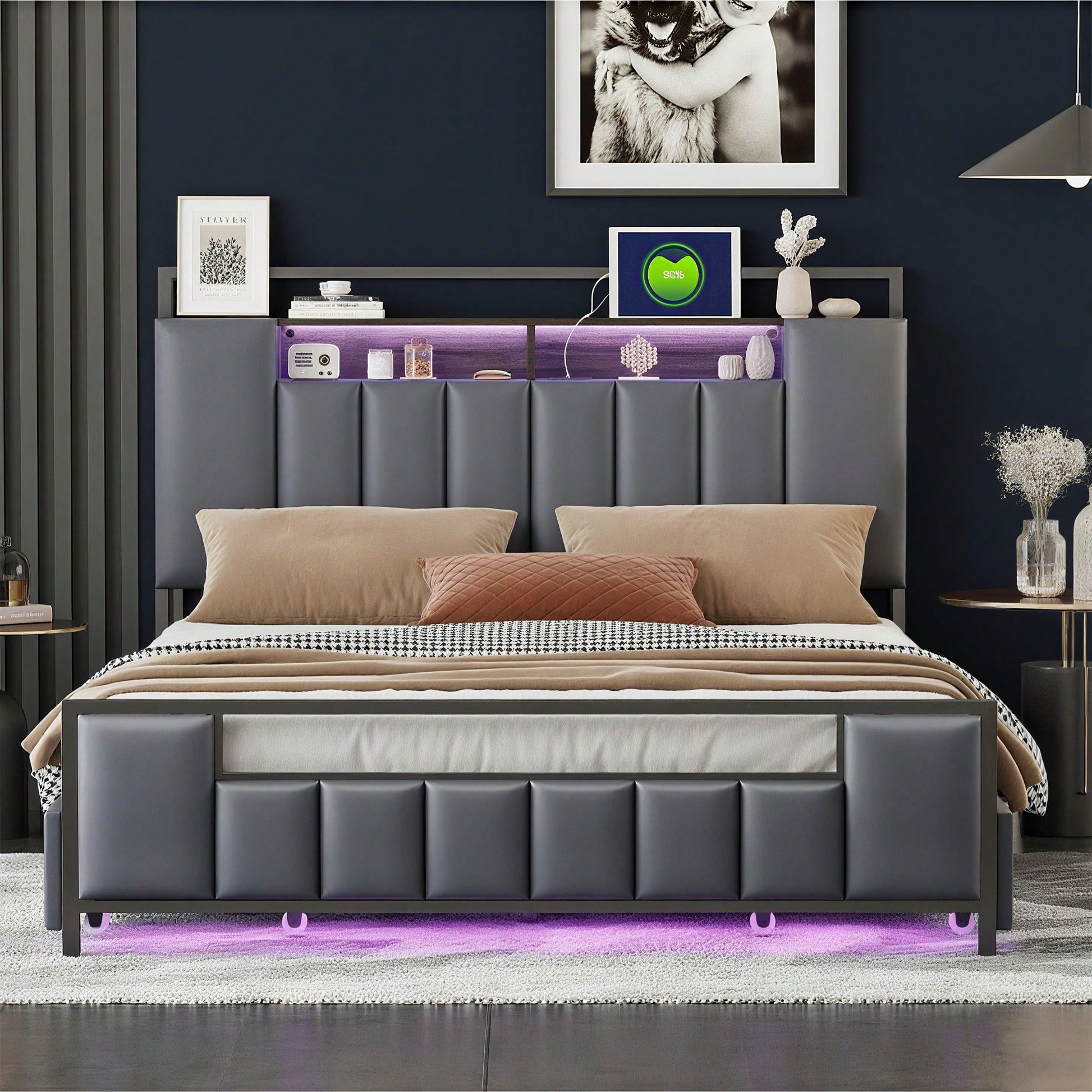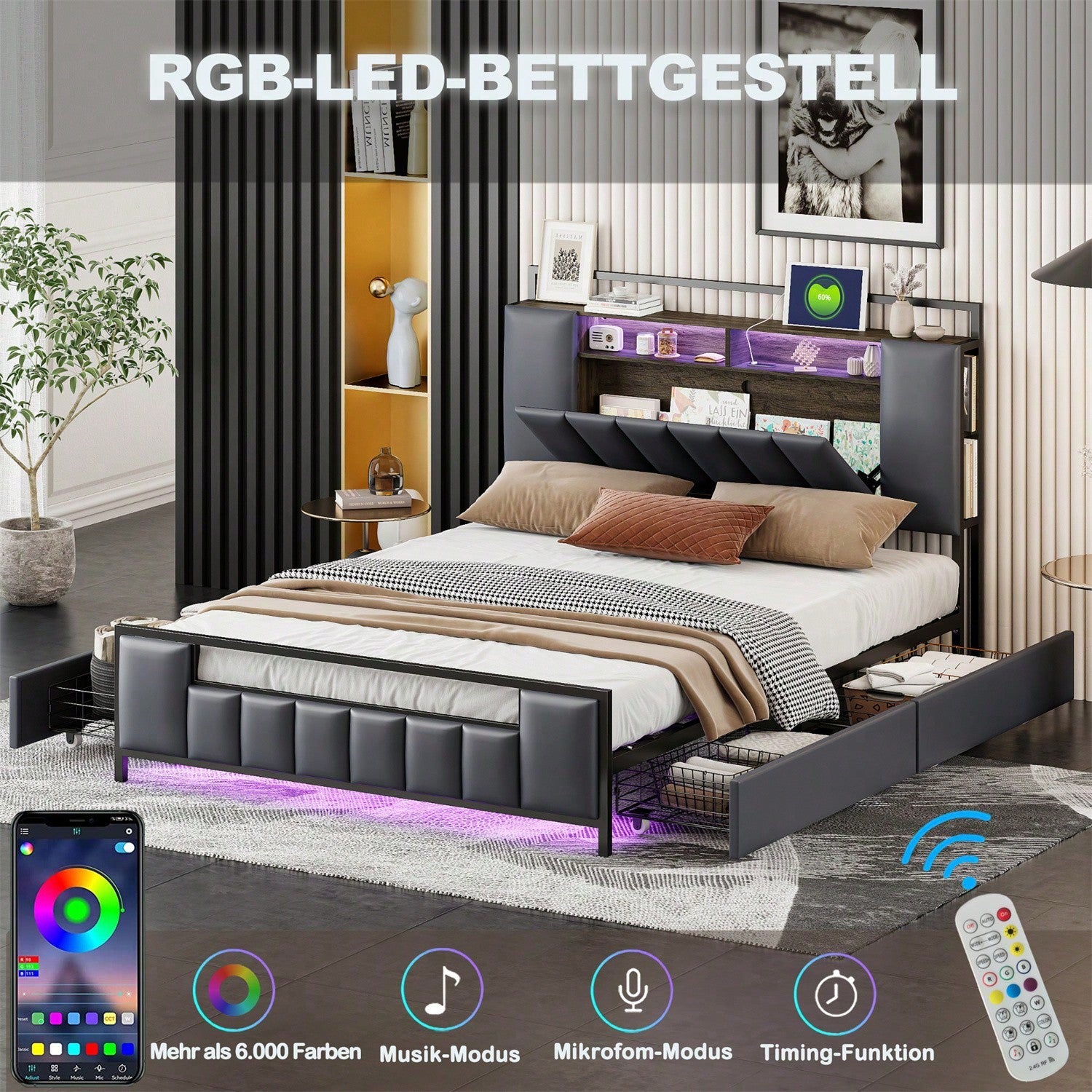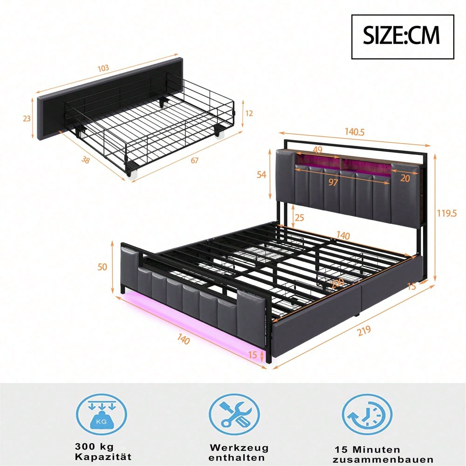 Informations produit Type de produit : Article combiné Nom du produit : Lit rembourré 140 x 200 cm, lit multifonction avec éclairage LED, port USB, tiroirs, cadre de lit en fer massif, lit pour jeune, lit pour adulte, lit double, similicuir, gris Origine : Chine Couleur principale : Gris Matériau principal : Rembourré Dimensions du lit : 140 cm x 200 cm Utilisation : Chambre Matériau du revêtement : Similicuir Dimensions du produit Longueur après assemblage (cm) : 219,00 Largeur après assemblage (cm) : 140,00 Hauteur après assemblage (cm) : 119,50 Poids du produit (kg) : 52,00 Dimensions du colis Sous-article 1 : WF323368AAE Quantité : 1 147,5 x 53 x 15,5 cm 29,96 kg Sous-article 2 : WF323369AAE Quantité par paquet : 1 149 x 48,5 x 15,5 cm 29,64 kg Caractéristiques du produit Tête de lit multifonctionnelle : La tête de lit est dotée de compartiments de rangement internes pour une organisation et un accès faciles aux essentiels de la chambre. Elle est également équipée d'un port USB pour recharger facilement les appareils. L'alliance de la mode, du confort et de la praticité garantit un sommeil réparateur. ÉCLAIRAGE LED ET 4 GRANDS TIROIRS : Ce lit est doté d'un éclairage LED à la tête et au pied de lit, créant une ambiance élégante et moderne dans la chambre. Quatre grands tiroirs offrent un grand espace de rangement pour vos affaires. Construction robuste et durable : Ce lit rembourré est construit à partir d'un cadre en fer avec une capacité de charge allant jusqu'à 300 kg, offrant une structure stable et une longue durée de vie. Similicuir : Ce lit rembourré est recouvert de similicuir de haute qualité, luxueux et facile d'entretien. Disponible dans d'élégants coloris blanc et gris, il s'intègre parfaitement à tous les styles de chambre. Facile à monter : le lit mesure 219 x 140 x 119,5 cm avec sommier à lattes (matelas non inclus). Ce lit double rembourré est expédié depuis l'Allemagne en deux colis ; il arrive que deux colis n'arrivent pas le même jour. Veuillez prévoir un délai supplémentaire de 2 à 3 jours.