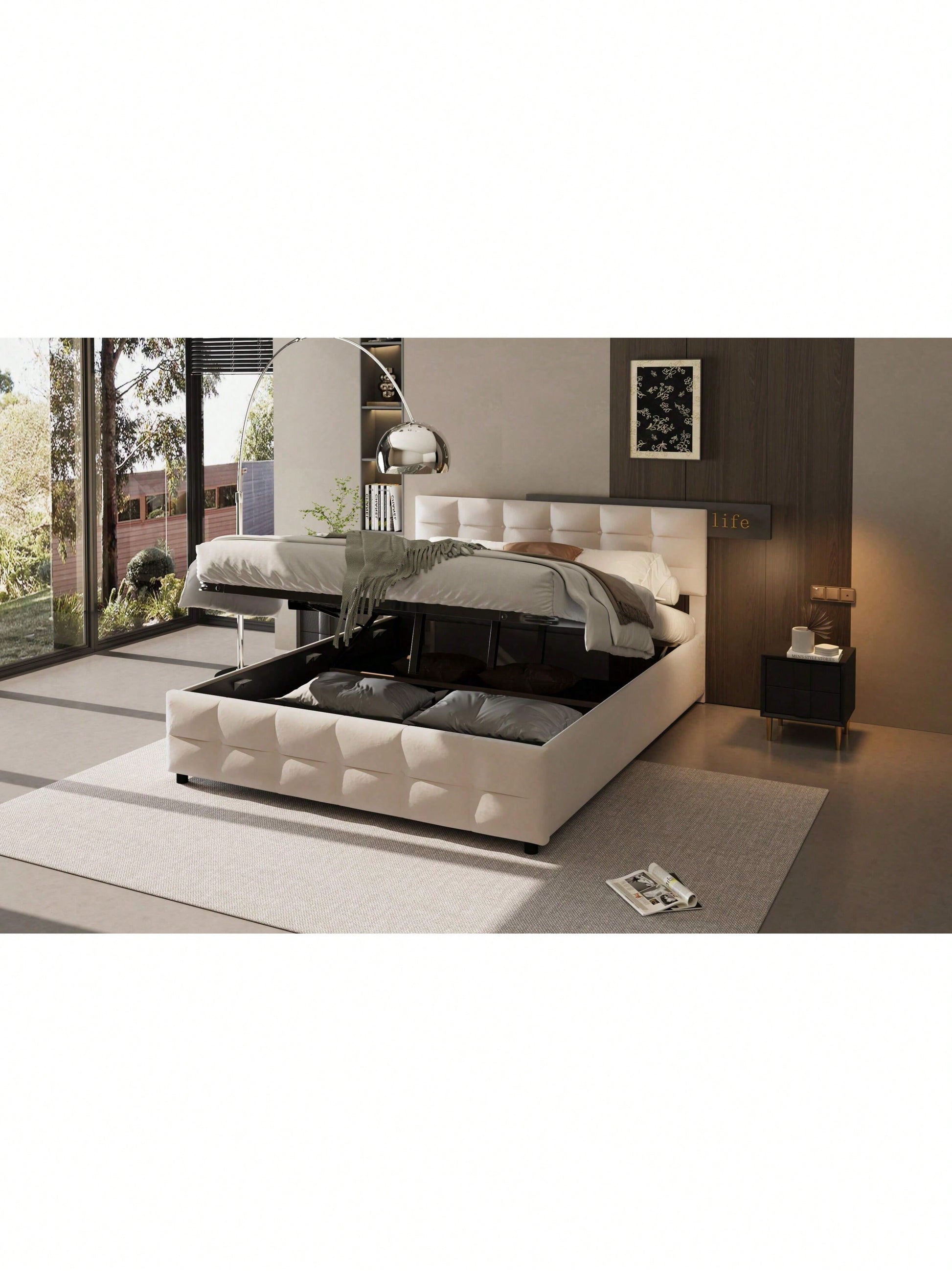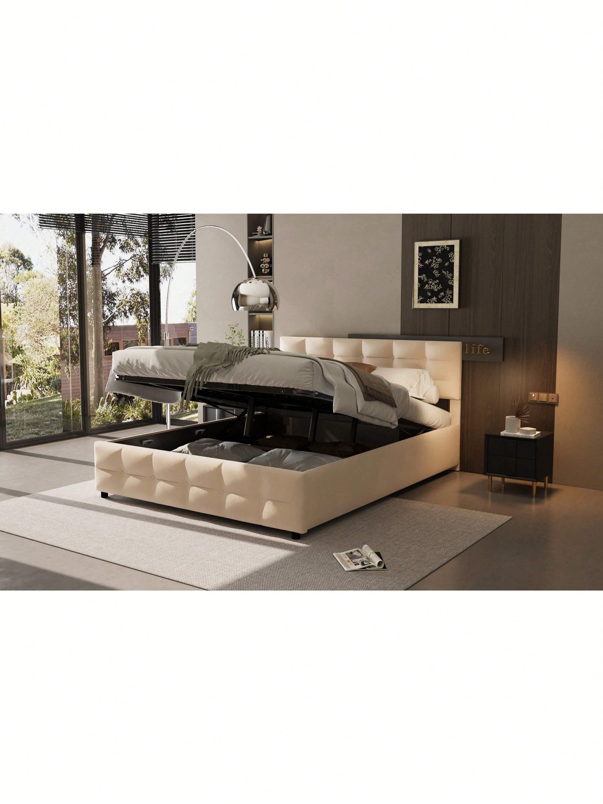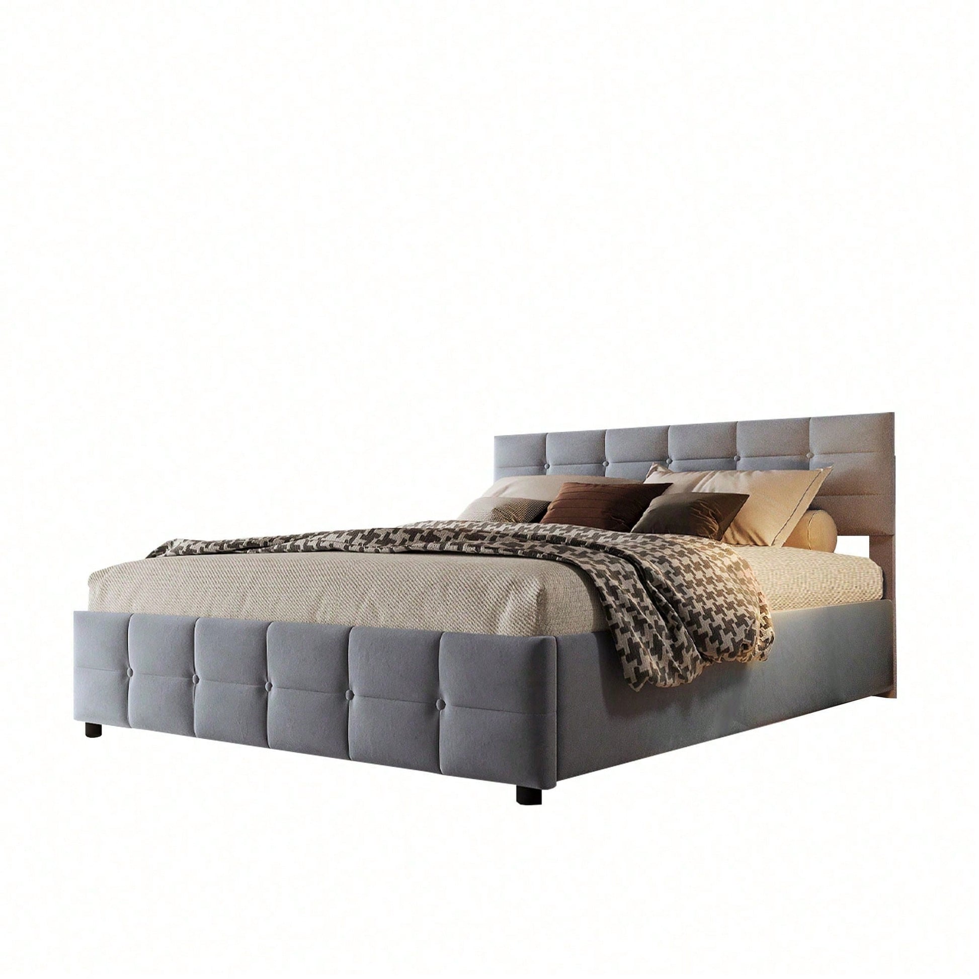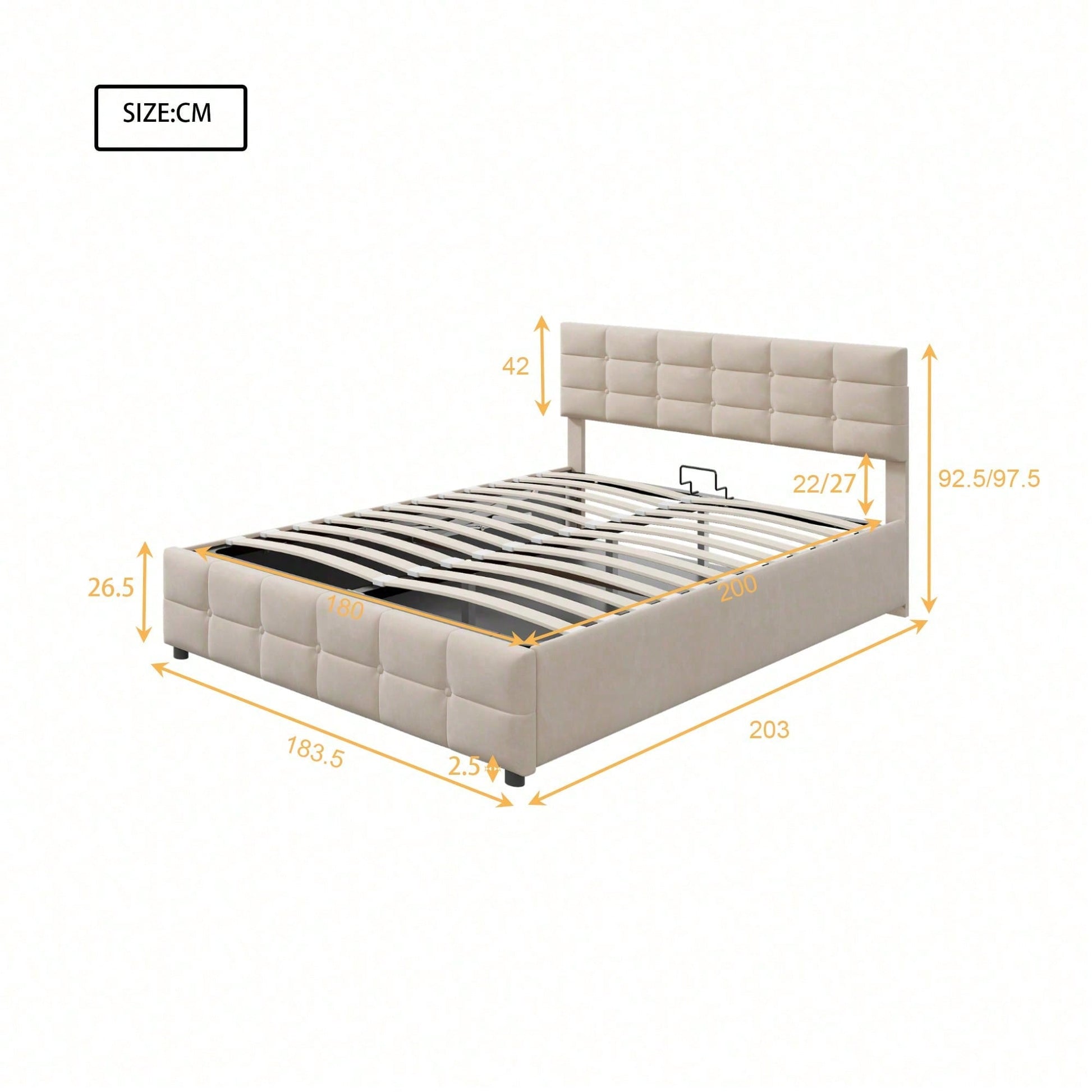 Informations produit Type de produit : Article combiné Nom du produit : Lit tapissé 180 x 200 cm, sommier à lattes, lit simple hydraulique, tissu velours hollandais, gris Couleur principale : Gris Matériau principal : Tapissé Dimensions du produit Longueur après assemblage (cm) : 203,00 Largeur après assemblage (cm) : 183,50 Hauteur après assemblage (cm) : 97,50 Poids du produit (kg) : 40,60 Dimensions du colis Sous-article 1 : N623P194839E Quantité : 1 198,12 x 28,58 x 20,32 cm, 23,6 kg Sous-article 2 : N623P194837E Quantité : 1 186,69 x 45,09 x 8,26 cm, 22 kg Caractéristiques du produit Confort : La conception à poches souples offre Il offre un bon soutien dorsal et est idéal pour se reposer et lire. Facile à nettoyer : Fabriqué en velours hollandais de haute qualité, il est doux comme un nuage et vous offre un confort ultime. Facile d'entretien, il maintient le lit propre et bien rangé. Espace de rangement : Équipé d'un système de levage hydraulique par une seule personne, l'espace sous le lit peut être judicieusement optimisé pour un rangement facile. Style : Élégant et , il s'adapte à divers styles d'intérieur simples. Idéal pour les résidences étudiantes ou les petits appartements, il allie parfaitement praticité et esthétique.