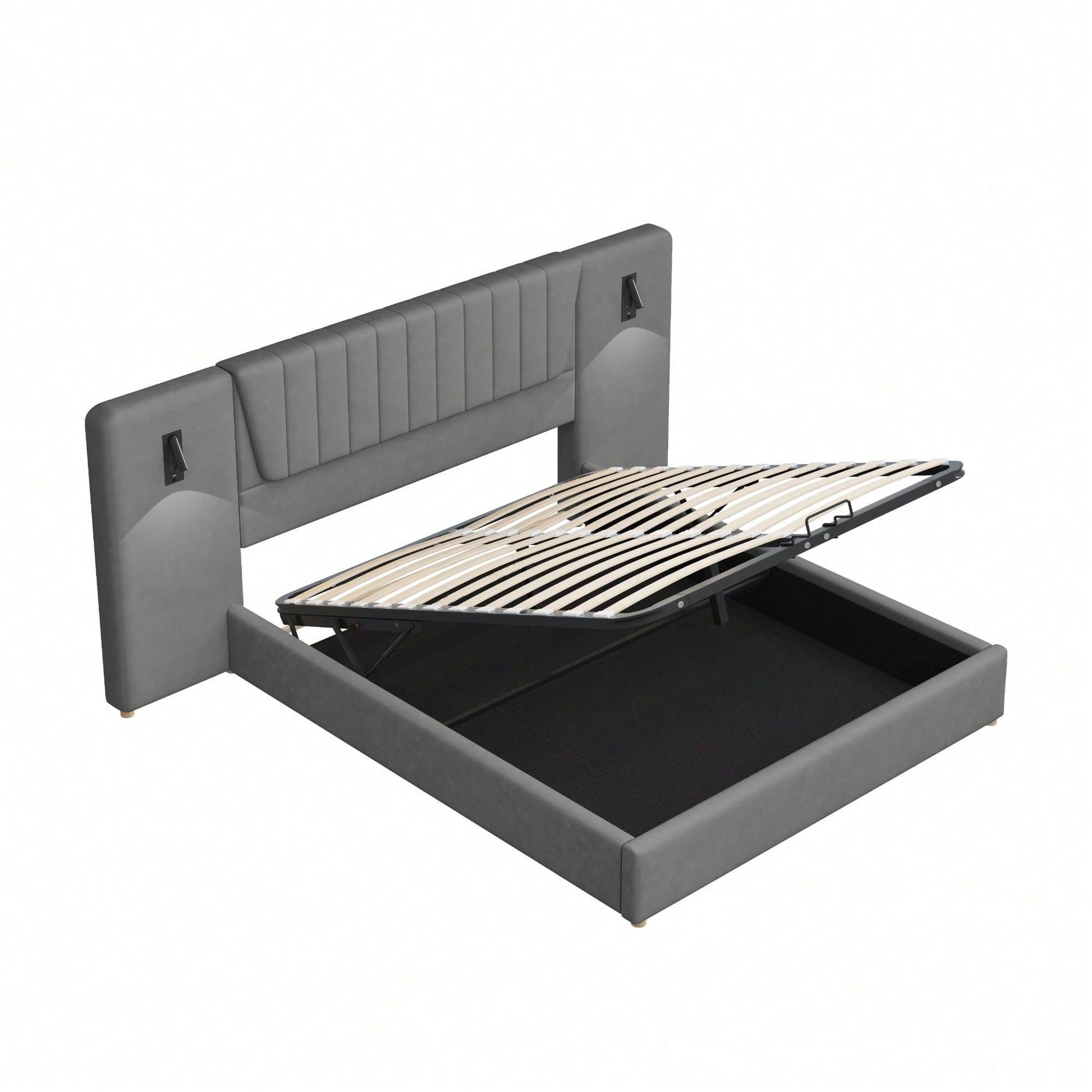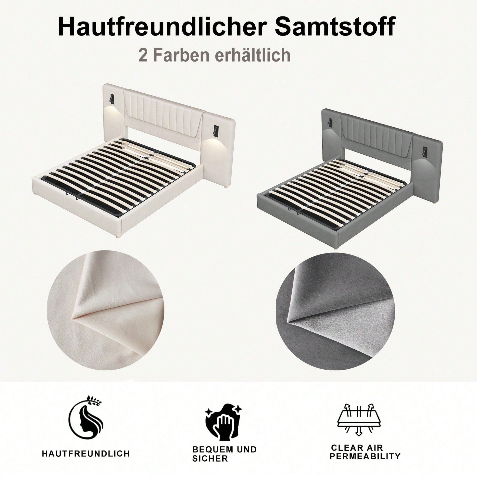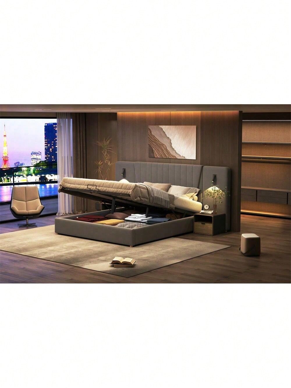 Spécifications Informations produit Code article : LDU00244AAE Type de produit : Article combiné Nom du produit : Lit rembourré 180 x 200 cm, avec dossier extra-long, lampe de lecture réglable, port de charge USB, lit coffre hydraulique, lit double, tissu velours, gris Origine : Chine Couleur principale : Gris Matériau principal : Rembourré Dimensions du lit : 180 x 200 cm Type de lit : Structure de lit Dimensions du produit Longueur une fois assemblé (cm) : 206,00 Largeur une fois assemblé (cm) : 246,50 Hauteur une fois assemblé (cm) : 109,00 Poids du produit (kg) : 57,00 Dimensions du colis Sous-article 1 : N623P182388E Quantité par colis : 1 197,49 x 26,67 x 21,84 cm kg Sous-article 2 : N623P182387E Quantité par paquet : 1 135,13 x 44,45 x 13,97 cm 11,5 kg Sous-article 3 : N623P182386E Quantité par paquet : 1 168,91 x 50,29 x 10,41 cm 22,7 kg Caractéristiques du produit Coussin de dossier extra-long et large : ce lit capitonné présente une tête de lit au design unique. Les lignes classiques du dossier et de la tête de lit extra-longs et larges confèrent à ce lit capitonné un style distinctif tout en offrant un excellent confort et un excellent soutien. Idéal pour lire, se détendre ou regarder la télévision, il est idéal pour se détendre. Le tissu en velours est agréable et doux au toucher, garantissant un sommeil réparateur. Liseuses pivotantes avec ports USB : ce lit double capitonné est équipé de deux liseuses pivotantes à 180° à la tête de lit, vous permettant d'orienter facilement la lumière selon vos préférences. Le port de charge USB pratique des liseuses vous permet de recharger vos appareils sans câbles supplémentaires, un atout pratique et bien pensé. Rangement hydraulique - L'espace de rangement hydraulique sous ce lit double rembourré est l'équivalent d'une armoire dissimulée, idéale pour ranger votre literie et vos autres vêtements. Robuste, stable et durable - Le cadre de ce grand lit rembourré est composé de supports métalliques et de 24 doubles rangées de lattes pouvant supporter jusqu'à 300 kg. Il reste stable et ne s'enfonce pas pour une nuit de sommeil réparatrice. Montage facile - Les dimensions totales de ce lit double rembourré sont de 246,5 x 206 x 109 cm avec sommier à lattes (matelas non inclus). Ce lit double rembourré est expédié depuis l'Allemagne en trois colis. Il est possible que les trois colis ne soient pas livrés simultanément. Veuillez patienter quelques jours.