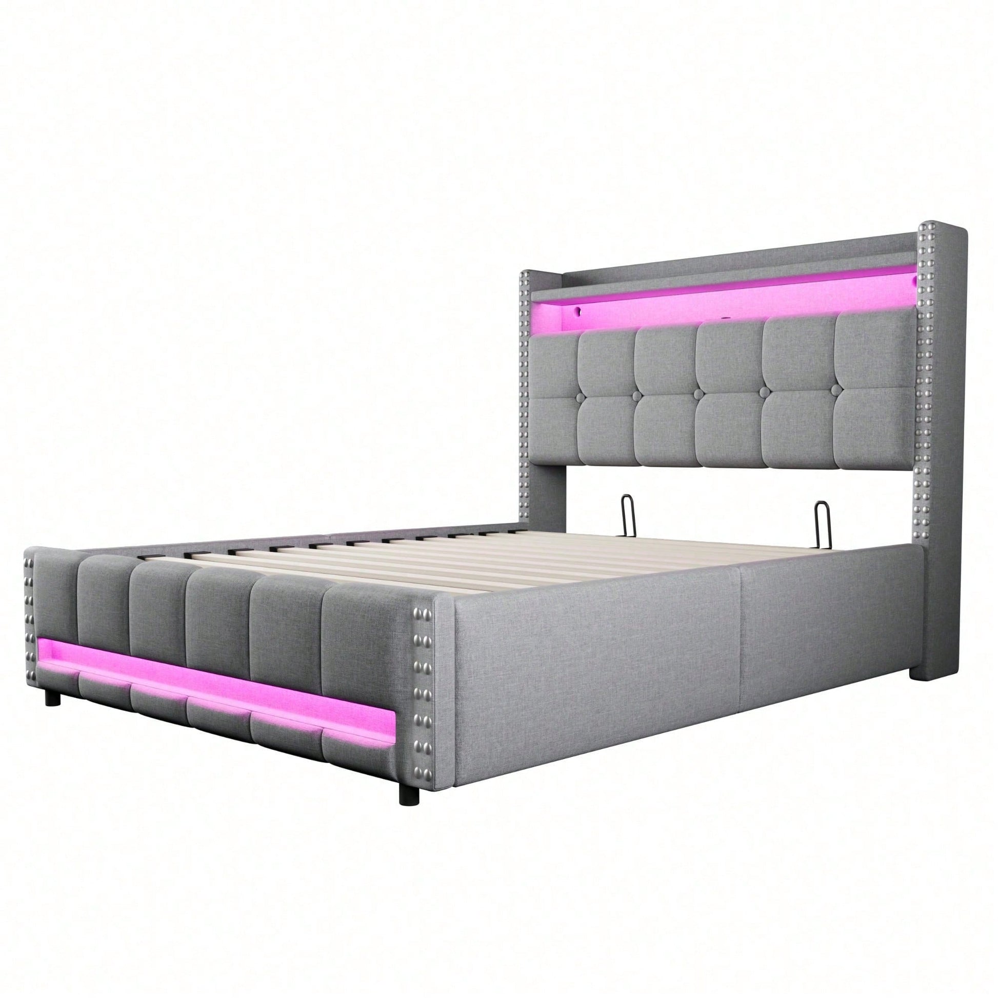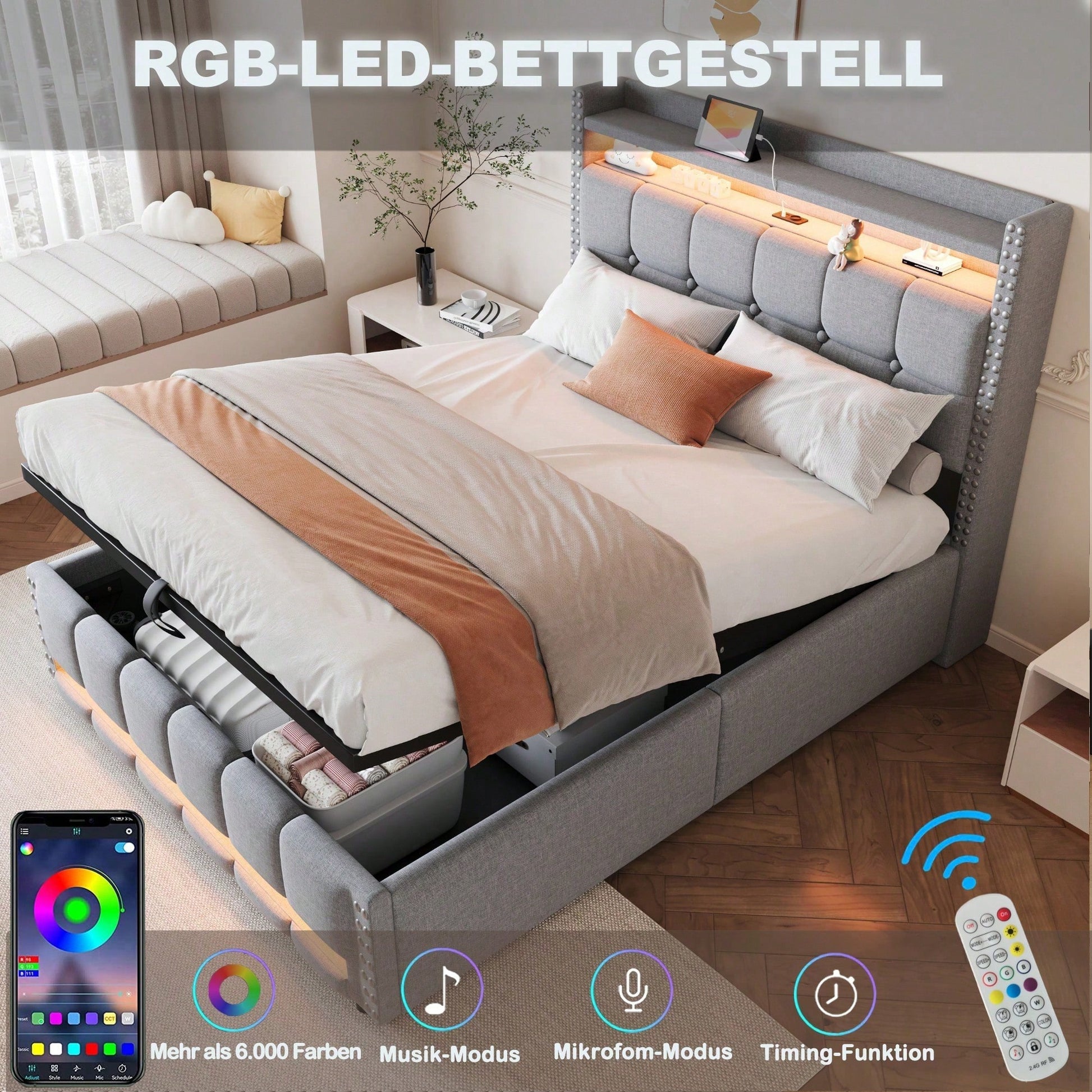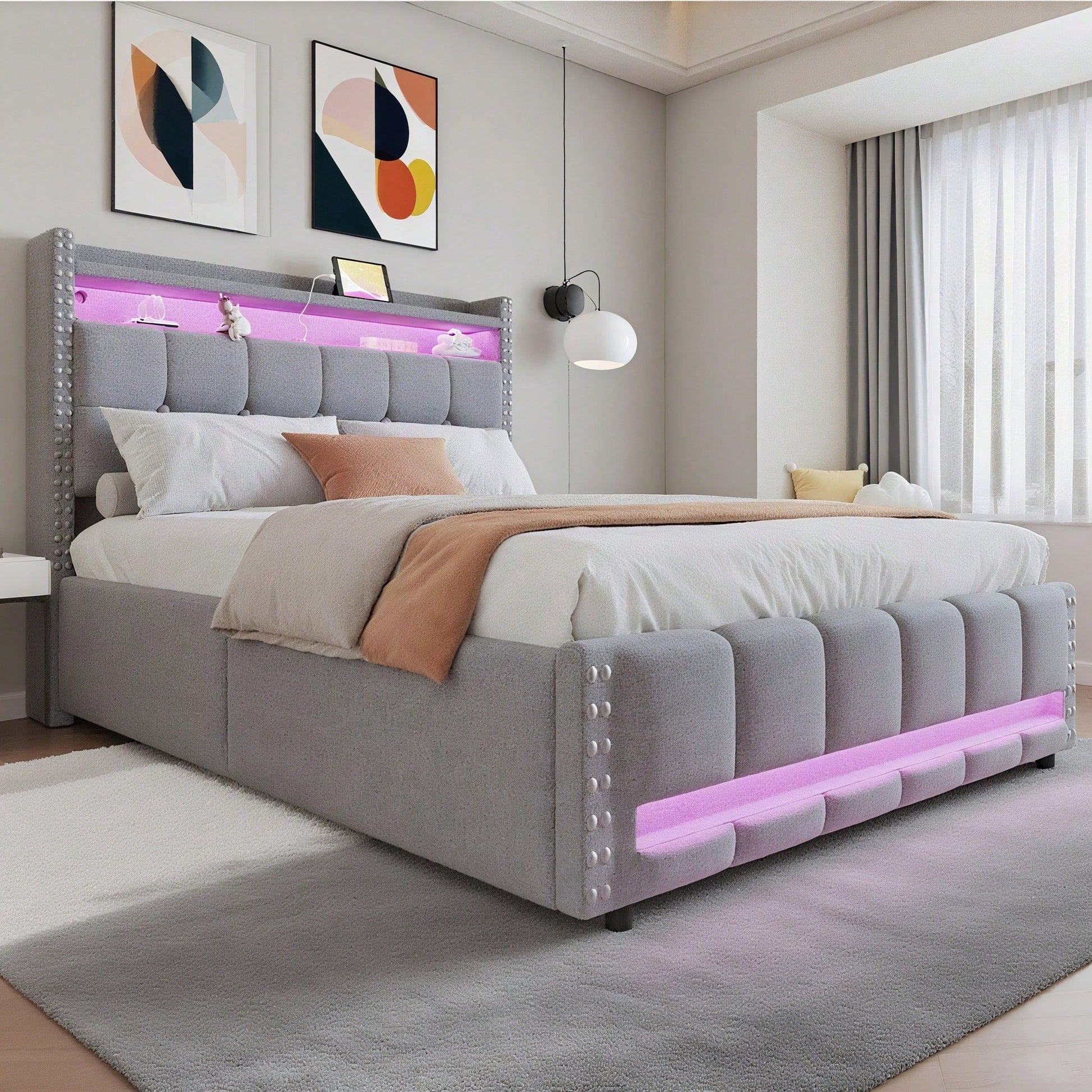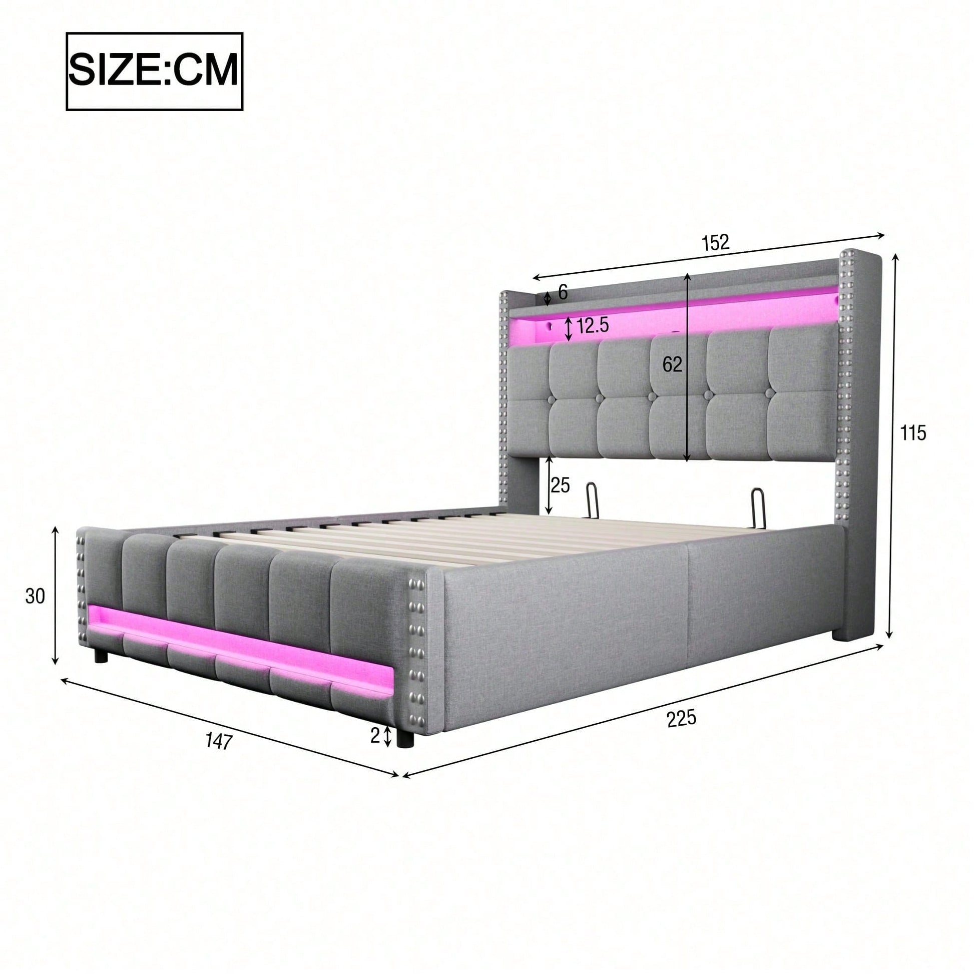 Spécifications Informations produit Code article : LDU00265AAG Type de produit : Article combiné Nom du produit : Lit rembourré 140 x 200 cm avec éclairage LED et port USB, tête de lit avec étagères et rangement, avec système de levage hydraulique pour le rangement, lit double adulte, tissu en lin gris clair Origine : Chine Couleur principale : GRIS CLAIR Matériau principal : Rembourré Dimensions du lit : 140 cm x 200 cm Utilisation : Chambre Matériau du revêtement : Lin Dimensions du produit Longueur après assemblage (cm) : 152,00 Largeur après assemblage (cm) : 225,00 Hauteur après assemblage (cm) : 115,00 Poids du produit (kg) : 52,50 Dimensions du colis Sous-article 1 : N623P194840G Quantité : 1 157,48 * 44,45 * 17,15 cm 29,82 kg Sous-article 2 : N623P194842G Quantité par paquet : 1 150,5 x 34,54 x 19,05 cm 26,7 kg Caractéristiques du produit Lit double tapissé polyvalent : Grâce aux étagères et aux rangements situés à la tête de lit, vous aurez toujours vos essentiels à portée de main. Un port USB intégré à la tête de lit vous permet de recharger vos appareils sans câbles supplémentaires. Les clous de chaque côté de la tête de lit lui confèrent une allure élégante et moderne. Éclairage LED à changement de couleur : L'éclairage LED à la tête et au pied de lit vous permet de changer les couleurs selon votre humeur et l'ambiance de votre chambre, sublimant ainsi l'atmosphère de votre chambre. Système de rangement hydraulique : Ce lit double est doté d'un mécanisme hydraulique et d'un grand espace de rangement sous le lit pour la literie, les vêtements, etc., offrant ainsi un espace de rangement dissimulé pour une organisation facile. Tissu en lin - La housse en lin gris respirant et résistant de ce lit rembourré est fabriquée dans un tissu en lin de haute qualité, lui conférant une touche douce et moderne qui s'harmonise avec tout type de décoration. Construction solide et facile à monter - Ce lit double est doté d'une structure en bois, rembourrée et métallique durable, stable et fiable, avec un sommier à lattes pouvant supporter une charge allant jusqu'à 250 kg. Ses dimensions totales sont de 225 x 152 x 115 cm. Ce lit rembourré est expédié depuis l'Allemagne en deux colis ; il est possible que les deux colis n'arrivent pas le même jour. Veuillez prévoir quelques jours supplémentaires pour la livraison.