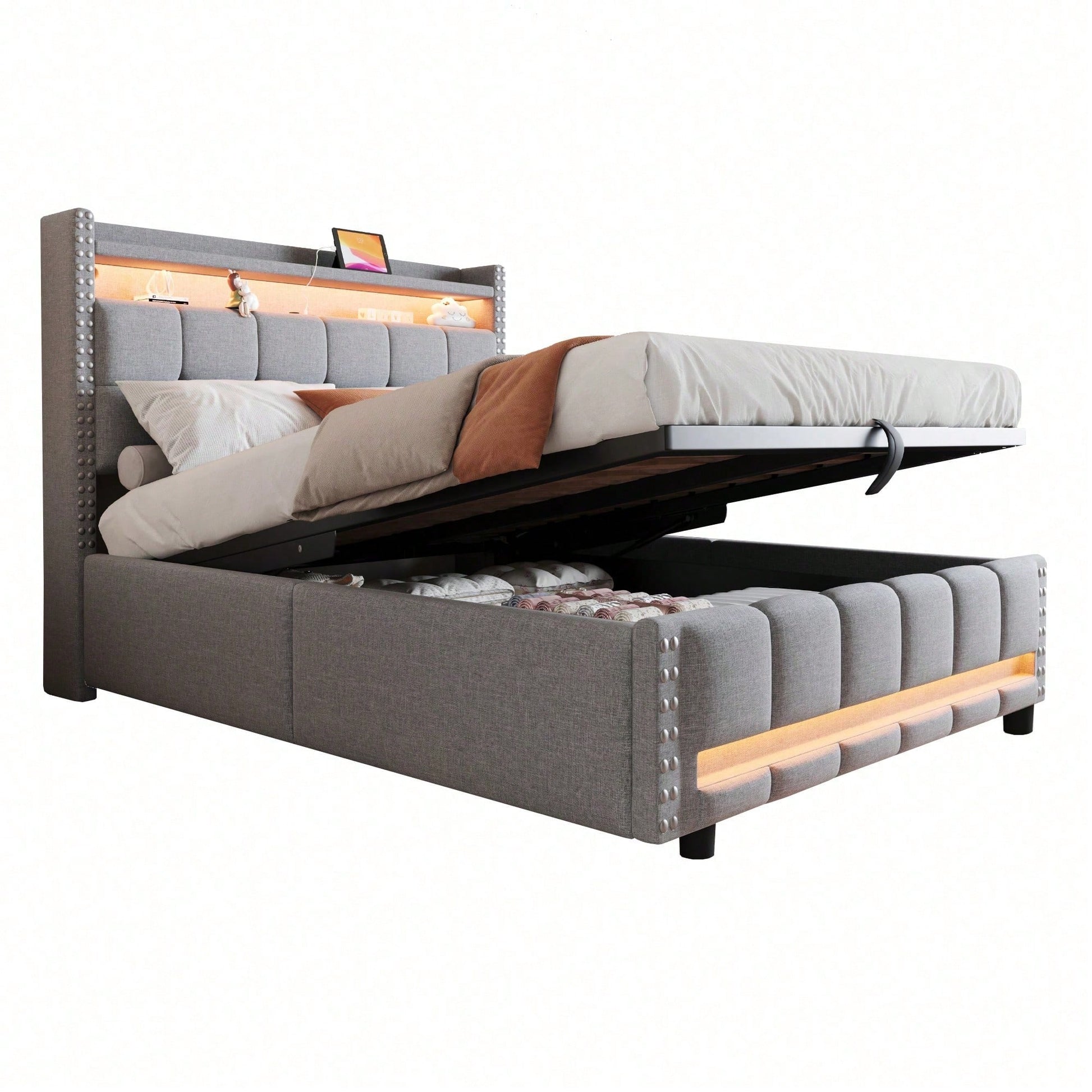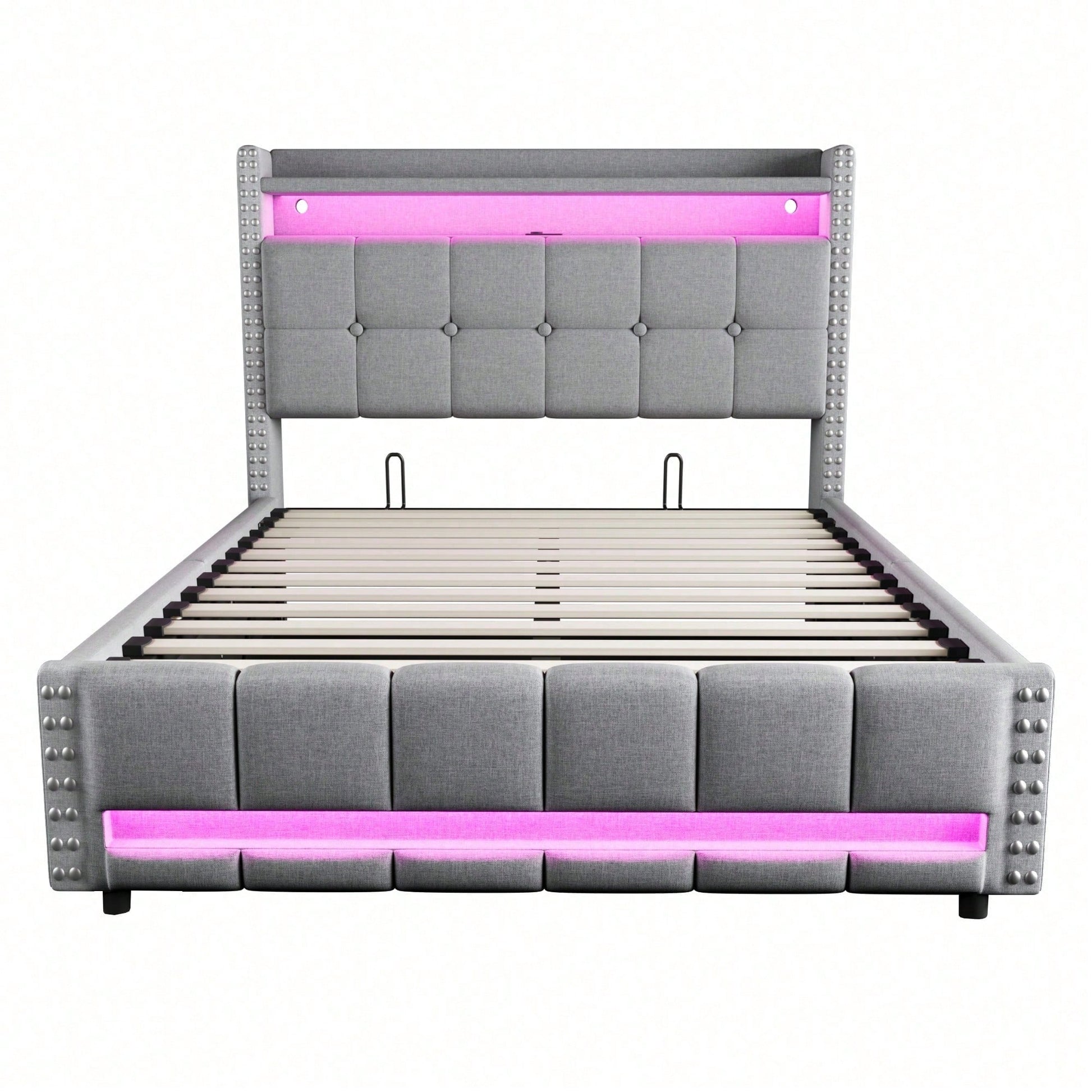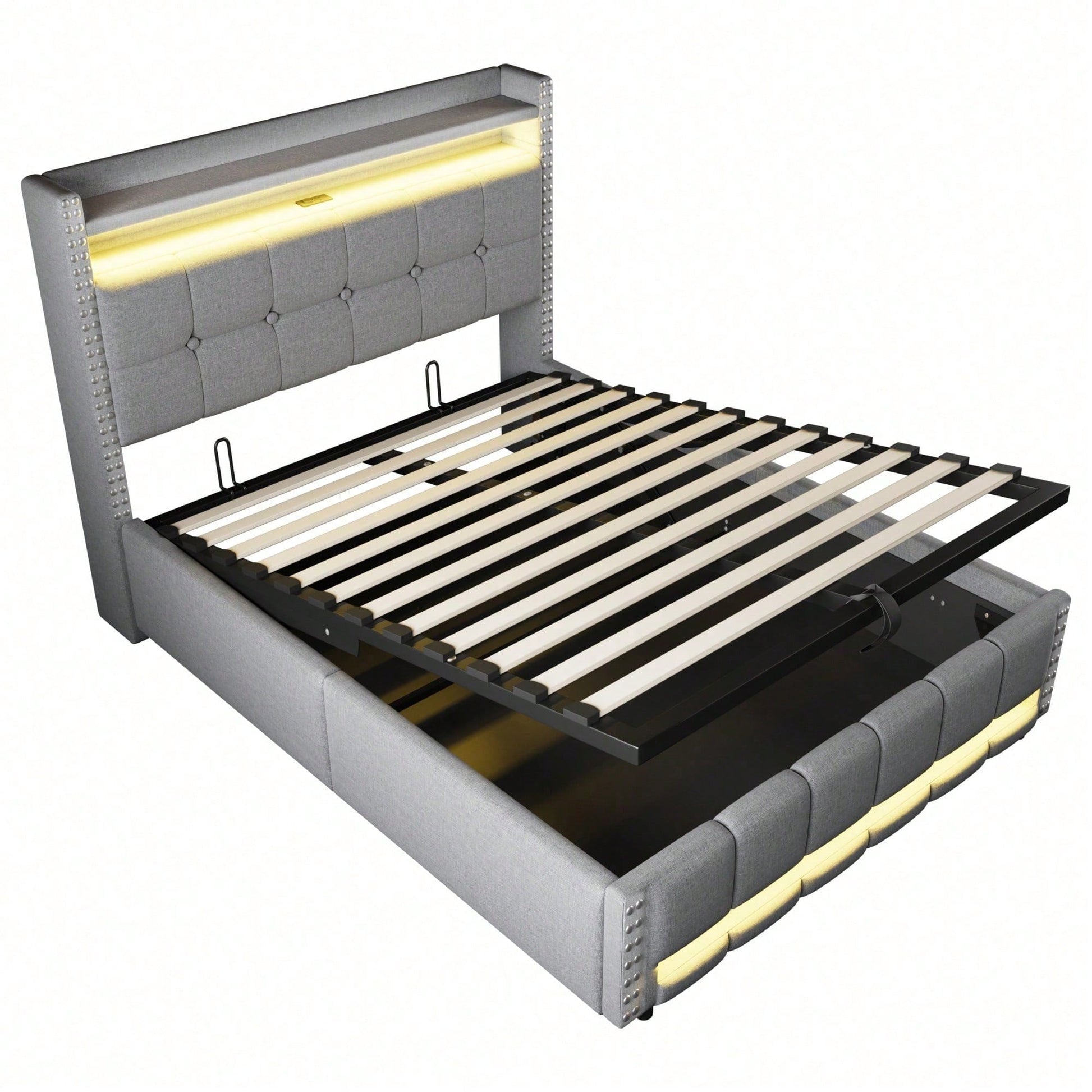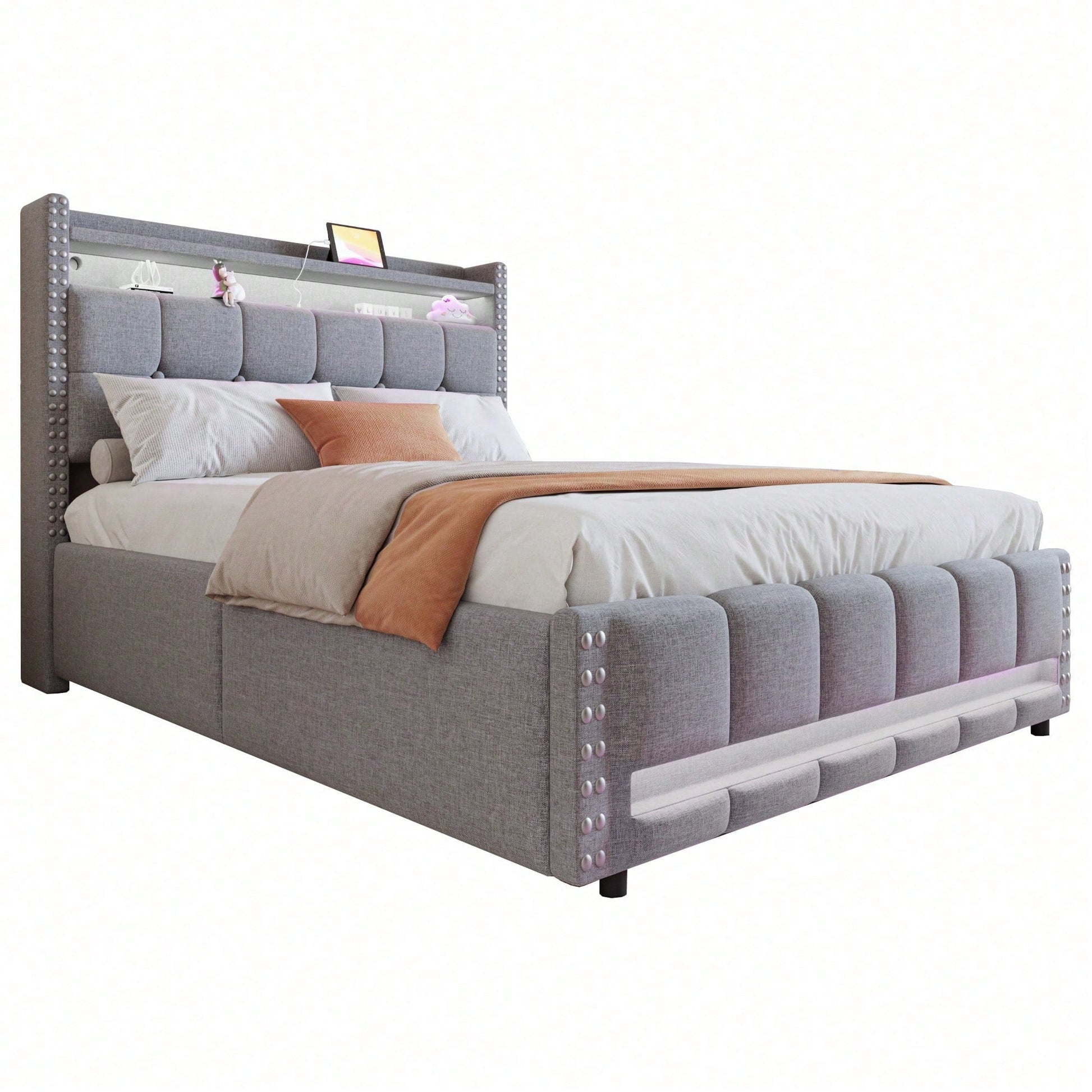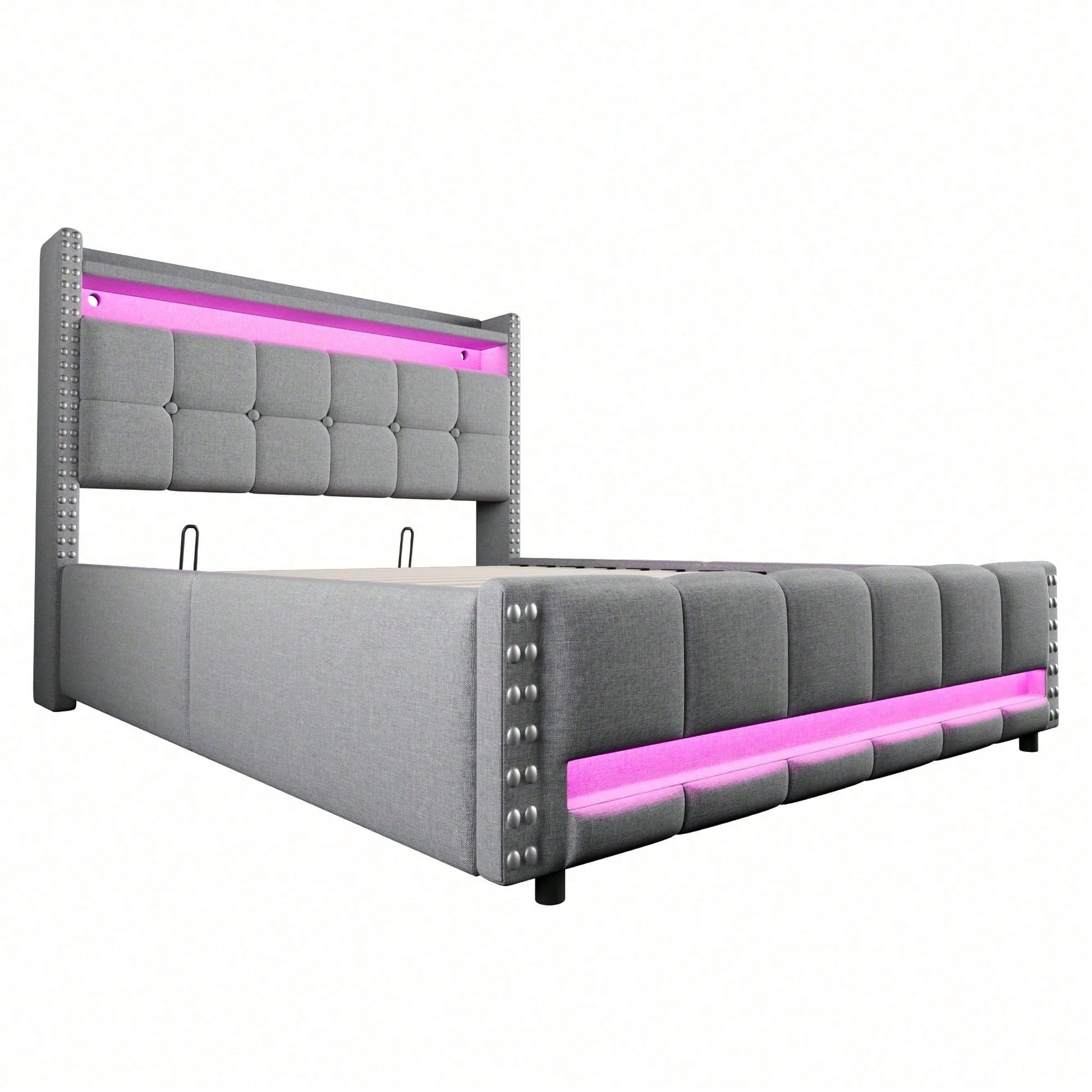 Spécifications Informations produit Code article : LDU00265AAG Type de produit : Article combiné Nom du produit : Lit rembourré 140 x 200 cm avec éclairage LED et port USB, tête de lit avec étagères et rangement, avec système de levage hydraulique pour le rangement, lit double adulte, tissu en lin gris clair Origine : Chine Couleur principale : GRIS CLAIR Matériau principal : Rembourré Dimensions du lit : 140 cm x 200 cm Utilisation : Chambre Matériau du revêtement : Lin Dimensions du produit Longueur après assemblage (cm) : 152,00 Largeur après assemblage (cm) : 225,00 Hauteur après assemblage (cm) : 115,00 Poids du produit (kg) : 52,50 Dimensions du colis Sous-article 1 : N623P194840G Quantité : 1 157,48 * 44,45 * 17,15 cm 29,82 kg Sous-article 2 : N623P194842G Quantité par paquet : 1 150,5 x 34,54 x 19,05 cm 26,7 kg Caractéristiques du produit Lit double tapissé polyvalent : Grâce aux étagères et aux rangements situés à la tête de lit, vous aurez toujours vos essentiels à portée de main. Un port USB intégré à la tête de lit vous permet de recharger vos appareils sans câbles supplémentaires. Les clous de chaque côté de la tête de lit lui confèrent une allure élégante et moderne. Éclairage LED à changement de couleur : L'éclairage LED à la tête et au pied de lit vous permet de changer les couleurs selon votre humeur et l'ambiance de votre chambre, sublimant ainsi l'atmosphère de votre chambre. Système de rangement hydraulique : Ce lit double est doté d'un mécanisme hydraulique et d'un grand espace de rangement sous le lit pour la literie, les vêtements, etc., offrant ainsi un espace de rangement dissimulé pour une organisation facile. Tissu en lin - La housse en lin gris respirant et résistant de ce lit rembourré est fabriquée dans un tissu en lin de haute qualité, lui conférant une touche douce et moderne qui s'harmonise avec tout type de décoration. Construction solide et facile à monter - Ce lit double est doté d'une structure en bois, rembourrée et métallique durable, stable et fiable, avec un sommier à lattes pouvant supporter une charge allant jusqu'à 250 kg. Ses dimensions totales sont de 225 x 152 x 115 cm. Ce lit rembourré est expédié depuis l'Allemagne en deux colis ; il est possible que les deux colis n'arrivent pas le même jour. Veuillez prévoir quelques jours supplémentaires pour la livraison.