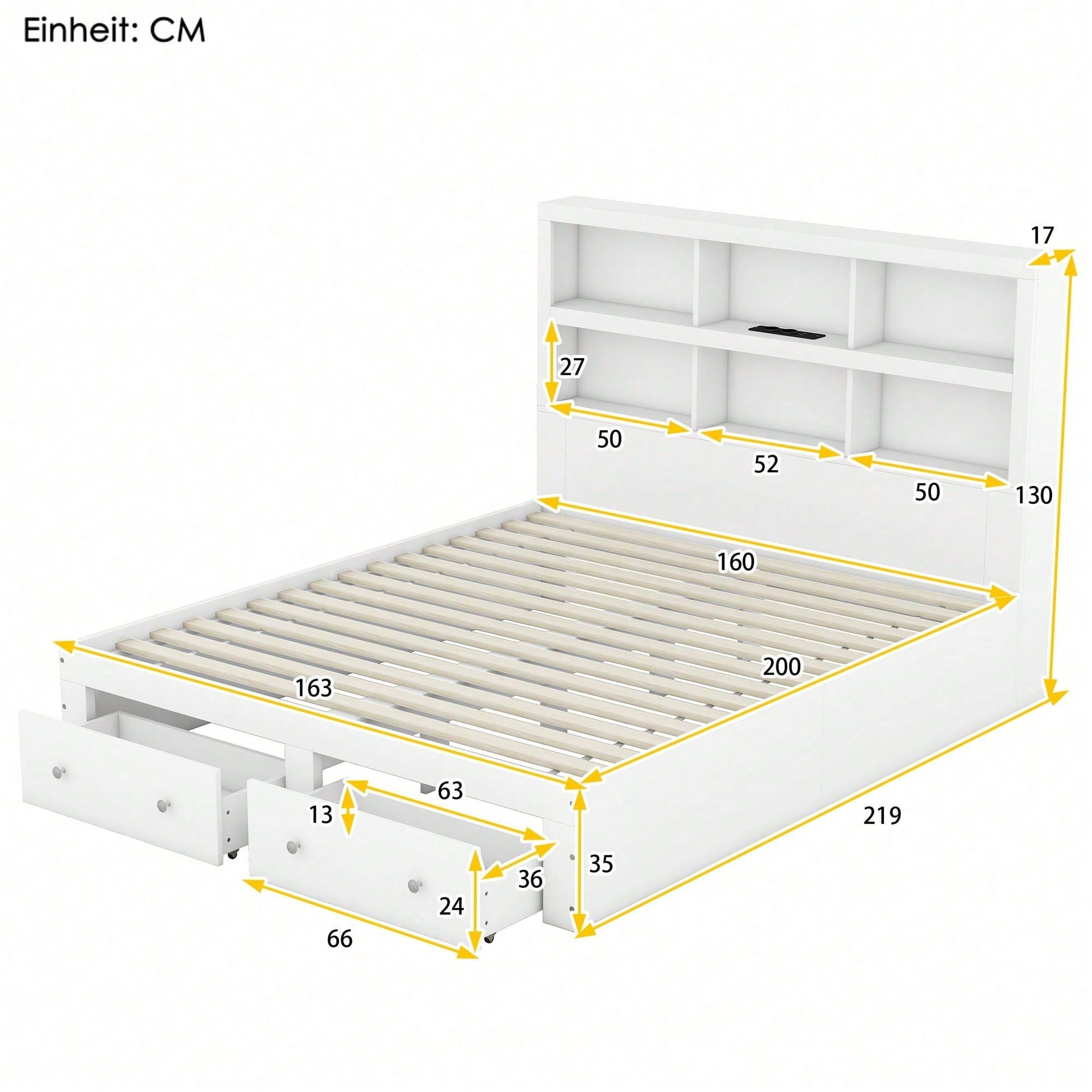 Spécifications Informations produit Code article : WX000802AAK Type de produit : Article combiné Nom du produit : Lit double 160 x 200 cm, panneau de particules, lit plateforme king-size avec deux tiroirs au pied, tête de lit avec rangement, blanc Couleur principale : Blanc Matériau principal : Panneau de particules Dimensions du produit Longueur après assemblage (cm) : 219,00 Largeur après assemblage (cm) : 163,00 Hauteur après assemblage (cm) : 130,00 Poids du produit (kg) : 76,50 Dimensions du colis Sous-article 1 : WF308296AAK Quantité par colis : 1 171 x 52 x 11,5 cm, 24 kg Sous-article 2 : WF308295AAK Quantité par colis : 1 168 x 36 x 17 cm, 27 kg Sous-article 3 : WF308294AAK Quantité par paquet : 1 108,5 x 45,5 x 17,5 cm 29,6 kg Caractéristiques du produit Design élégant et minimaliste : Le design général du lit est simple et , s'adaptant à différents styles d'intérieur. Design multifonctionnel : La tête de lit est équipée de six compartiments de rangement avec ports USB, permettant de ranger livres, téléphones portables et autres objets fréquemment utilisés de manière pratique et pratique. La tête de lit est équipée de deux tiroirs pour ranger les vêtements, etc., pour une pièce élégante et ordonnée. Matériaux de haute qualité : Le lit est entièrement fabriqué en panneaux de particules et MDF de haute qualité, épais et robustes, résistants à l'épreuve du temps. Le lit 219 x 163 x 130 cm et sera expédié depuis l'Allemagne en trois colis. Il est possible que trois colis ne soient pas livrés le même jour. Veuillez patienter 2 à 3 jours supplémentaires ou contacter notre service client. Le lit sera expédié depuis l'Allemagne en trois colis. Il arrive que les colis arrivent à des heures différentes. Pour être que vos attentes soient satisfaites, veuillez patienter ou contacter notre service client.