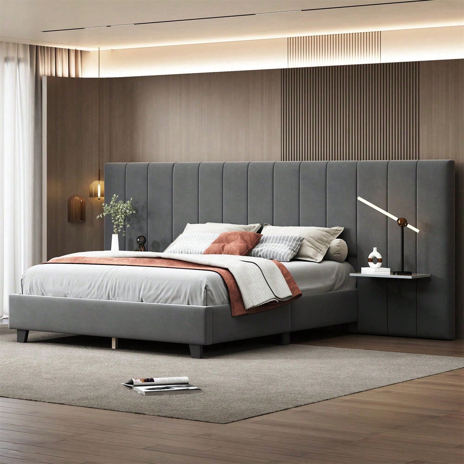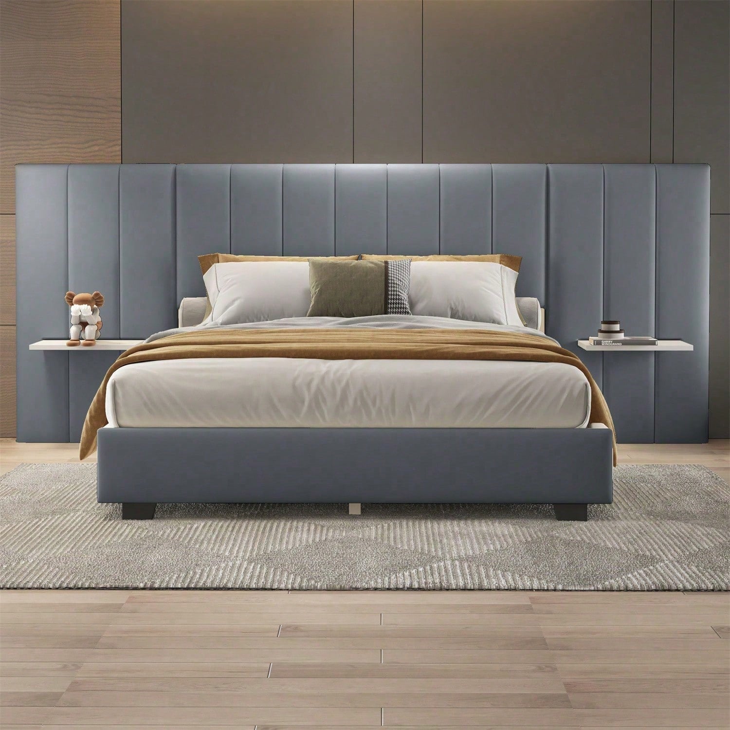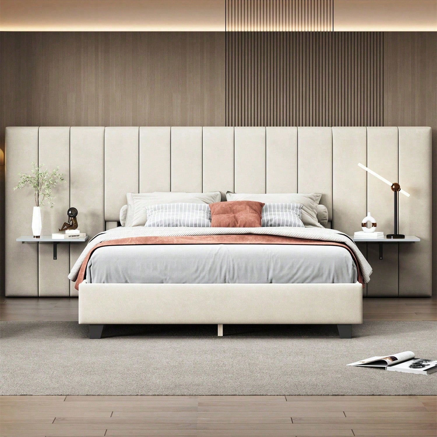 Informations produit Code article : LDU00129AAA Type de produit : Combo Nom du produit : Lit tapissé 160 x 200 cm, lit double avec tête de lit et dossier allongés, étagères de chaque côté de la tête de lit, sommier à lattes, velours beige Origine : Chine Couleur principale : Beige Matériau principal : Tapissé Utilisation : Chambre Dimensions du lit : 160 cm x 200 cm Matériau du revêtement : Velours Dimensions du produit Longueur une fois assemblé (cm) : 290,80 Largeur une fois assemblé (cm) : 217,00 Hauteur une fois assemblé (cm) : 107,50 Poids du produit (kg) : 51,00 Dimensions du colis Sous-article 1 : WF323131AAA Quantité : 1 167 x 55,9 x 10,5 cm kg Sous-article 2 : WF323132AAA Quantité par paquet : 1 106,7 x 63,5 x 22,9 cm 29 kg Caractéristiques du produit Tête de lit allongée au design unique : La tête de lit de ce lit rembourré est unique. Son large dossier et ses lignes classiques lui confèrent un aspect tridimensionnel. Les lignes symétriques de chaque côté de la tête de lit confèrent à ce lit double simplicité et raffinement. Le large dossier et le rembourrage en mousse intégrale à la tête de lit offrent soutien et confort. Lits avec étagères de chaque côté : Les étagères de chaque côté de ce lit double offrent un espace de rangement supplémentaire, vous permettant de placer librement lampes, livres ou décorations de chaque côté du lit pour créer une ambiance unique dans votre chambre. Tissu velours doux pour la peau - Ce lit est fabriqué en velours doux et agréable au toucher, à la texture délicate et agréable pour la peau. Il vous offre un confort optimal. Le velours confère à l'ensemble du lit rembourré un aspect élégant et de haute qualité, apportant un impact visuel unique à votre chambre. Robuste et stable - Le cadre de ce lit en kit est composé de lattes de bois et de supports métalliques, avec un sommier à lattes pouvant supporter une charge allant jusqu'à 300 kg. Facile à monter - Dimensions totales du lit : 290,8 x 217 x 107,5 cm avec sommier à lattes (matelas non inclus). Ce lit rembourré double est expédié depuis l'Allemagne en deux colis ; il peut arriver que deux colis n'arrivent pas le même jour. Veuillez prévoir un délai de livraison de 2 à 3 jours.