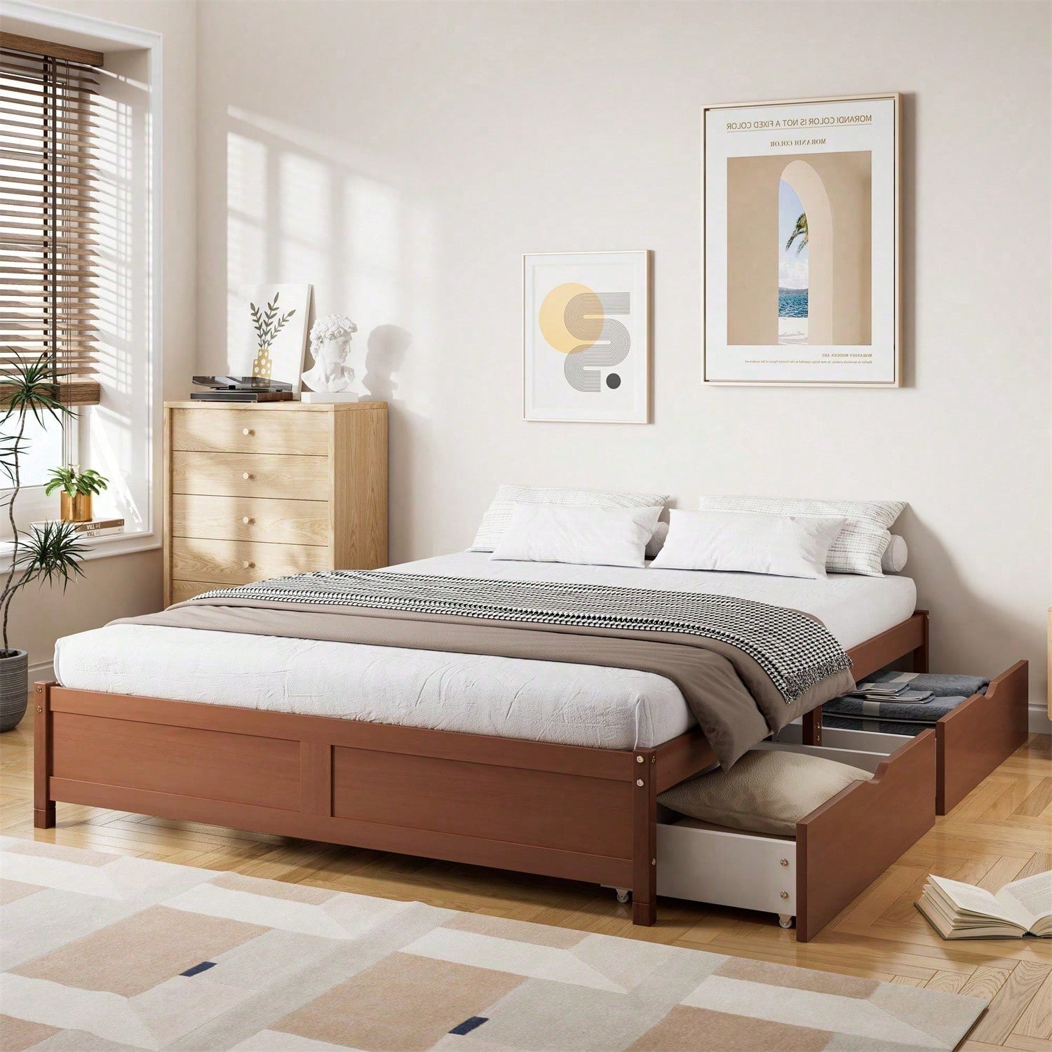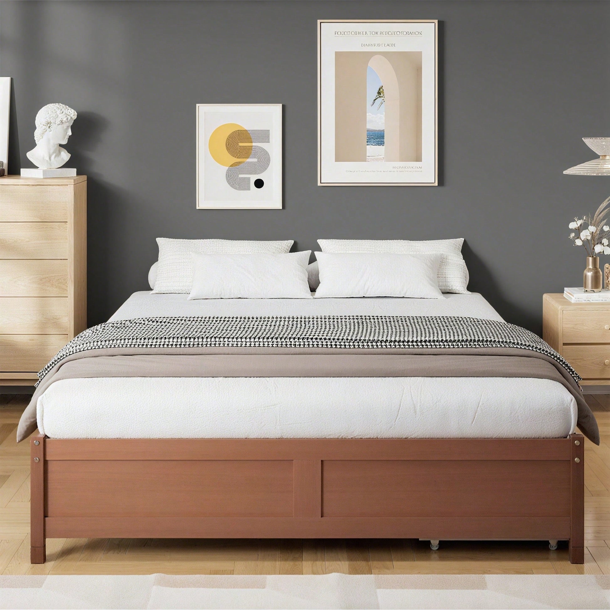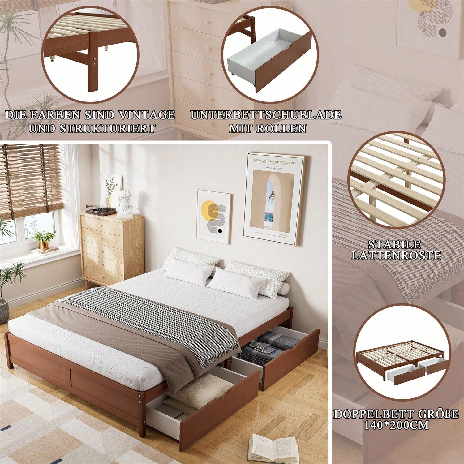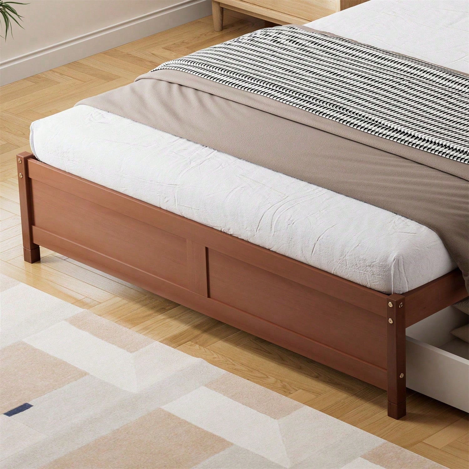 Spécifications Informations produit Code article : N622D162729N Type de produit : Article combiné Nom du produit : Lit enfant, lits plats, lits en bois, couleurs bois vintage, deux tiroirs à roulettes, adolescents et adultes, cadre en pin, sommiers à lattes robustes, pin + MDF, brun rougeâtre, 140 x 200 cm Origine : Chine Couleur principale : Brun rougeâtre Matériau principal : Bois massif + MDF Dimensions du lit : 140 cm x 200 cm Dimensions du produit Longueur une fois assemblé (cm) : 206,00 Largeur une fois assemblé (cm) : 146,00 Hauteur une fois assemblé (cm) : 35,00 Poids du produit (kg) : 45,00 Dimensions du colis Sous-article 1 : N622P191629N Quantité : 1 101,85 * 53,85 * 14,99 cm 25,5 kg Sous-article 2 : N622P191627N Quantité par paquet : 1 147,32 x 37,85 x 15,75 cm 21,6 kg Caractéristiques du produit Esthétique épurée : Le design minimaliste élimine les décorations complexes, permettant aux lignes du lit d'être fluides et de s'intégrer naturellement dans un intérieur moderne. Deux tiroirs : Les tiroirs sous le lit sont équipés de roulettes qui permettent un glissement et une ouverture aisés. Les tiroirs sous le lit offrent un espace de rangement supplémentaire et assurent l'ordre. Un intérieur chaleureux commence par un rangement bien organisé. Matériaux de haute qualité : Fabriqué en pin robuste et en MDF durable, ce lit allie l'esthétique naturelle du bois à la durabilité des matériaux modernes, garantissant une longue durée de vie et une grande stabilité. Facile à entretenir et à nettoyer : Ce lit a été conçu dans un souci de fonctionnalité et de durabilité. Sa structure simple facilite l'entretien et le nettoyage. Qu'il s'agisse d'un nettoyage quotidien ou d'un entretien approfondi, il est facile à utiliser et permet aux utilisateurs de gagner beaucoup de temps et d'énergie. Installation facile : des instructions détaillées et des pièces complètes vous aident à terminer l'assemblage. Le plaisir de l'installation vous permettra d'apprécier encore plus votre lit.