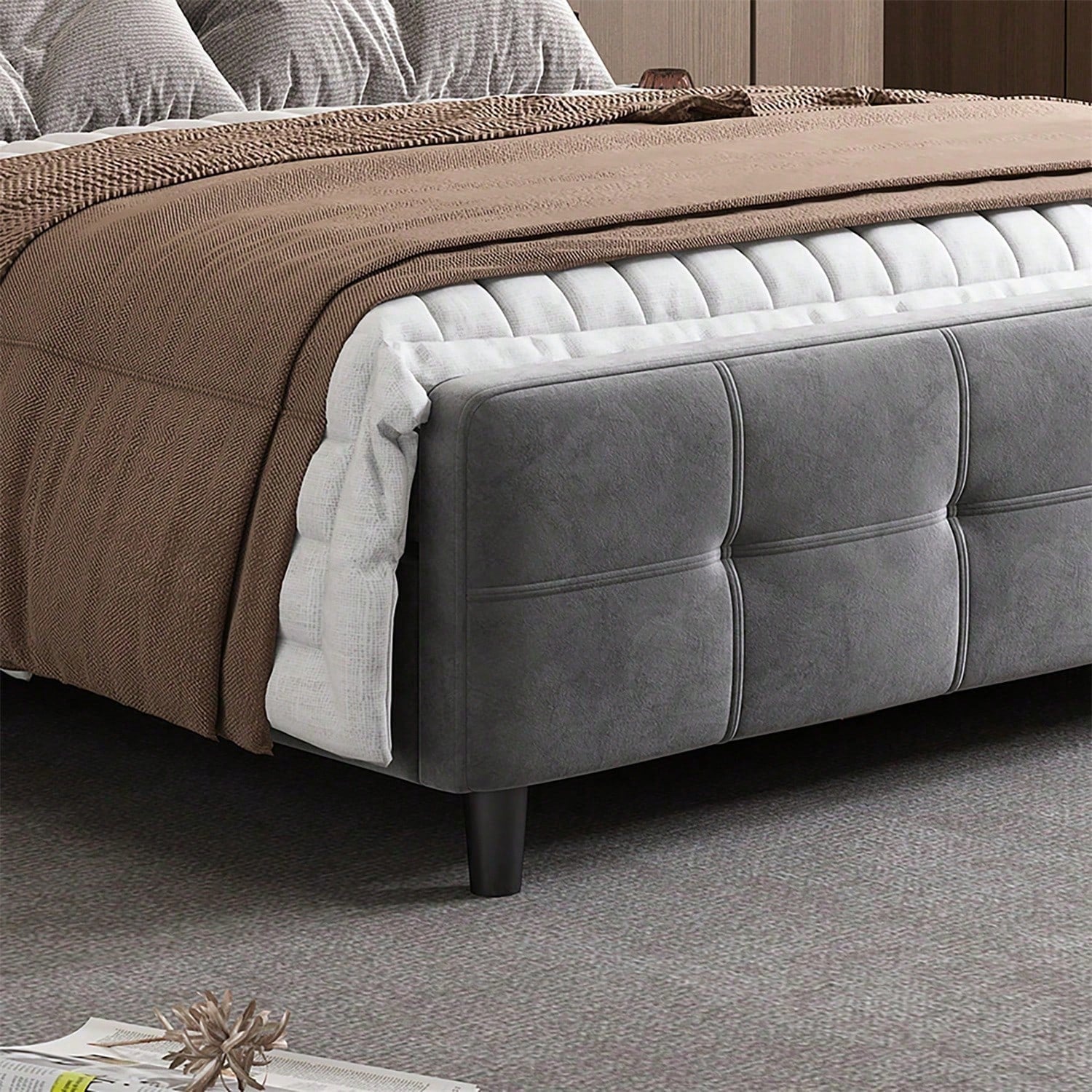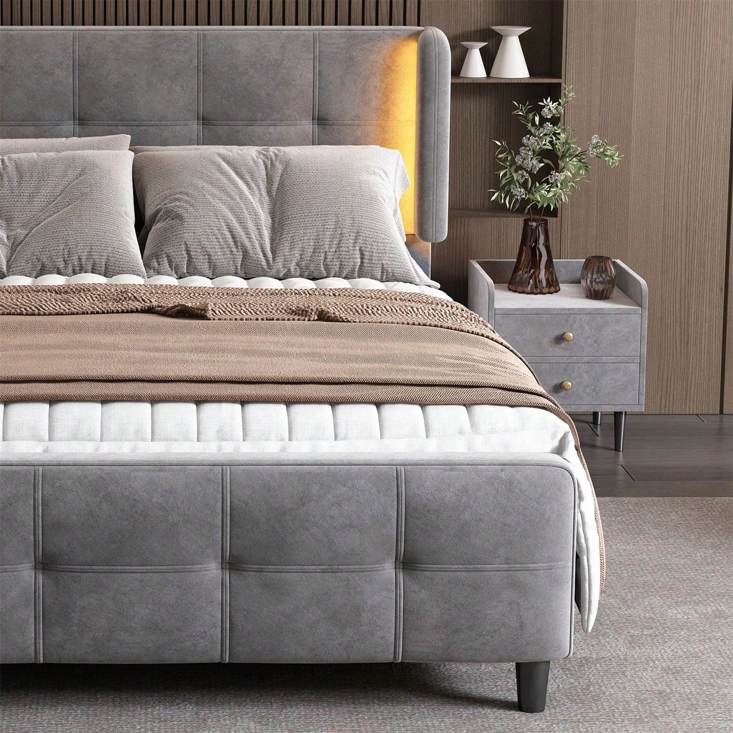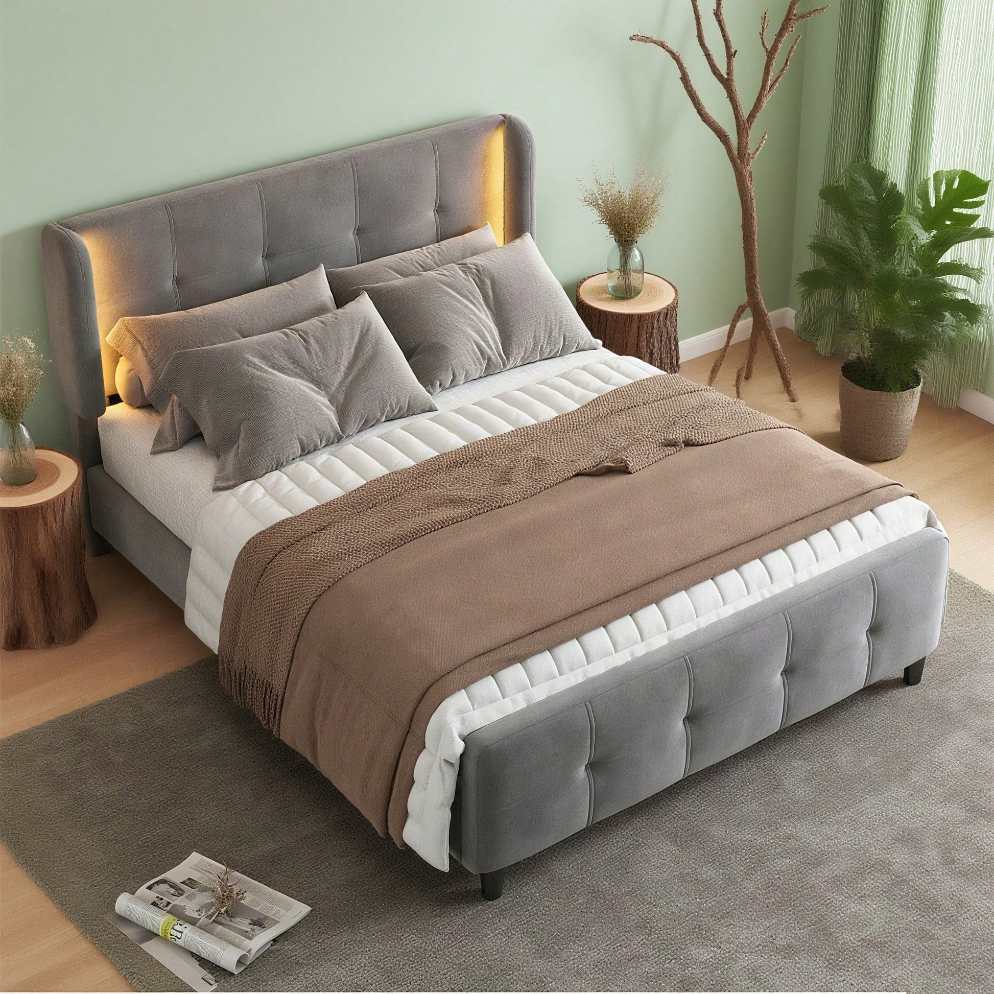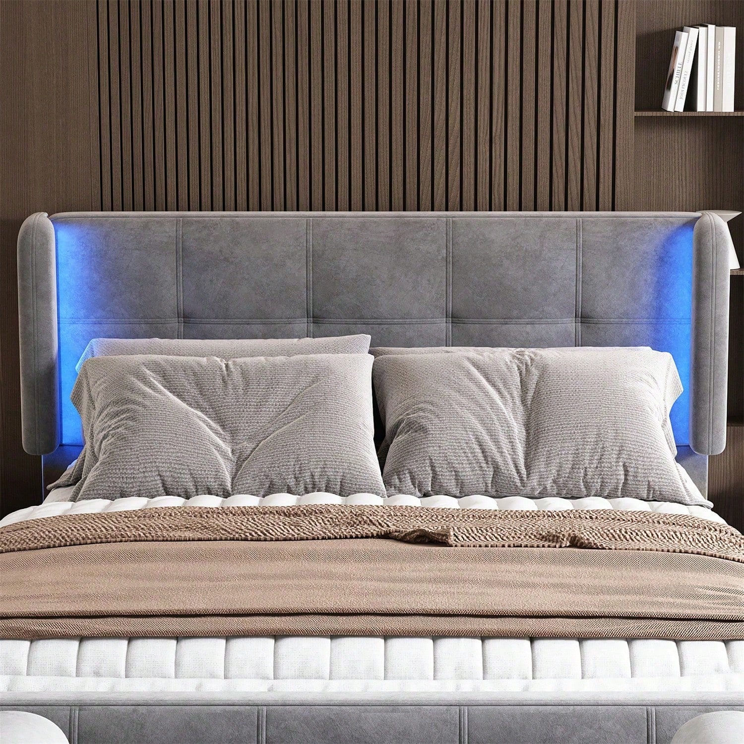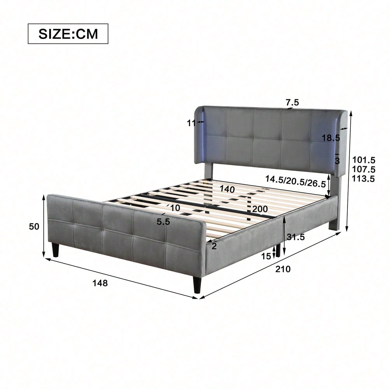 Spécifications Informations produit Code article : 32280809AAE Type de produit : Article combiné Nom du produit : Lit rembourré, lit double avec bandes LED 16 couleurs sur les oreilles latérales, tête et pied de lit matelassés, quille en métal, tête de lit réglable sur trois hauteurs, velours, gris, 140 x 200 cm Origine : Chine Couleur principale : Gris Matériau principal : Velours Dimensions du lit : 140 cm x 200 cm Dimensions du produit Longueur une fois assemblé (cm) : 210,00 Largeur une fois assemblé (cm) : 148,00 Hauteur une fois assemblé (cm) : 113,50 Poids du produit (kg) : 35,00 Dimensions du colis Sous-article 1 : WF322809AAE Quantité : 1 143 x 43 x 11 cm 14,1 kg Sous-article 2 : WF322808AAE Quantité par paquet : 1 147,3 x 58,4 x 10,2 cm 25,3 kg Caractéristiques du produit Éclairage d'ambiance : Le lit est équipé d'une bande LED 16 couleurs pour créer un éclairage d'ambiance. Cette lumière propose quatre modes : clignotant, stroboscopique, fondu et doux, pour différents scénarios. Vous pouvez ainsi choisir différentes couleurs d'éclairage selon vos besoins et créer une ambiance romantique. Design élégant : La tête et le pied de lit matelassés confèrent au lit un style élégant et attrayant qui sublimera n'importe quelle chambre et ajoutera une touche de luxe. Confort optimal : Avec ses 12 sommiers à lattes et ses deux quilles métalliques, le lit offre un soutien solide et un sommeil réparateur. La tête de lit réglable en hauteur sur trois positions vous permet de trouver votre position de sommeil préférée. Matériaux de haute qualité : Fabriqué en velours gris de haute qualité, ce lit rembourré offre non seulement un aspect luxueux, mais aussi un toucher agréable. Conseils d'entretien : Utilisez un chiffon doux en coton ou une brosse pour éliminer délicatement la poussière et la saleté de la surface. Évitez les brosses à poils durs ou les outils de nettoyage rugueux, qui pourraient endommager le velours. Évitez tout déversement accidentel sur le produit. En cas de déversement accidentel, essuyez immédiatement avec un chiffon propre et absorbant.