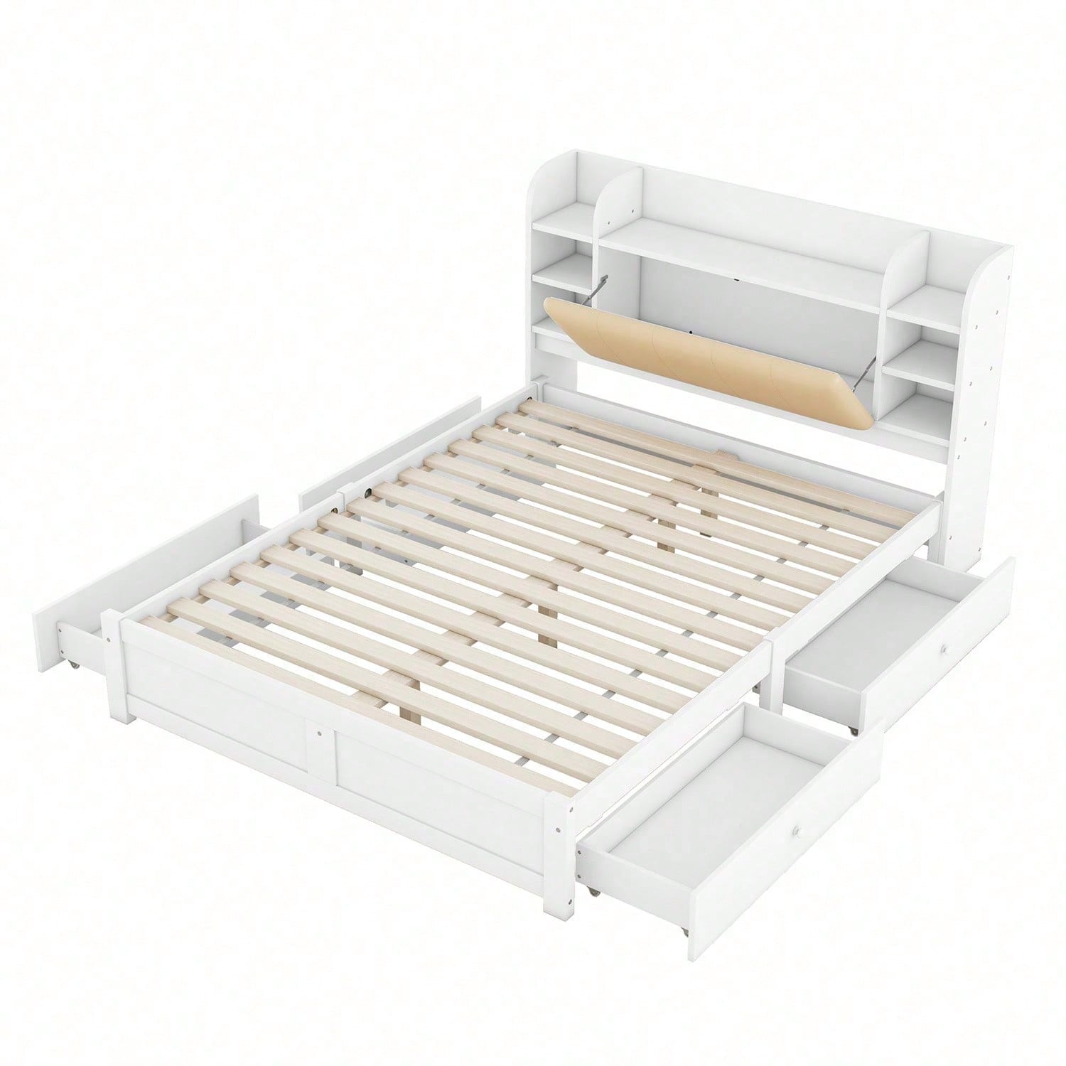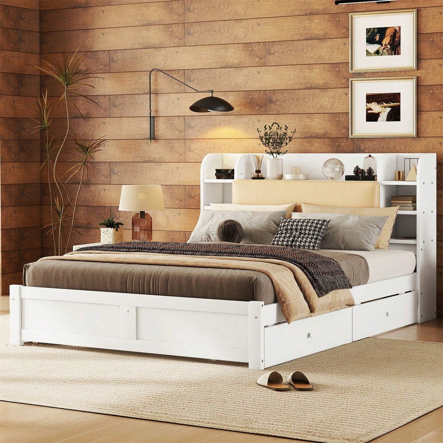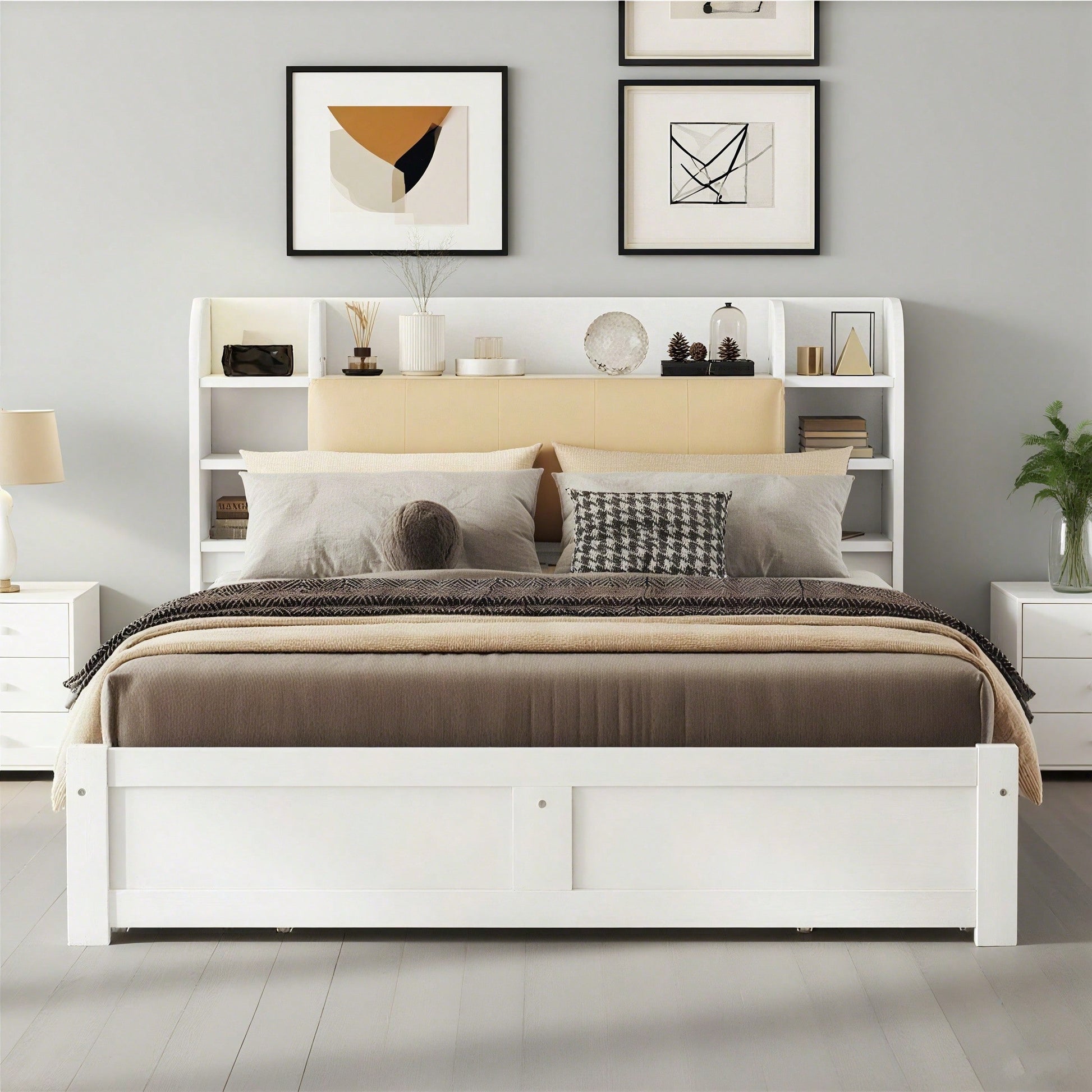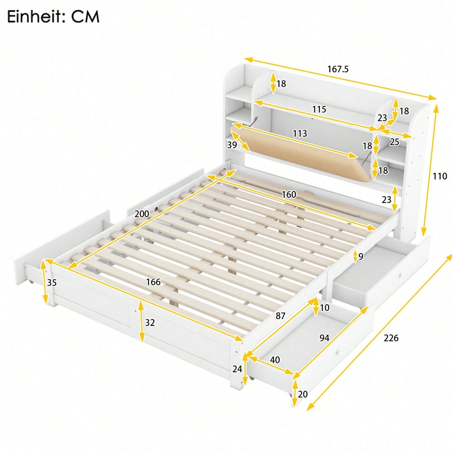 Spécifications Informations produit Code article : WX000815AAK Type de produit : Article combiné Nom du produit : Lit plat 160 x 200 cm, tête de lit partiellement articulée, quatre tiroirs, plusieurs compartiments de rangement, blanc Couleur principale : Blanc Matériau principal : Pin Dimensions du produit Longueur après assemblage (cm) : 226,00 Largeur après assemblage (cm) : 167,50 Hauteur après assemblage (cm) : 110,00 Poids du produit (kg) : 74,60 Dimensions du colis Sous-article 1 : WF318288AAK Quantité par colis : 1 173 x 32,5 x 16,5 cm, 29,1 kg Sous-article 2 : WF318287AAK Quantité par colis : 1 167 x 37 x 15,5 cm, 27,4 kg Sous-article 3 : WF318286AAK Quantité par paquet : 1 121 x 47,5 x 17 cm 27,1 kg Caractéristiques du produit Structure robuste : Fabriqué en pin massif et en MDF, ce lit assure robustesse et stabilité. Il est également , pour un confort optimal. Table de chevet multifonction : Trois compartiments de rangement sont disposés de chaque côté du lit, et la partie centrale de la housse souple s'ouvre et se ferme. Ce rangement intégré est pratique pour ranger livres, vêtements et autres objets, pour une chambre plus ordonnée et organisée. Grand espace de rangement : Quatre tiroirs sous le lit offrent un espace de rangement supplémentaire pour répondre à vos besoins. Large et confortable : Ce lit large et confortable vous offre un sommeil réparateur. Que vous l'utilisiez comme lit simple ou double, il répondra à vos besoins et vous permettra de profiter d'un sommeil réparateur. Le lit sera expédié en trois colis depuis l'Allemagne. Parfois, les colis arrivent à des moments différents, mais pour vous assurer que vos attentes sont satisfaites, soyez patient ou contactez notre service client amical.