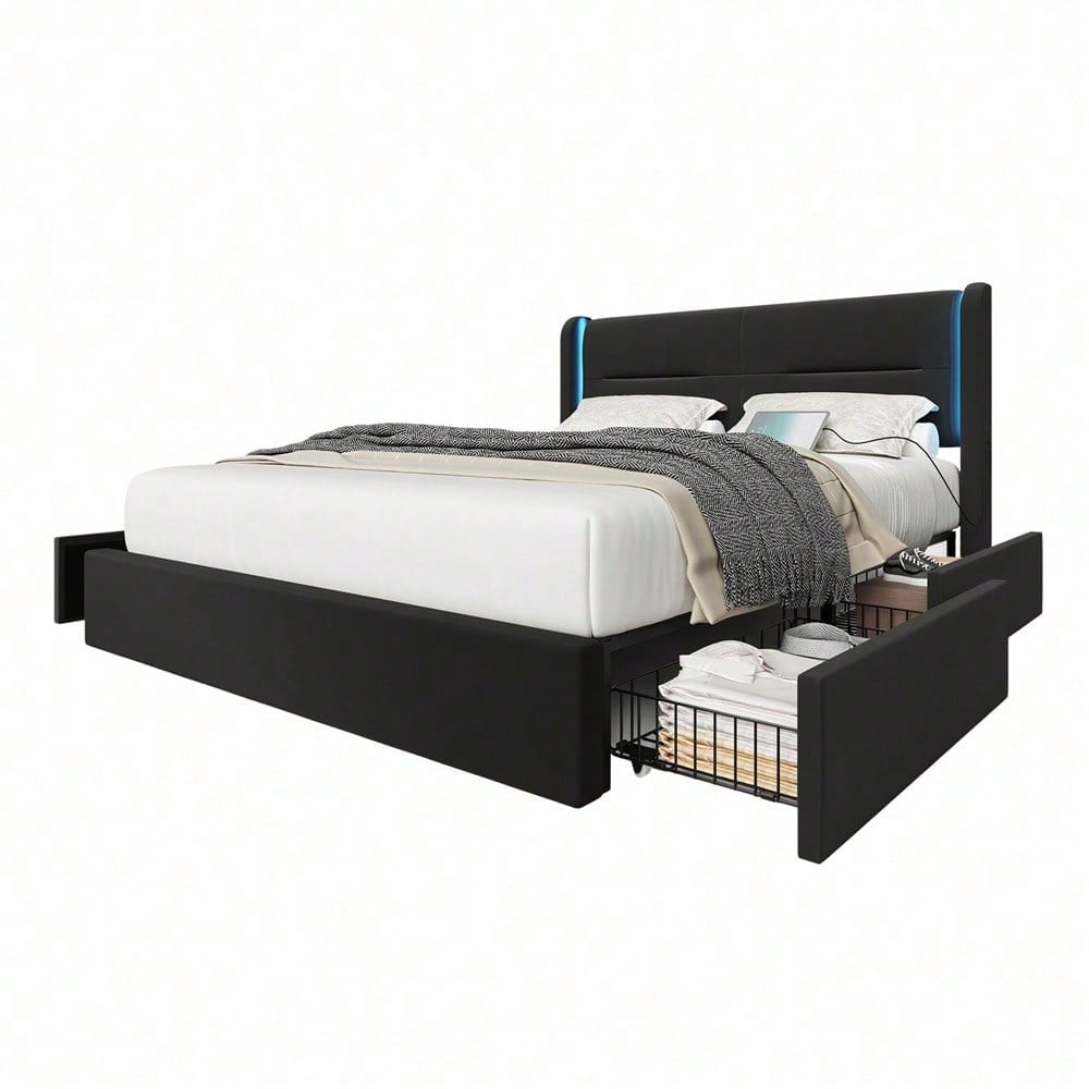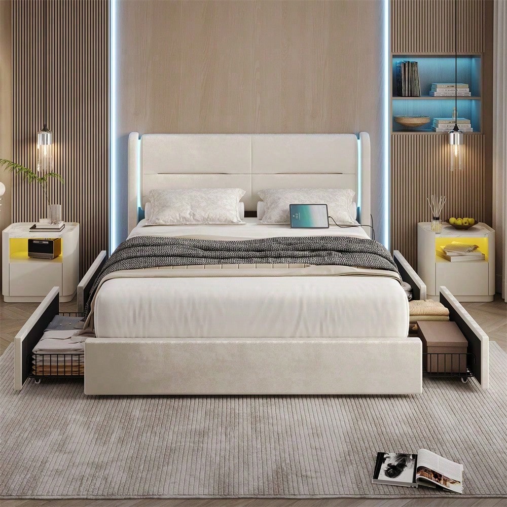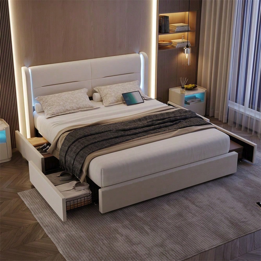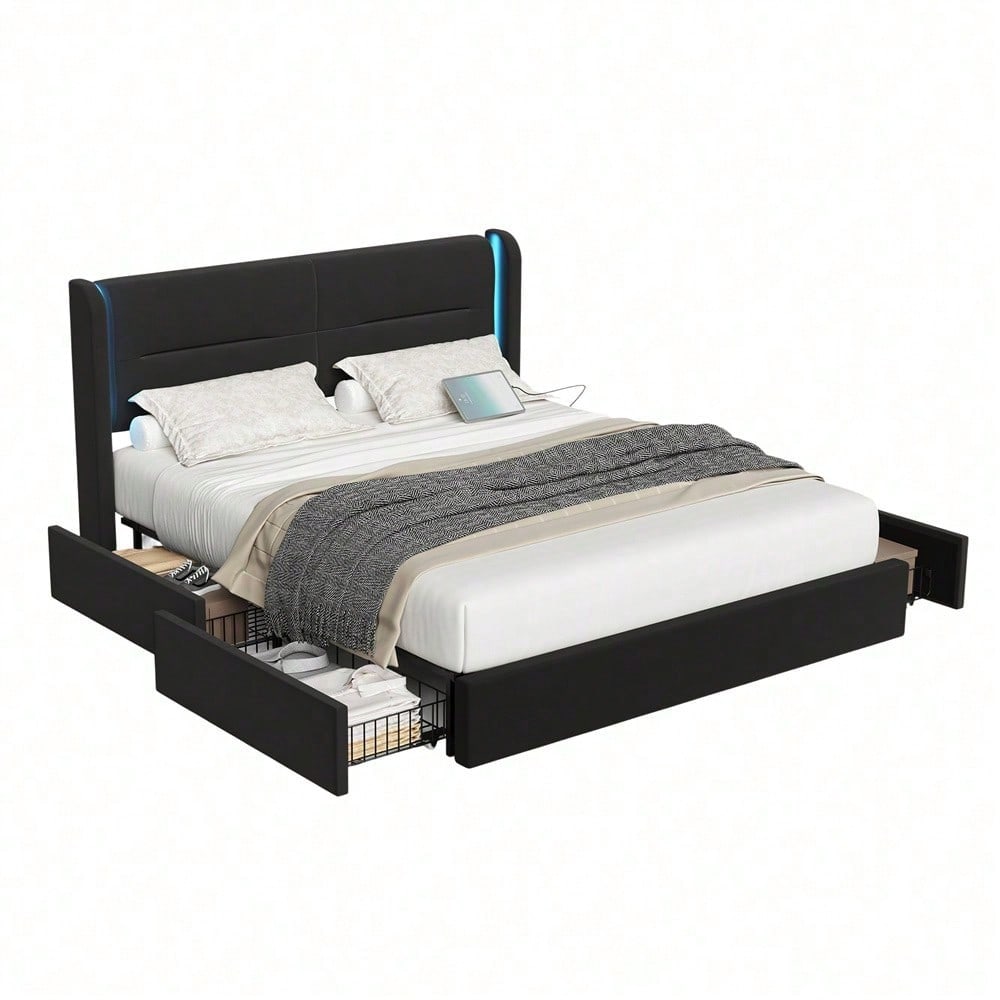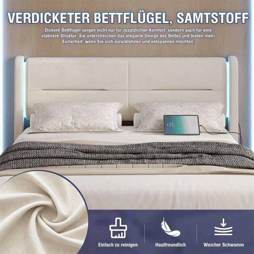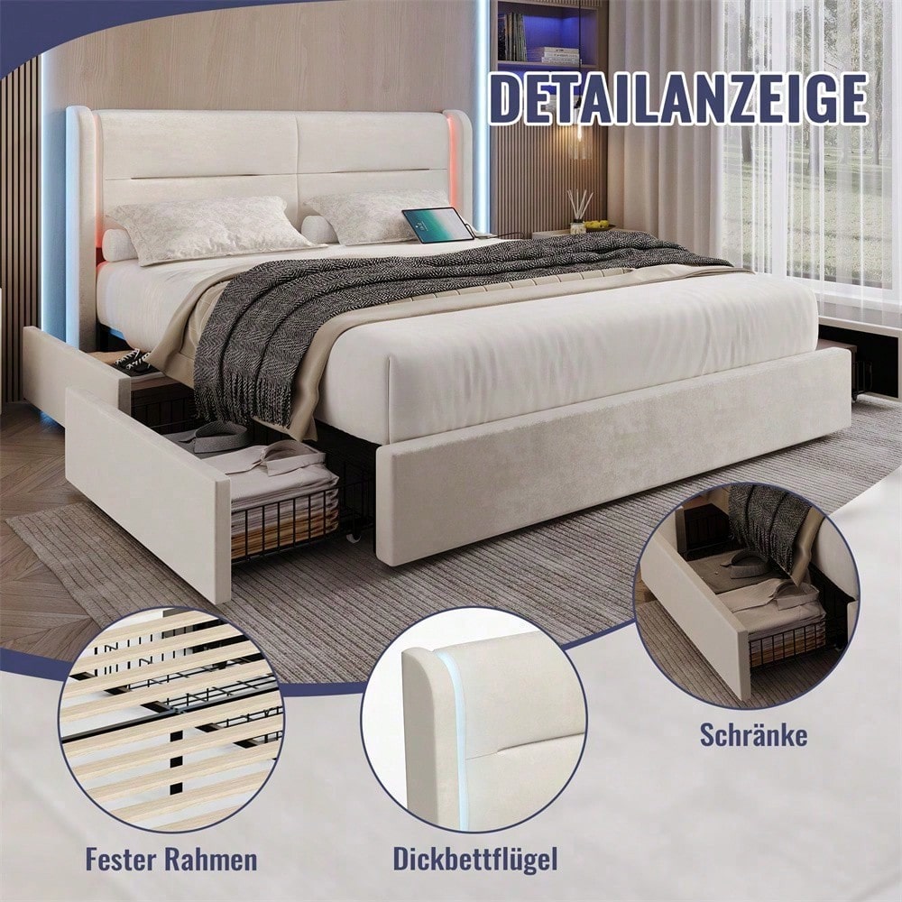 Spécifications Informations produit Code article : W2845S00064 Type de produit : Article combiné Nom du produit : Cadre de lit moderne 140 x 200 cm avec éclairage LED à la tête de lit, 4 tiroirs de rangement pratiques, rembourrage épais, deux ports USB et ailes élégantes pour plus de confort, noir Couleur principale : Noir Matériau principal : Velours Style du produit : Contemporain Utilisation : Chambre Dimensions du lit : 140 cm x 200 cm Type de lit : Cadre de lit Sommier requis : Sommier requis Matériau du cadre de lit : Métal Dimensions du produit Longueur après assemblage (cm) : Non applicable Largeur après assemblage (cm) : Non applicable Hauteur après assemblage (cm) : Non applicable Poids du produit (kg) : Non applicable Dimensions du colis Sous-article 1 : W2845P263591 Quantité par colis : 1 141,5 x 54 x 12,5 cm 25,3 kg Sous-article 2 : W2845P263590 Quantité par colis : 1 148,5 x 30,5 x 28,5 cm 27,1 kg