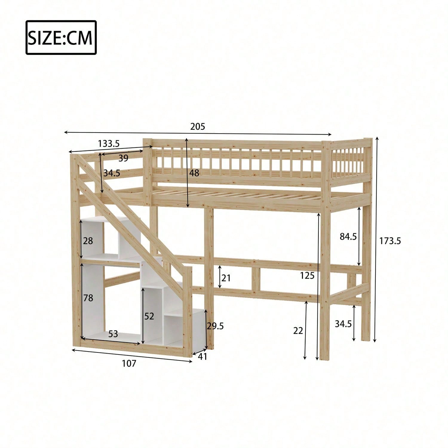 Spécifications Informations produit Code article : LDB00164AAN Type de produit : Article combiné Nom du produit : Lit en bois massif 90 x 200, escalier avec rangement, lit enfant, lit adolescent, lit simple, cadre en bois massif, version haute, couleur bois Origine : Chine Couleur principale : Naturel Matériaux principaux : Bois Dimensions du lit : 90 cm x 200 cm Dimensions du produit Longueur assemblée (cm) : 205,00 Largeur assemblée (cm) : 133,50 Hauteur assemblée (cm) : 173,50 Poids du produit (kg) : 53,50 Dimensions du colis Sous-article 1 : N623P202813N Quantité par colis : 1 124,5 x 42,5 x 17 cm 28,5 kg Sous-article 2 : N623P202812N Quantité par colis : 1 199 * 32 * 18 cm 30 kg Caractéristiques du produit Construction durable : Fabriqué en bois massif de haute qualité pour une longue durée de vie. L'enceinte haute offre un environnement de sommeil et confortable aux enfants et aux adolescents. Escalier de rangement : Cet escalier innovant avec armoires intégrées est idéal pour ranger jouets, livres et vêtements. Chaque marche est conçue comme une armoire de rangement, offrant un espace généreux pour les jouets, livres, vêtements et autres objets essentiels, les gardant organisés et facilement accessibles. Conception compacte : Le rangement intégré optimise l'espace, ce qui le rend idéal pour les petites pièces ou les espaces partagés. Un canapé/bureau peut être placé sous le lit pour maximiser les besoins des enfants, qu'il s'agisse d'un havre de paix pour les enfants ou d'un refuge élégant pour les adolescents. Facile à organiser : Un espace de rangement spacieux permet de garder la chambre plus organisée et facile d'accès. Adapté aux enfants et aux adolescents, c'est un choix élégant et pratique pour toute chambre. Finition élégante : La surface impeccable couleur bois confère au lit une touche d'élégance et s'intègre à tous les styles de chambre.
