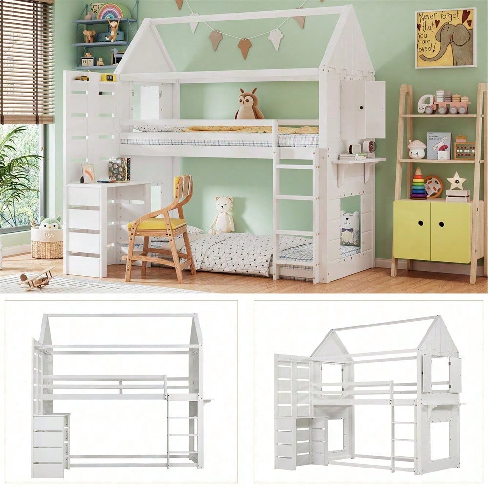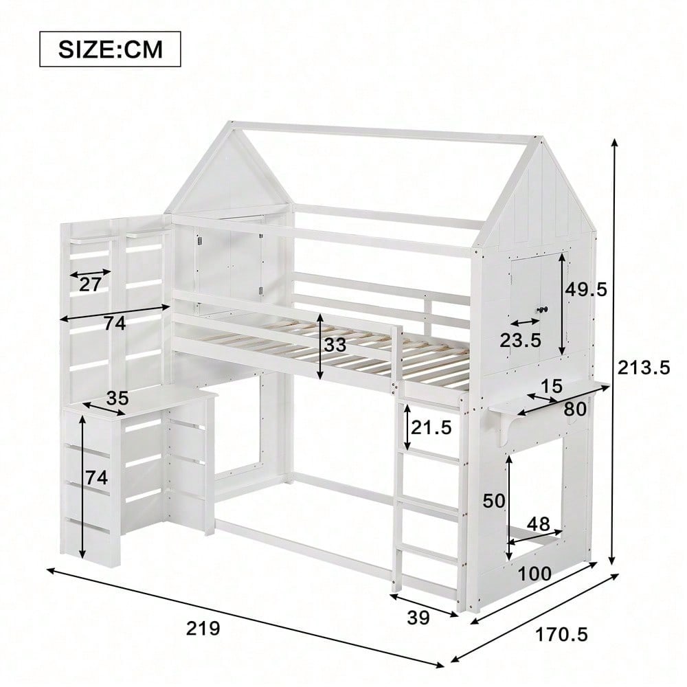 Spécifications Informations produit Code article : N622T688567W Type de produit : Article combiné Nom du produit : Lit superposé, lit cabane, lit enfant avec barrières de et de protection, avec table, étagère ouverte, deux fenêtres, grand espace de rangement, pin + MDF, blanc, 90 x 200 cm Origine : Chine Couleur principale : Blanc Matériau principal : Bois massif + MDF Dimensions du lit : 90 cm x 200 cm Dimensions du produit Longueur une fois assemblé (cm) : 219,00 Largeur une fois assemblé (cm) : 170,50 Hauteur une fois assemblé (cm) : 213,50 Poids du produit (kg) : 73,50 Dimensions du colis Sous-article 1 : N622P236887W Quantité par colis : 1 173,36 x 46,36 x 14,61 cm 29,3 kg Sous-article 2 : N622P236886W Quantité par paquet : 1 64,14 x 57,79 x 17,15 cm 18,6 kg Sous-article 3 : N622P236885W Quantité par paquet : 1 198,12 x 27,94 x 18,42 cm 26,9 kg Caractéristiques du produit Conception escalier pratique : Ce lit escalier est très peu encombrant. Pour vous permettre d'organiser l'espace sous le lit, le cadre de lit en dessous n'est pas équipé de sommier à lattes ; vous pouvez en acheter deux vous-même. Vous pouvez également utiliser l'espace sous le lit comme rangement ou espace de jeu, offrant ainsi à votre enfant une grande liberté de et confort pendant le sommeil. Caractéristiques supplémentaires : Une table intégrée au lit offre une fonctionnalité supplémentaire. Il intègre trois espaces fonctionnels : un espace nuit, un espace de rangement et un espace bureau. Matériaux de haute qualité : Fabriqué en MDF, pin et contreplaqué, ce lit superposé est durable et stable, offrant une base solide pour un sommeil réparateur. Lit superposé certifié EN747 : Ce lit superposé certifié EN747 a été rigoureusement testé et évalué pour sa conformité aux normes de européennes. Ce lit a subi des tests rigoureux pour garantir la solidité structurelle du lit et la qualité des matériaux utilisés. Nous vous recommandons de suivre les instructions d'utilisation pour assurer la de vos enfants lors de l'utilisation du lit superposé. Facile à installer : Des instructions détaillées et des pièces complètes vous aideront à terminer l'assemblage. Le plaisir de l'installation vous permettra d'apprécier encore plus ce lit.