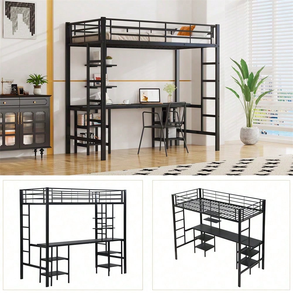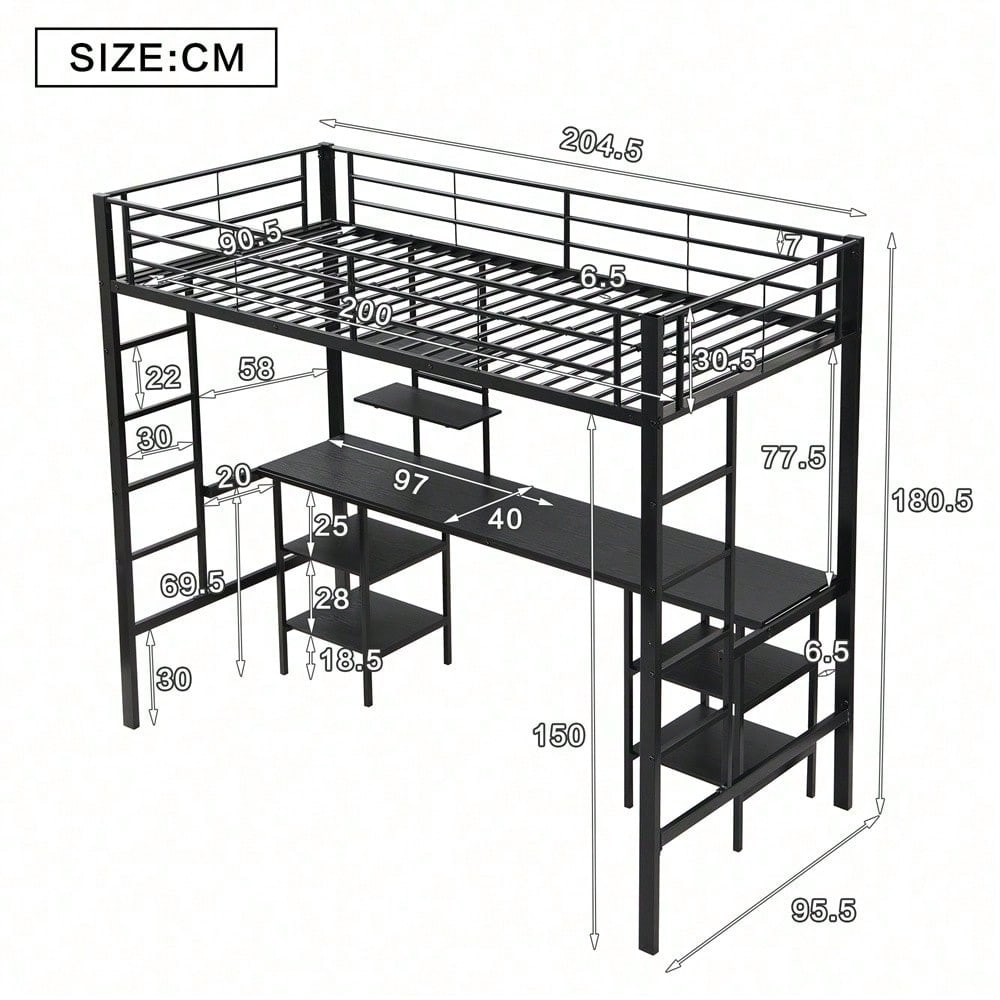 Informations produit Code article : 31943637AAA Type de produit : Article combiné Nom du produit : Lit superposé avec cadre en fer, table et étagères, adapté aux enfants et adolescents, lit enfant avec échelle latérale et barrière de , fer + MDF, noir, 90 x 200 cm Origine : Chine Couleur principale : Noir Matériau principal : MDF + métal Dimensions du lit : 90 x 200 cm Dimensions du produit Longueur une fois assemblé (cm) : 204,50 Largeur une fois assemblé (cm) : 95,50 Hauteur une fois assemblé (cm) : 180,50 Poids du produit (kg) : 42,00 Dimensions du colis Sous-article 1 : WF319437AAA Quantité par colis : 1 126,5 x 50 x 19 cm 29,3 kg Sous-article 2 : WF319436AAA Quantité par colis : 1 198 x 37,5 x 10,5 cm 25,9 kg Caractéristiques du produit Cadre en fer robuste : Le lit est construit à partir d'un cadre en fer robuste, garantissant durabilité et stabilité, essentielles à la et au confort des enfants. Design polyvalent : Ce lit superposé présente un design unique. La couchette inférieure, équipée d'une table et de plusieurs étagères, sert d'espace de travail et de divertissement. Cette conception multifonctionnelle optimise l'espace disponible dans la chambre de l'enfant tout en offrant une solution pratique pour diverses activités. Étagères intégrées : Des étagères sont situées au-dessus et de chaque côté du plateau inférieur, offrant un espace de rangement supplémentaire pour les livres, les jouets et autres objets. Ces étagères permettent d'organiser la pièce et facilitent l'accès des enfants à leurs effets personnels. Barrière : Le lit est équipé d'une barrière sur quatre côtés pour protéger les enfants pendant leur sommeil ou leurs jeux. Cette barrière permet aux enfants de rester au lit et d'éviter les chutes accidentelles. Lit superposé certifié EN747 : Ce lit superposé certifié EN747 a été rigoureusement testé et évalué pour sa conformité aux normes européennes. Ce lit a subi des tests rigoureux pour garantir sa solidité structurelle et la qualité des matériaux utilisés. Nous vous recommandons de suivre les instructions d'utilisation pour garantir la de vos enfants. Installation facile : Des instructions détaillées et des pièces complètes vous aideront à terminer l'assemblage. L'installation vous permettra d'apprécier encore plus votre lit.