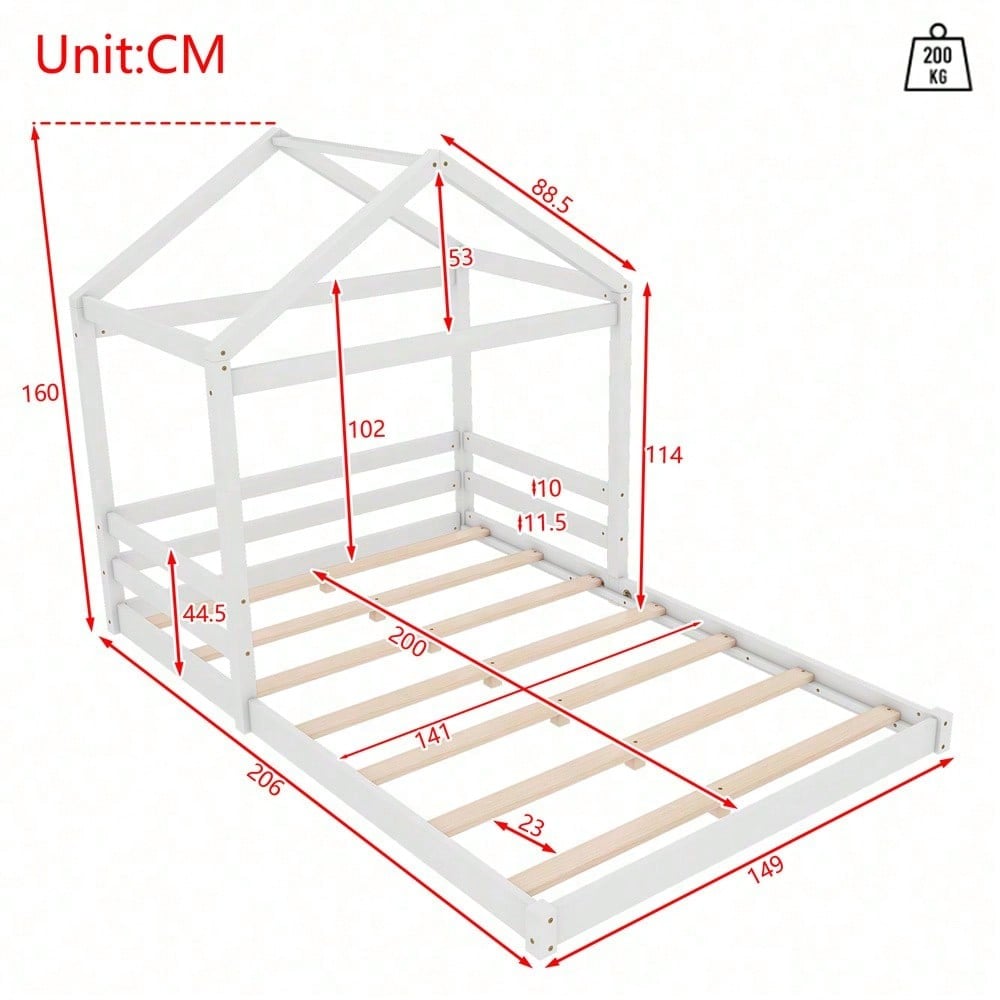 Spécifications Informations produit Code article : N636P192411K Type de produit : Produit individuel Nom du produit : Lit cabane, 140 x 200 cm, lit enfant en forme de cabane avec sommier à lattes (sans matelas), pin, style minimaliste, blanc Couleur principale : Blanc Matériau principal : Pin Dimensions du lit : 140 cm x 200 cm Dimensions du produit Longueur (monté) : 206,00 Largeur (monté) : 149,00 Hauteur (monté) : 160,00 Poids du produit (kg) : 22,00 Dimensions du colis Longueur (cm) : 147,83 Largeur (cm) : 32,77 Hauteur (cm) : 23,88 Poids (kg) : 24,70 Caractéristiques du produit Matériaux de haute qualité : Ce lit est fabriqué en pin et en MDF, garantissant une structure robuste et une grande stabilité. Un confort douillet et un confort optimal. Style unique : Ce lit au design unique, avec sa cabine, apportera une touche de fantaisie et d'imagination à la chambre de votre enfant. Apparence simple : Son design simple et spacieux, ses lignes épurées, s'intègrent parfaitement aux styles d'intérieur modernes. Qu'il soit utilisé comme coin salon ou comme lit d'appoint dans la chambre, il deviendra un espace lumineux. Montage facile : Des instructions détaillées et des pièces complètes facilitent l'assemblage. Le plaisir de l'installation vous permettra d'apprécier encore plus le lit. Les lits sont expédiés depuis l'Allemagne ; il peut arriver que le colis arrive à une date différente. Pour vous assurer que vos attentes soient satisfaites, veuillez patienter ou contacter notre service client.