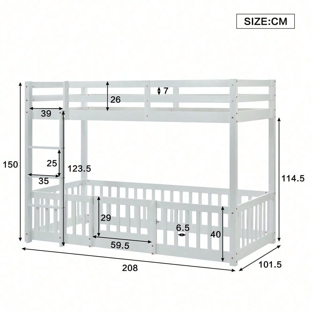Spécifications Informations produit Code article : 29688788WAA Type de produit : Article combiné Nom du produit : Lit superposé avec escalier à angle droit, lit avec barrières et portes, lit enfant avec barrières de , bois massif, blanc (200 x 90 cm) Couleur principale : Blanc Matériau principal : Bois massif Dimensions du lit : 90 x 200 cm Dimensions du produit Longueur une fois assemblé (cm) : 208,00 Largeur une fois assemblé (cm) : 101,50 Hauteur une fois assemblé (cm) : 150,00 Poids du produit (kg) : 36,00 Dimensions du colis Sous-article 1 : WF296888WAA Quantité par colis : 1 99 x 35,5 x 17 cm 21 kg Sous-article 2 : WF296887WAA Quantité par colis : 1 199 x 29 x 17 cm 16 cm 29,11 kg Caractéristiques du produit Conception pratique du lit escalier. Ce lit escalier est très peu encombrant et, pour vous permettre d'organiser l'espace sous le lit en toute liberté, le cadre de lit est dépourvu de sommier à lattes. Vous pouvez utiliser l'espace sous le lit comme rangement ou pour une table et des chaises pour enfants, offrant ainsi à votre enfant une grande liberté de mouvement. Construction en bois massif. Le lit est en pin massif et ses quatre barrières serrées sont sûres et stables, gage de qualité. Design unique. Le lit inférieur est entouré de barrières sur tous les côtés et possède une porte ouvrante au milieu. Cela permet de créer un espace de jeu mystérieux et amusant pour votre enfant sous le lit. Un design et amusant. des enfants et préviennent les chutes. L'échelle à trois marches à angle droit est sûre et sécurisée. Ce lit est un choix rassurant pour les parents. Le pin certifié FSC est solide, et adapté aux enfants, favorisant ainsi le développement durable. Facile à installer. Des instructions détaillées et des pièces complètes vous aideront à l'assembler. Le plaisir de l'installation vous permettra d'apprécier encore plus votre lit.